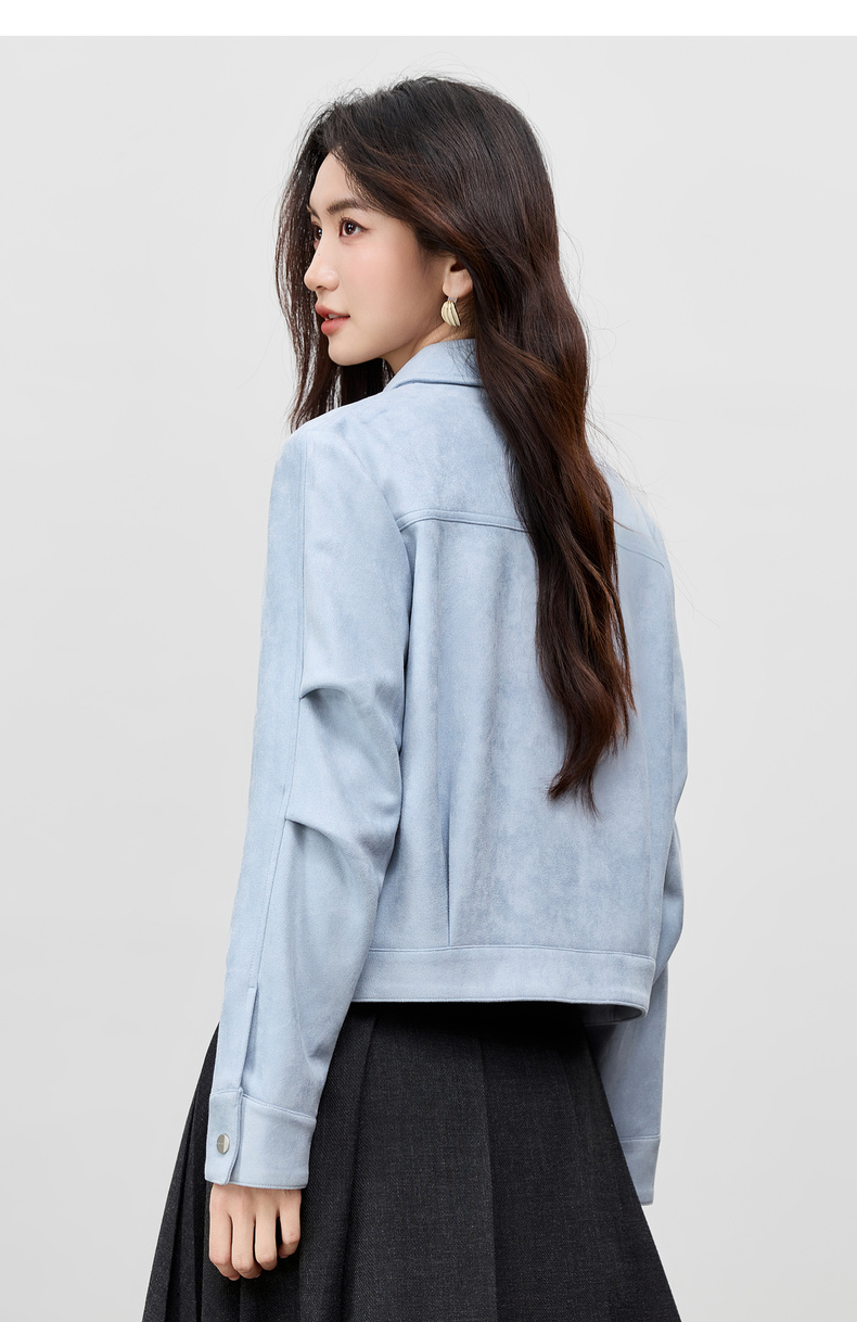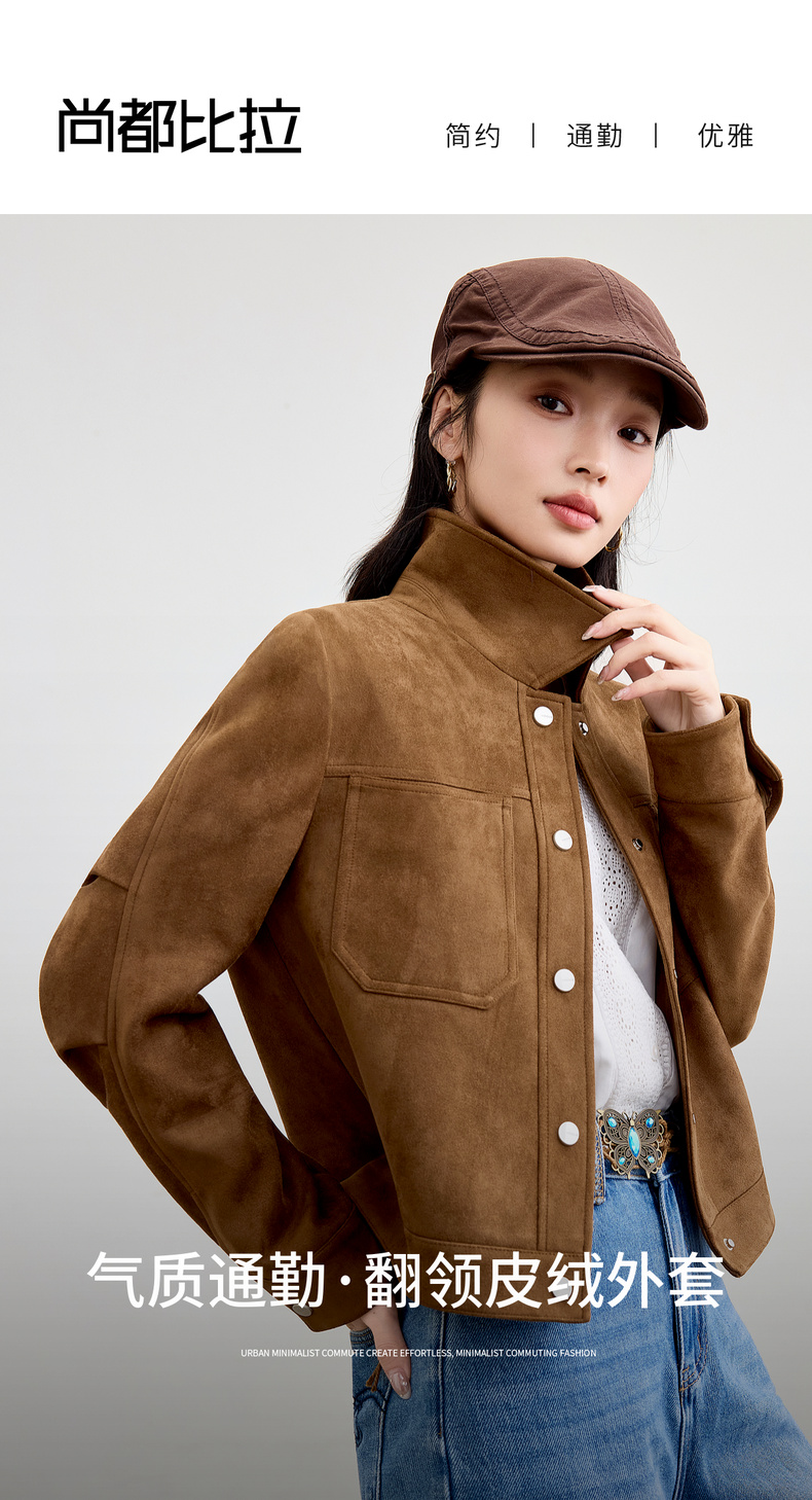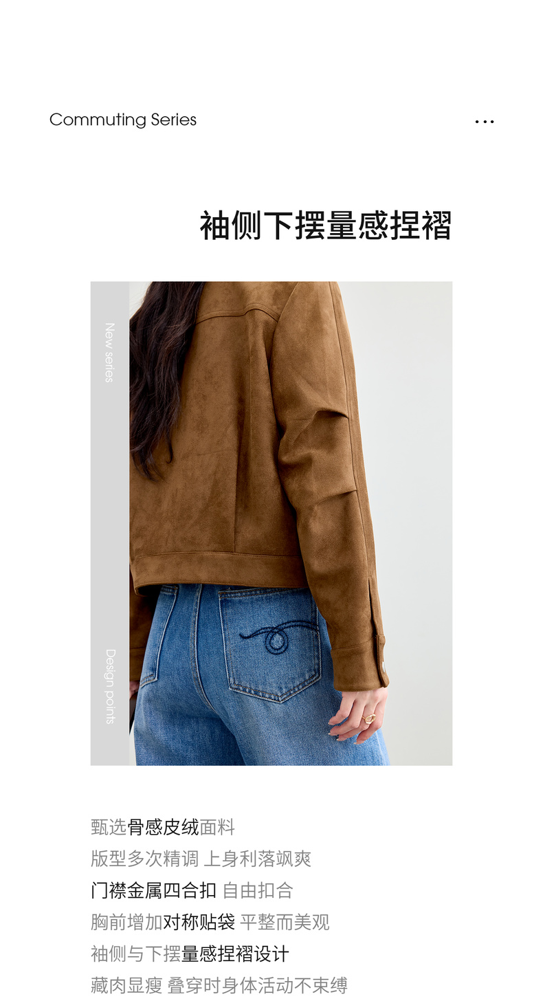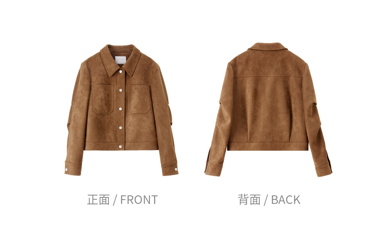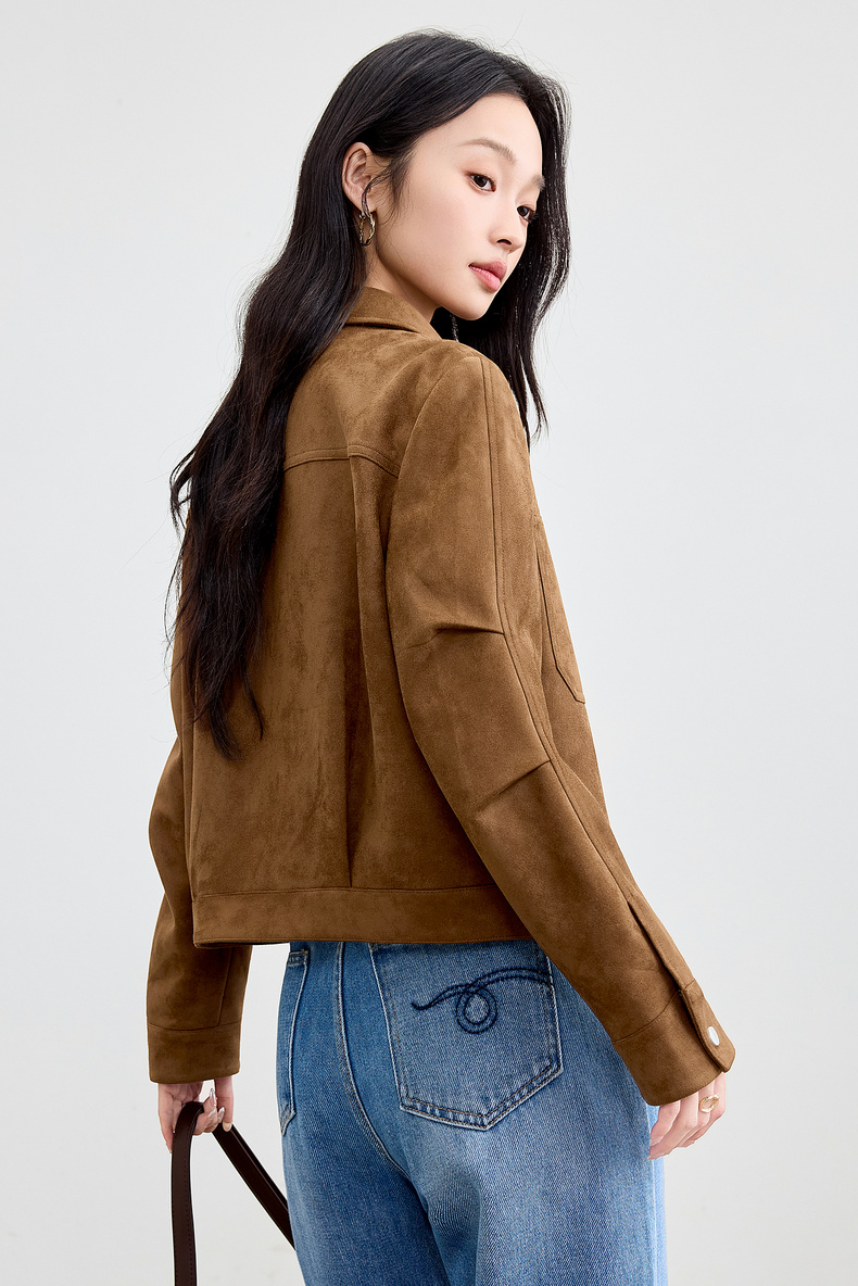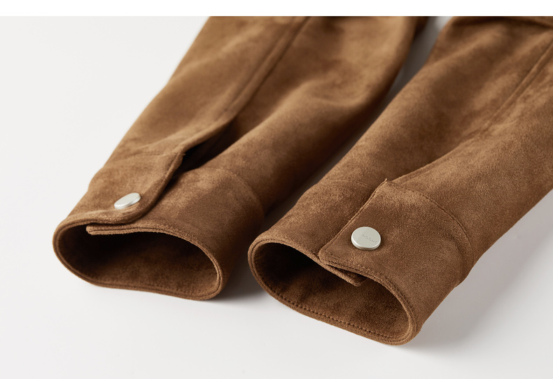 【内购】【量感捏褶】气质通勤翻领金属四合扣宽松显瘦长袖皮绒外套-153WB2594