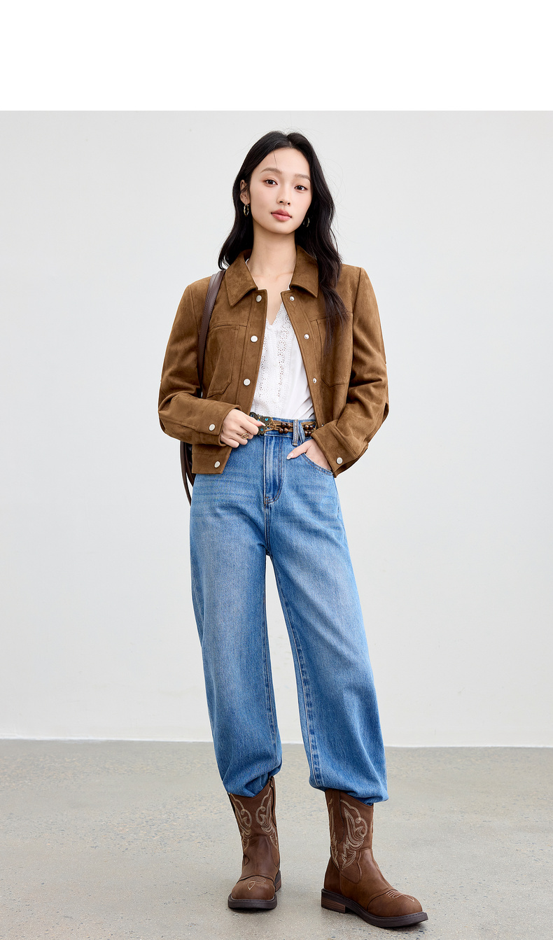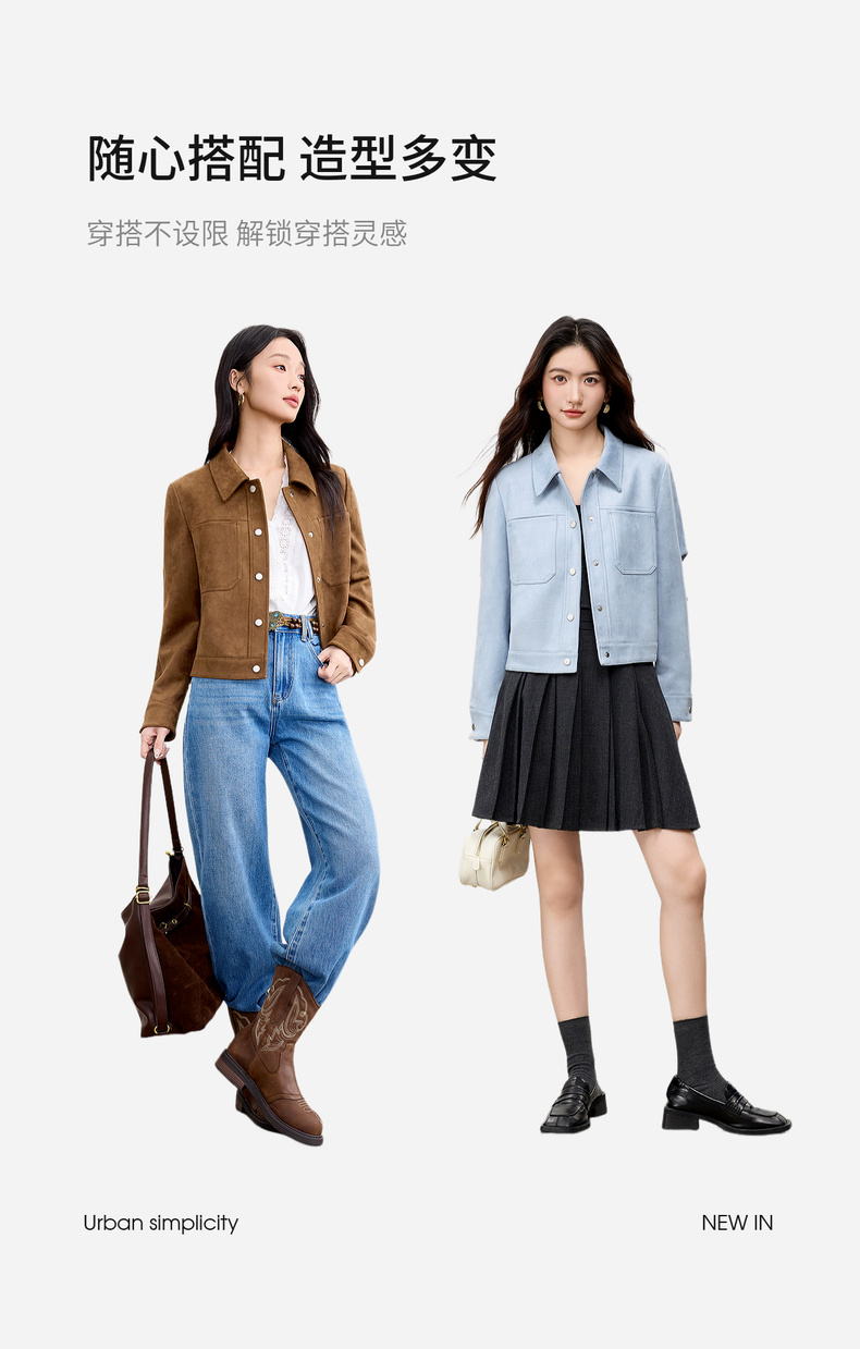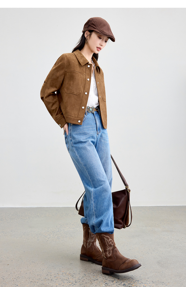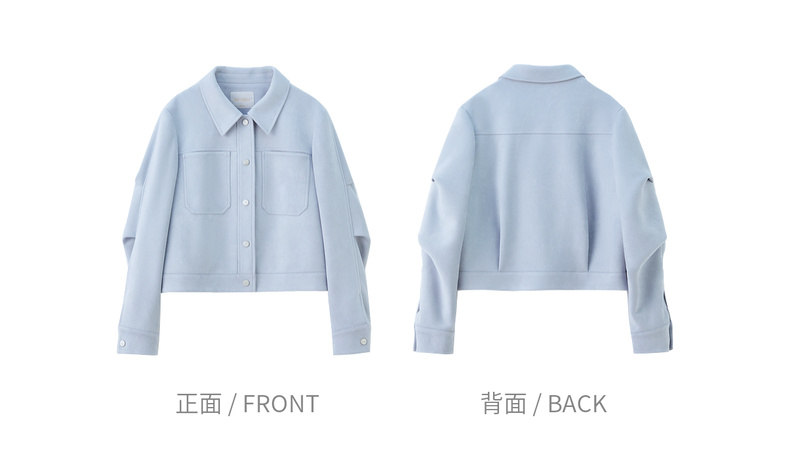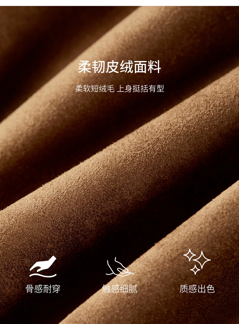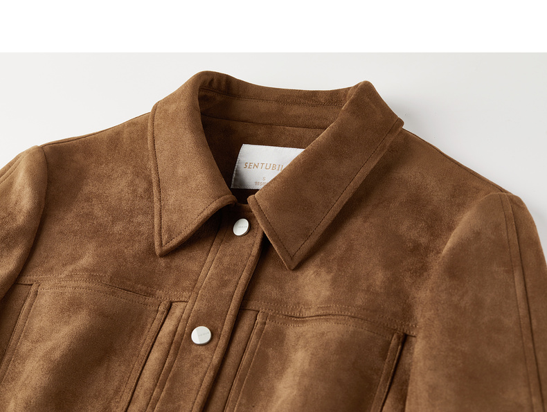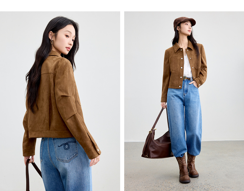 【内购】【量感捏褶】气质通勤翻领金属四合扣宽松显瘦长袖皮绒外套-153WB2594