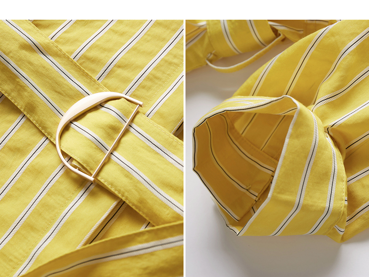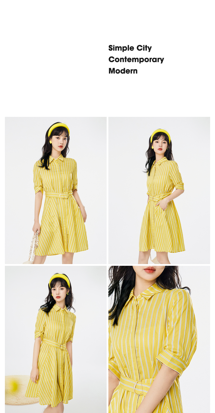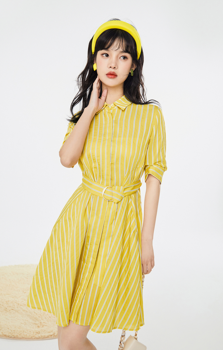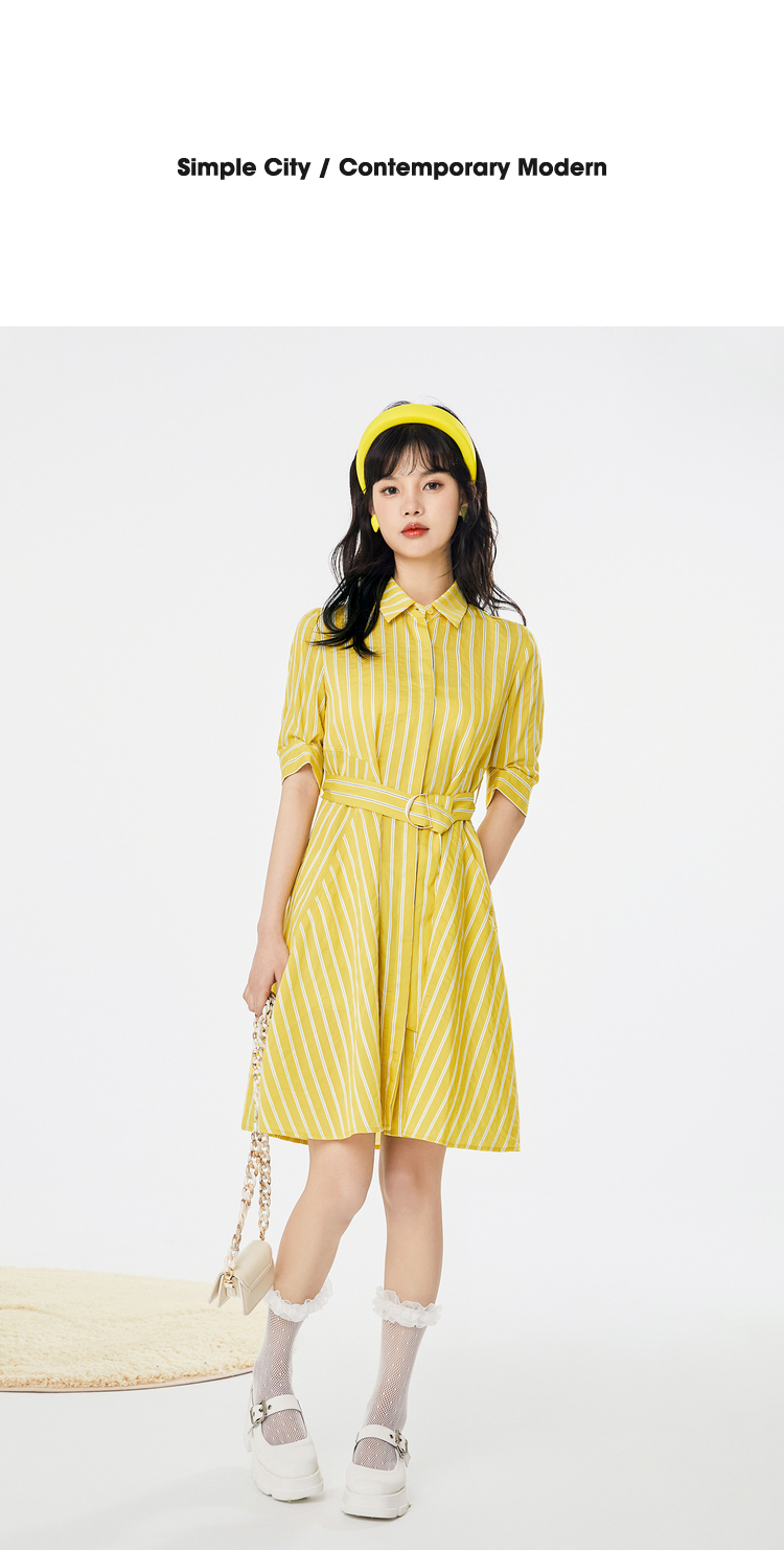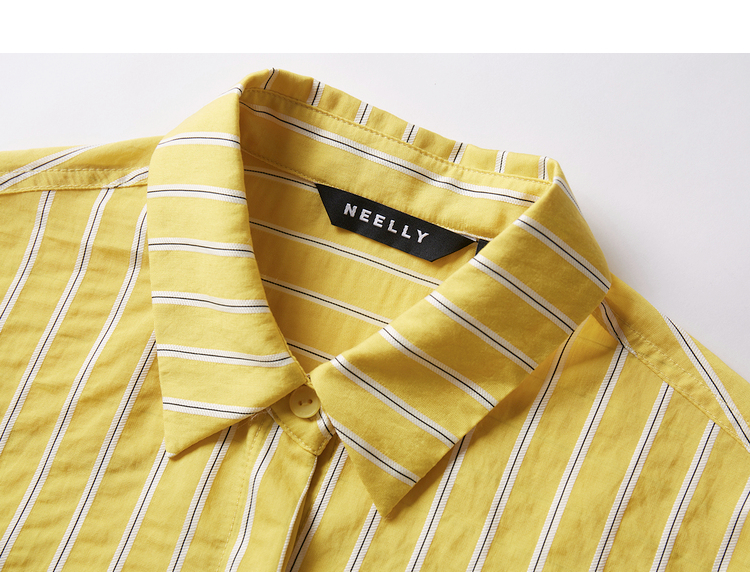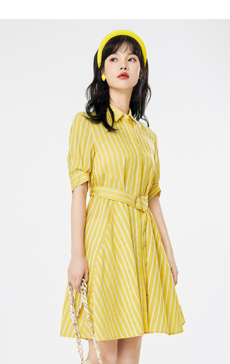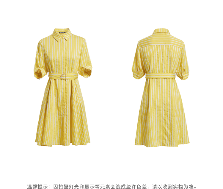 NEELLY纳俪商场同款条纹衬衫式连衣裙短袖腰间系带A字裙女士NE2004DY321