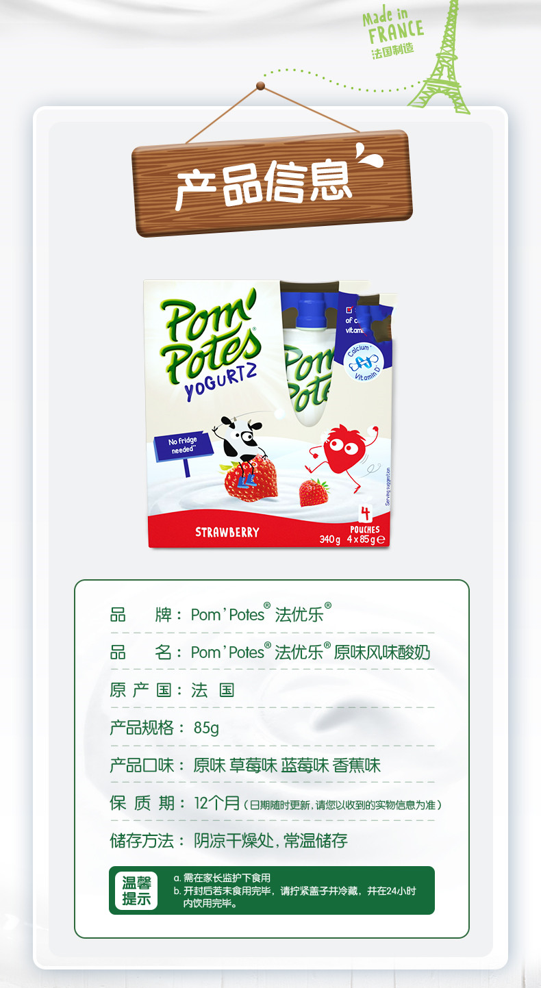 1岁+ 法国Pom Potes法优乐 儿童酸奶 85g*4袋/包 1岁+(保质期1年)