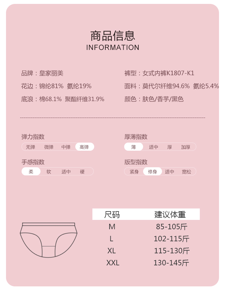 皇家丽美内裤女无痕内裤低腰底裤头「内裤品类特殊不支持退换哦~」K1807-K1