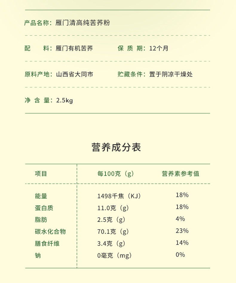 雁门清高 纯有机苦荞粉2500g黑苦荞粉饺子粉苦荞粉轻糖轻脂粉