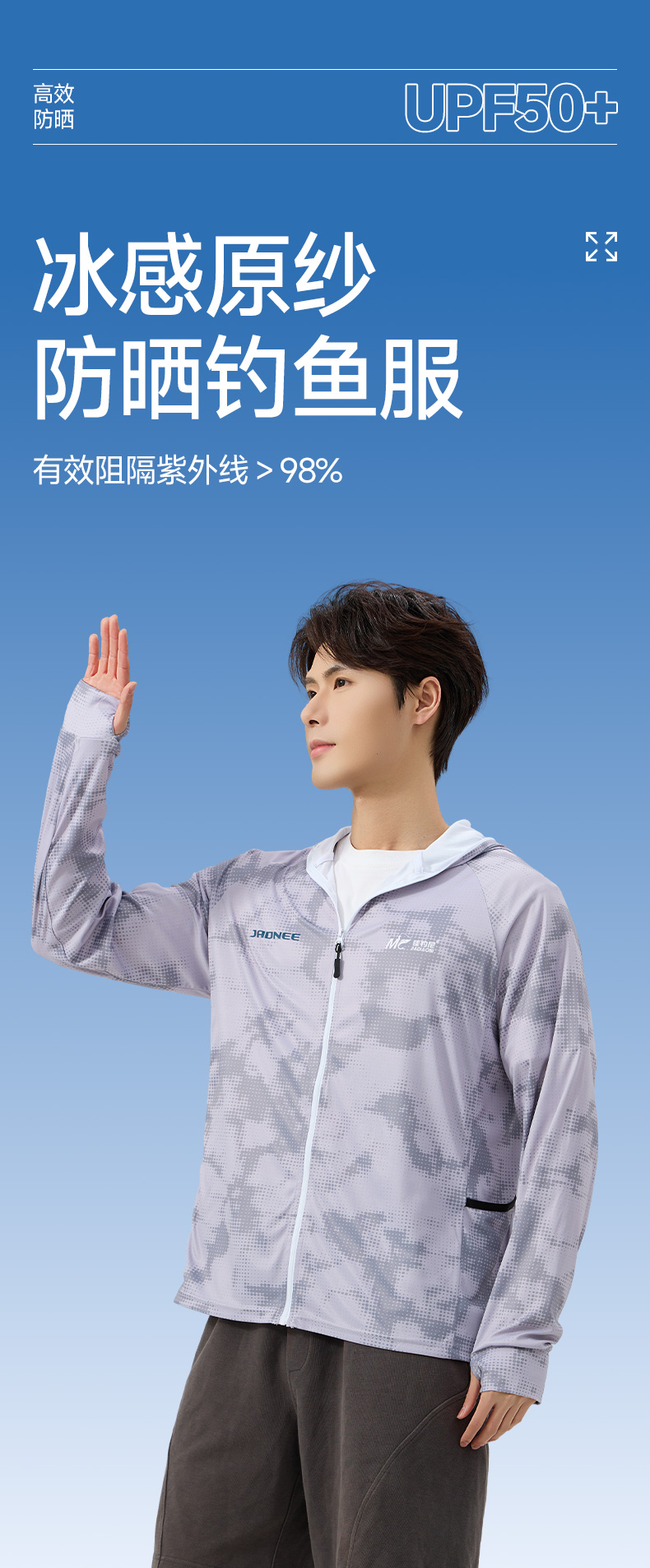 【2026年新款】佳钓尼防晒钓鱼服远山灰色