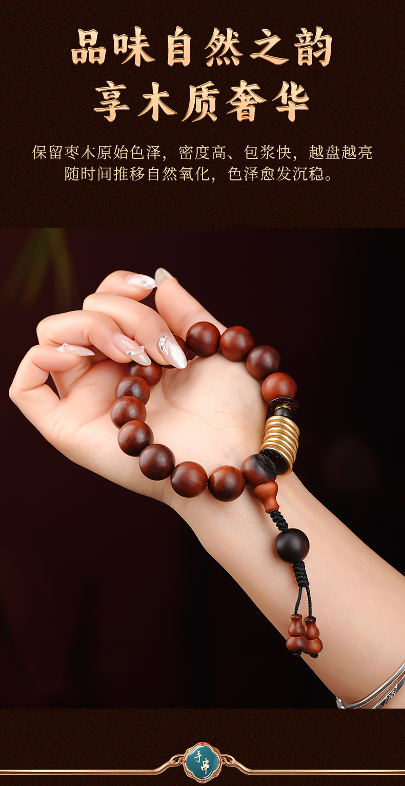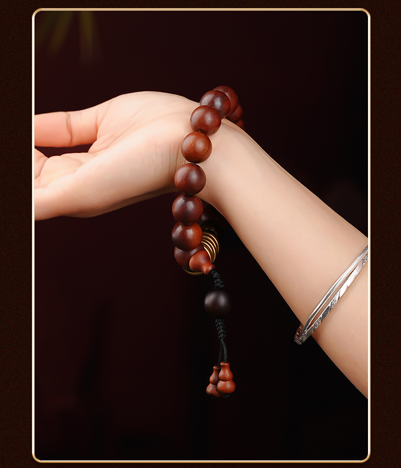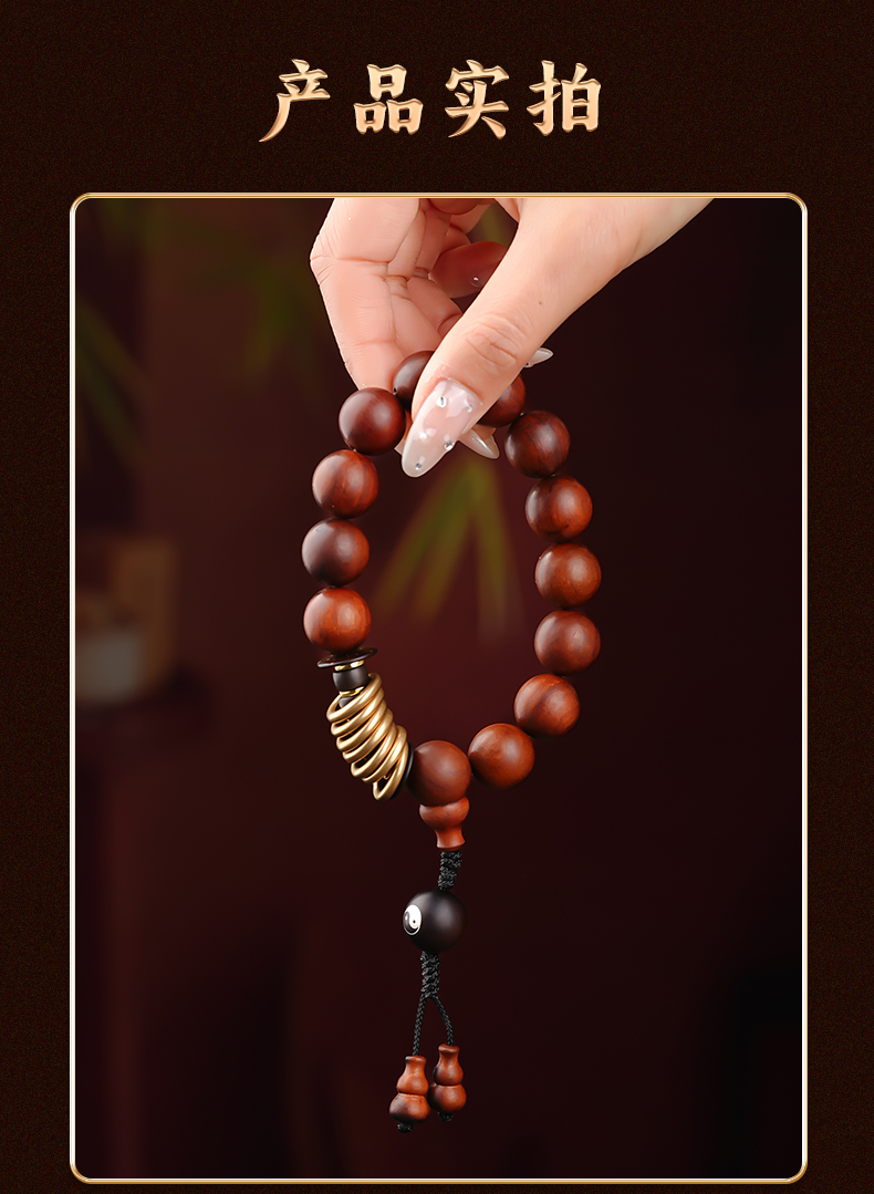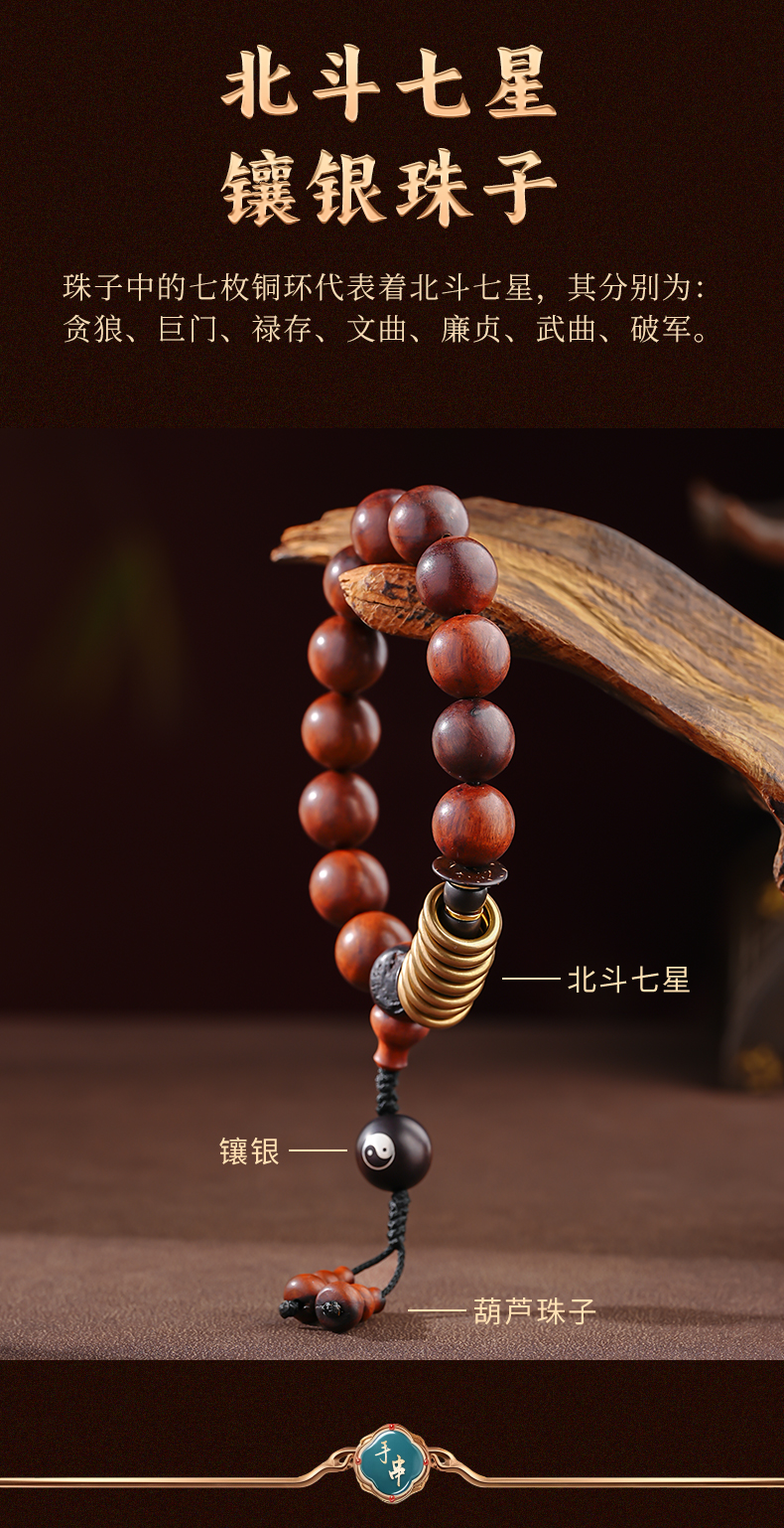 国风雷击木北斗七星镶银手串素珠手串15mm手持链男女同款盘玩手串
