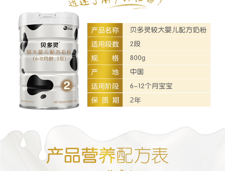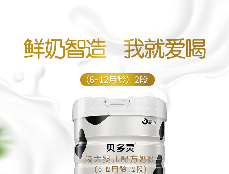 纽菲特贝多灵较大婴儿配方奶粉2段 (6~12月)800g罐装-800g*1/800g*6【纽菲特】