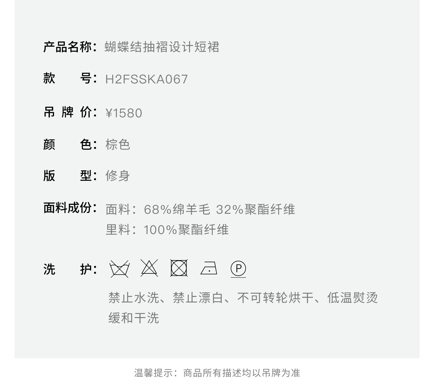 HERLIAN 2026年春季新品百可拆卸蝴蝶结百褶裙女士A字短裙