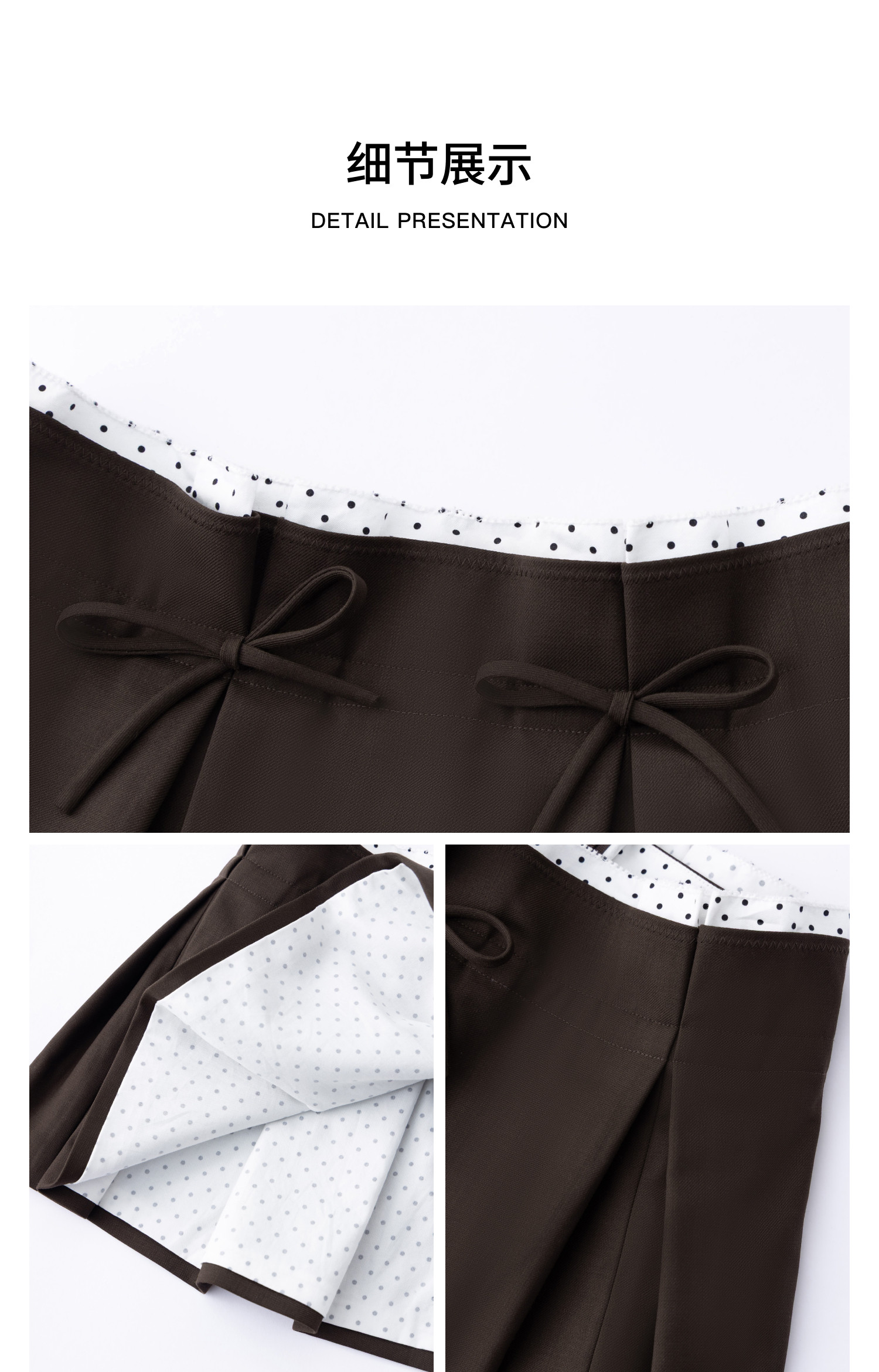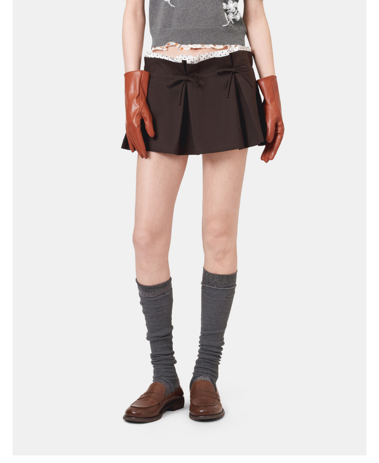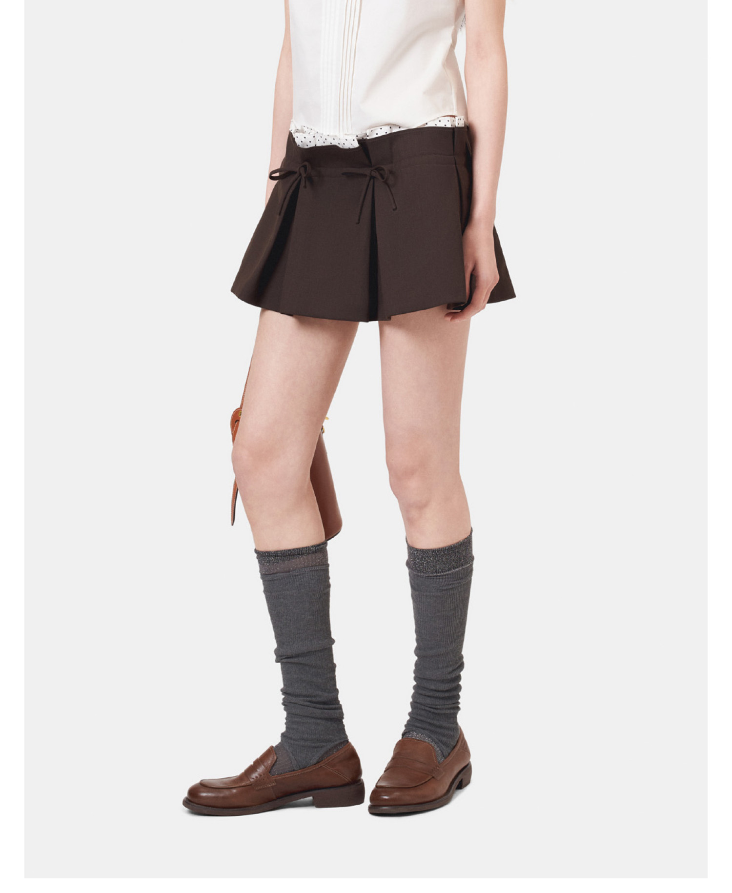 HERLIAN 2026年春季新品蝴蝶结抽褶设计短裙女棕调双褶A字半裙
