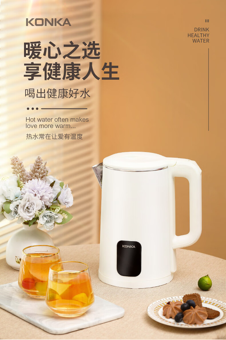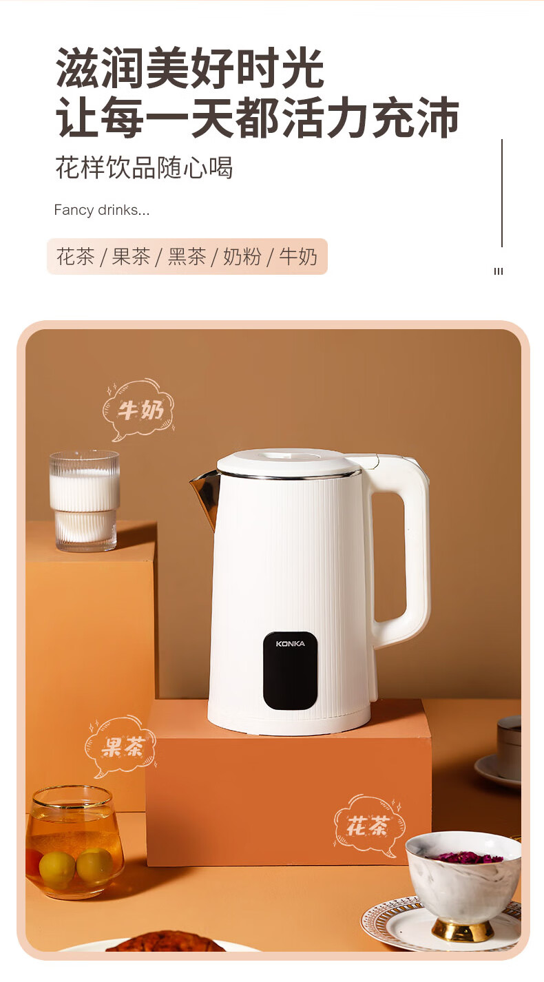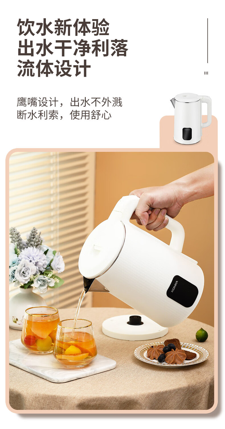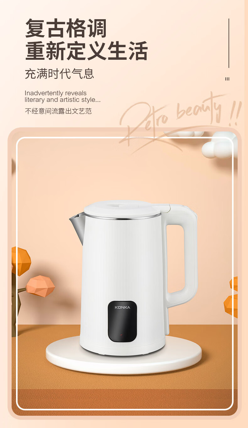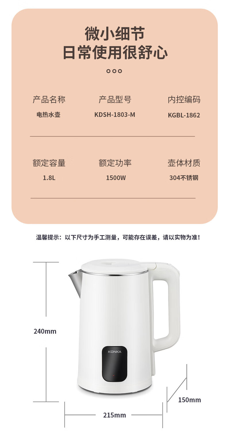 康佳(KONKA)电热水壶大容量304不锈钢内胆自动恒温烧水壶 KDSH-1803-M(无保温) 1.8L
