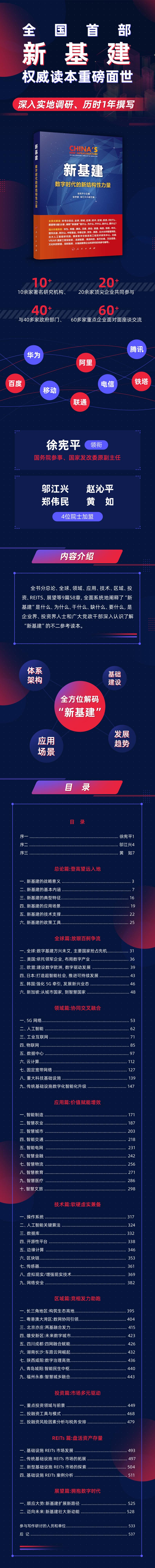 2018年12月,中央经济工作会议首次提出:加强新型基础设施建设。今年政府工作报告中,“新基建”被明确为“两新一重”建设的首要内容,社会各界高度关注。《新基建:数字时代的新结构性力量》一书课题组,由国务院参事、国家发改委原副主任徐宪平领衔,4位院士加盟。课题组深入粤港澳大湾区、长三角地区、北京经济技术开发区等实地调研,与40多家政府部门、60多家重点企业面对面座谈交流。华为、阿里、腾讯、百度、移动、联通、电信、铁塔等20多家很好企业,和北大、北航、中科院、中国工程院等10多家著名研究机构专家,共同研讨,参与编写,历时1年,最终形成了本书这一丰厚饱满、全面权威的新基建研究成果。全书分总论、全球、领域、应用、技术、区域、投资、REITS、展望等9篇55章,全面系统地阐释了“新基建”是什么、为什么、干什么、缺什么、要什么,是当前广大党政干部和相关企业界、投资界人士深入认识了解“新基建”的不二参考......