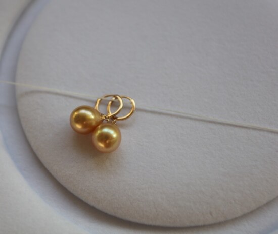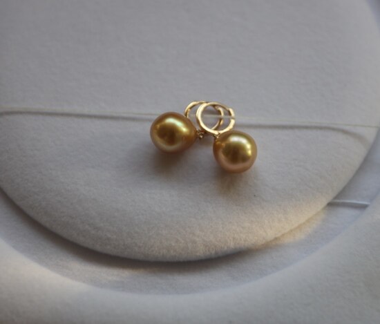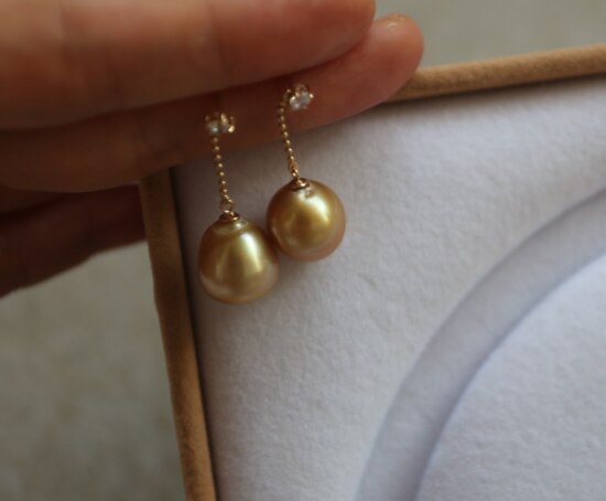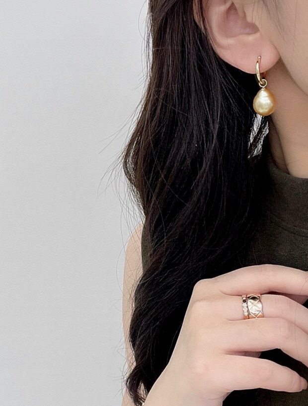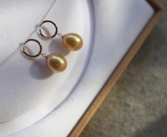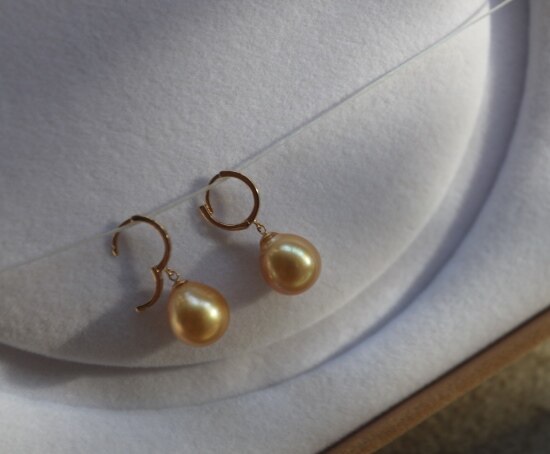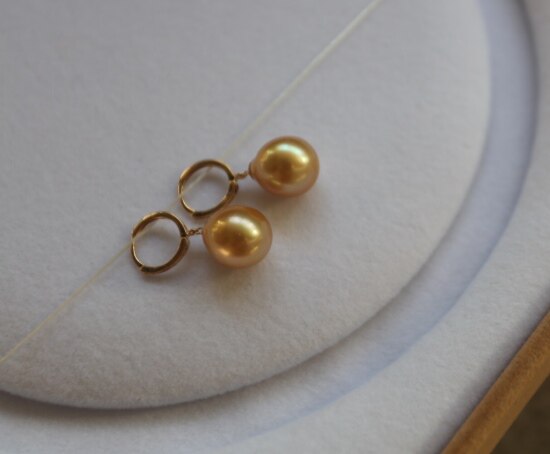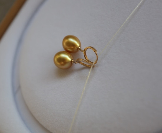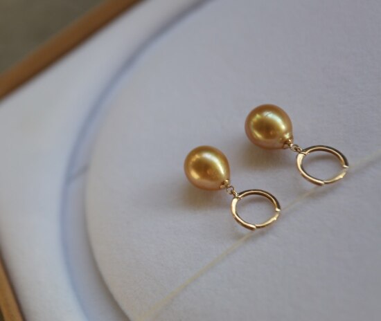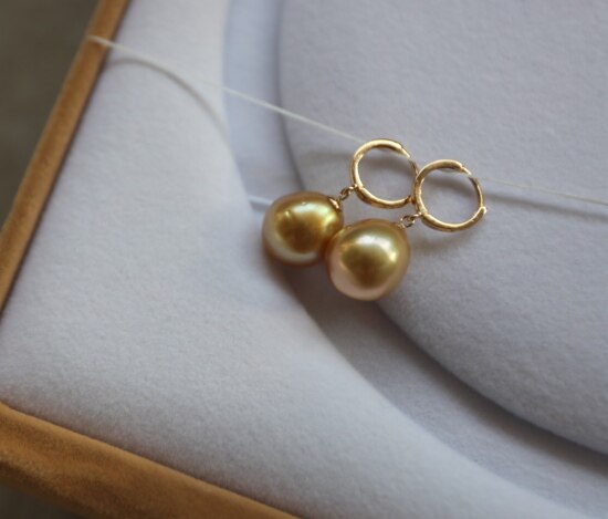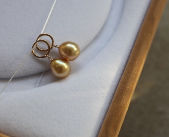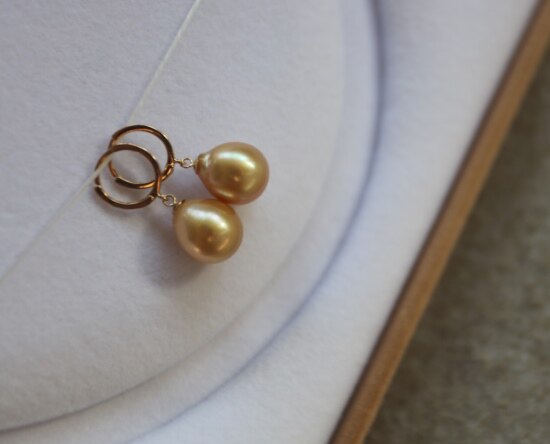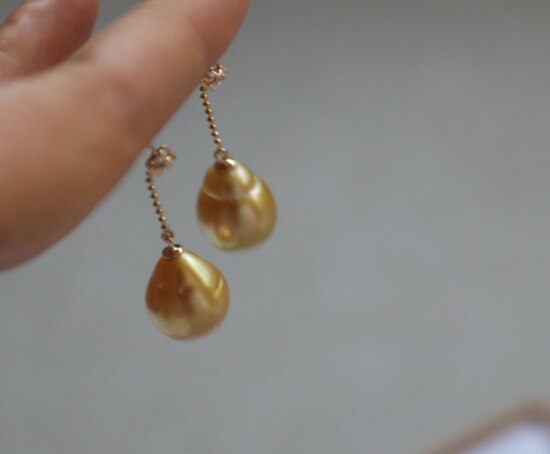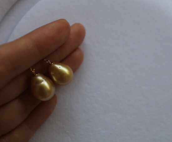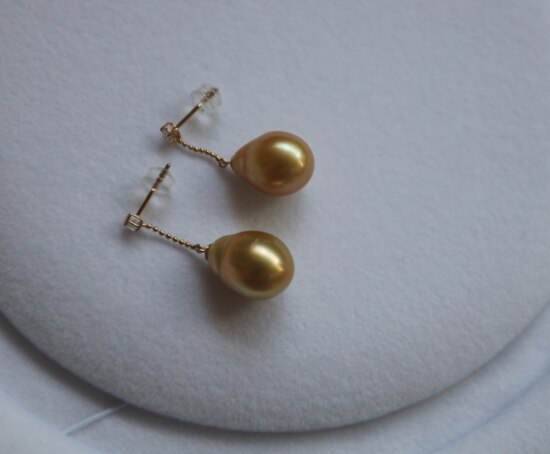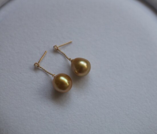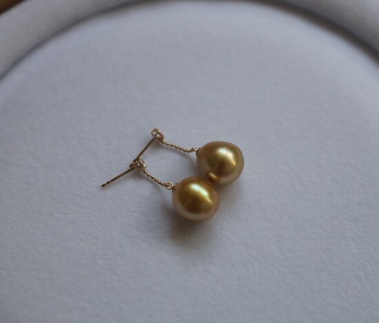 年少不知珍珠美 哈!天然海水 南洋金珠 螺纹水滴型 18K 耳坠 二款入