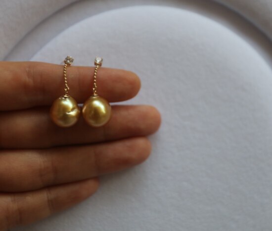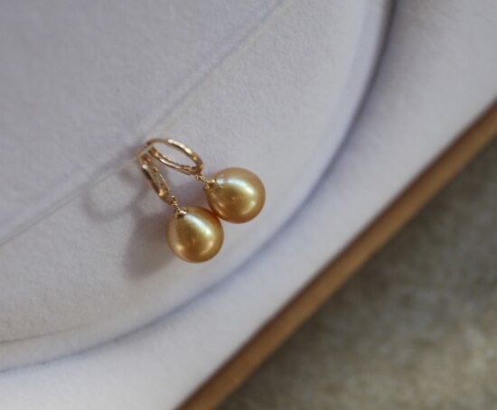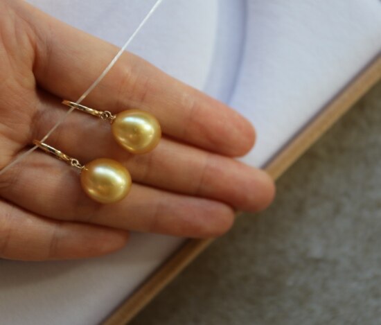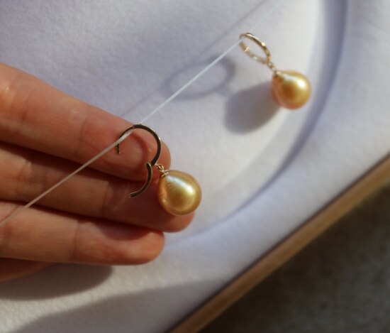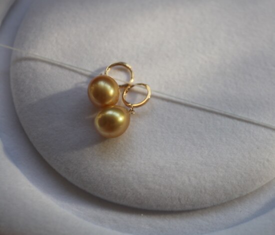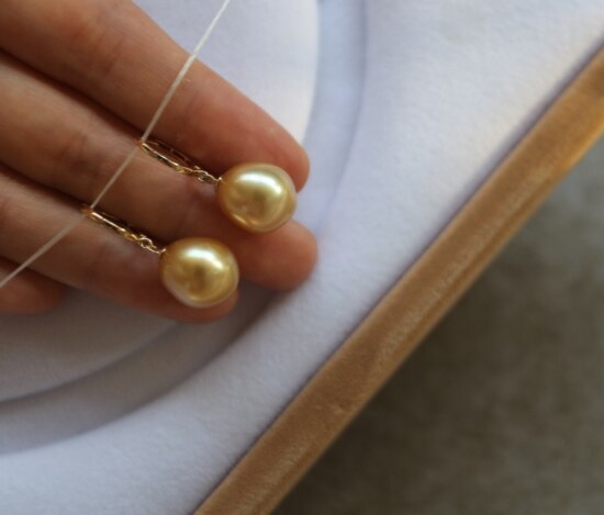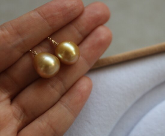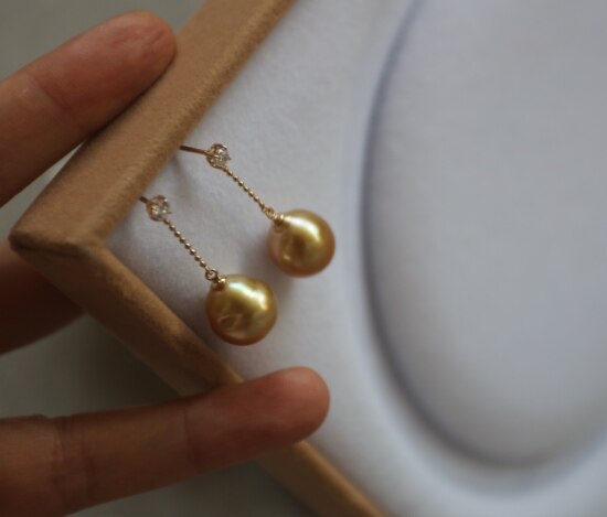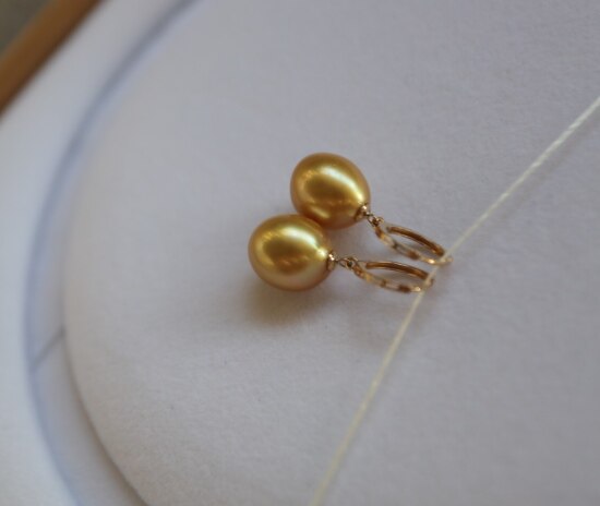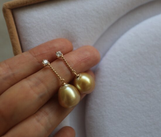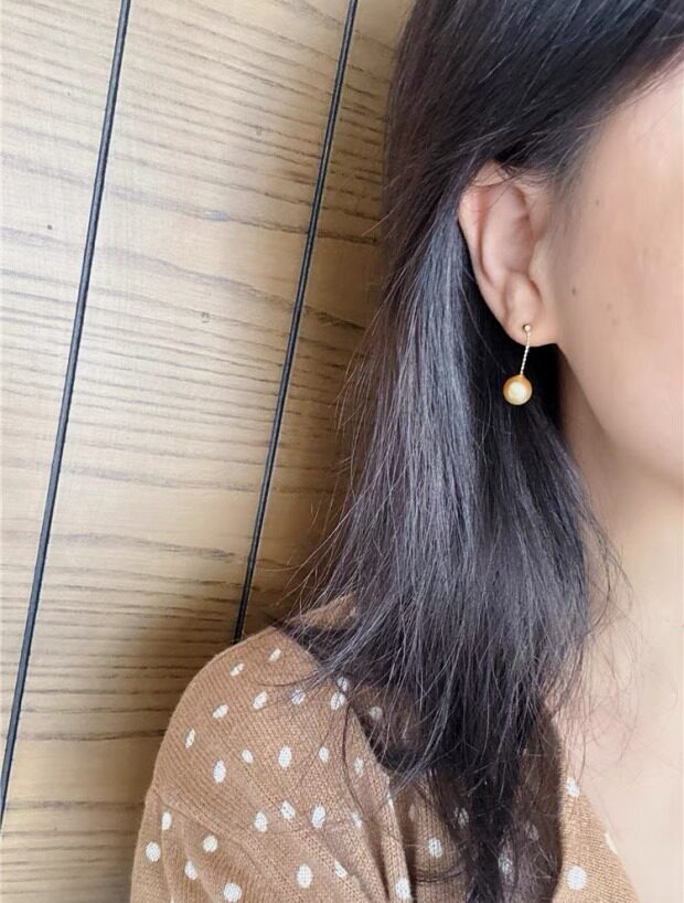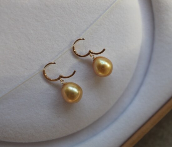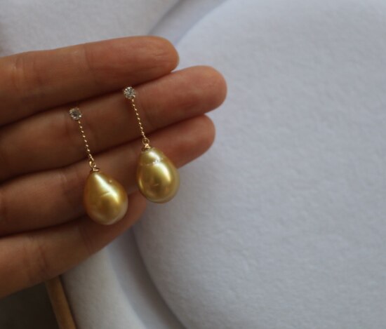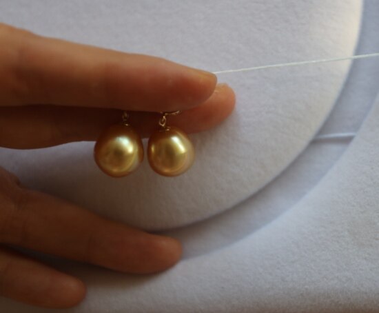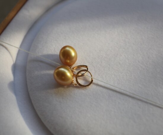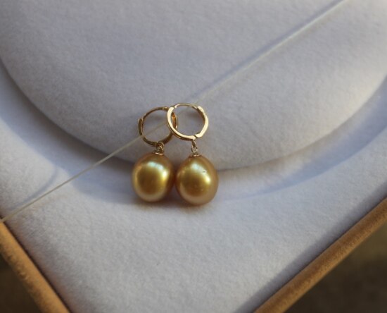 年少不知珍珠美 哈!天然海水 南洋金珠 螺纹水滴型 18K 耳坠 二款入
