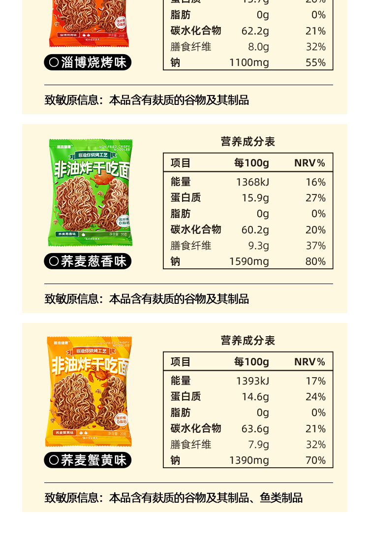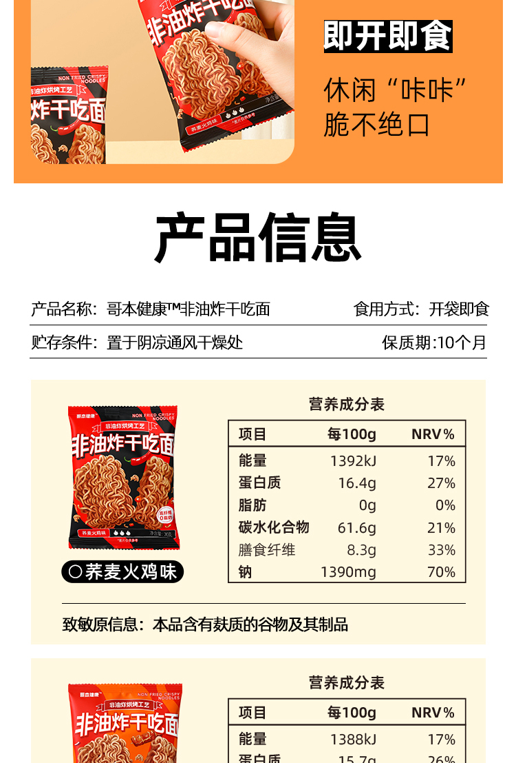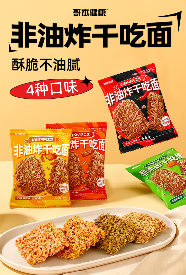 哥本健康荞麦非油炸干脆面 蟹黄/葱香/烧烤/火鸡 20g/袋