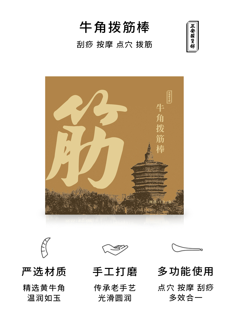 【正安】牛角拨筋棒 黄牛角刮痧按摩眼部点穴拨筋 A-2683