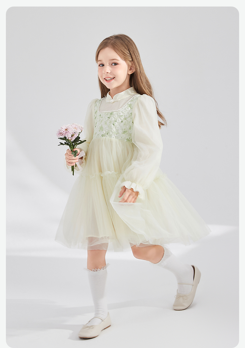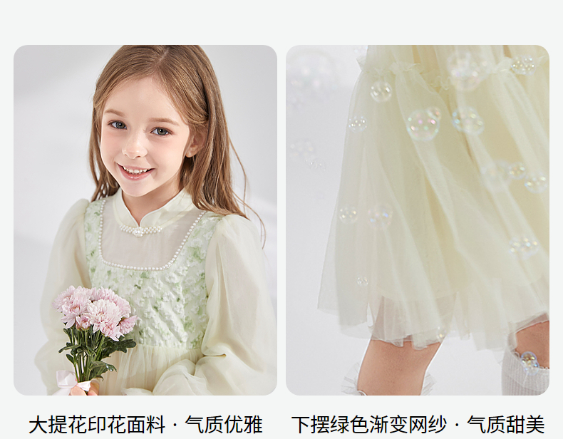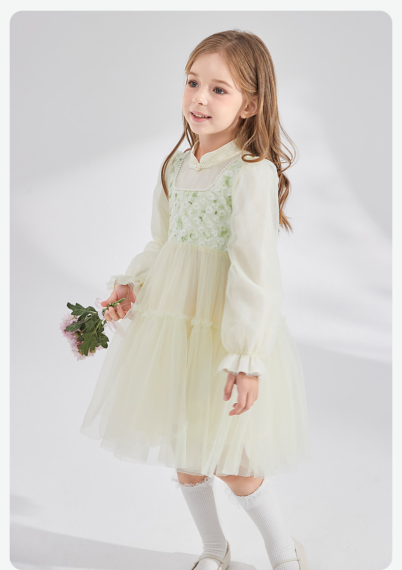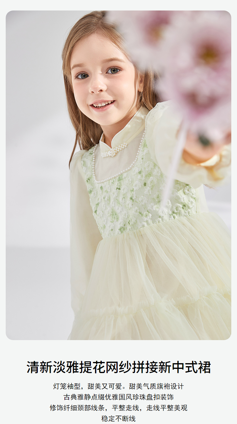 笛莎Deesha 童装女童连衣裙2024秋季新款儿童新中式裙