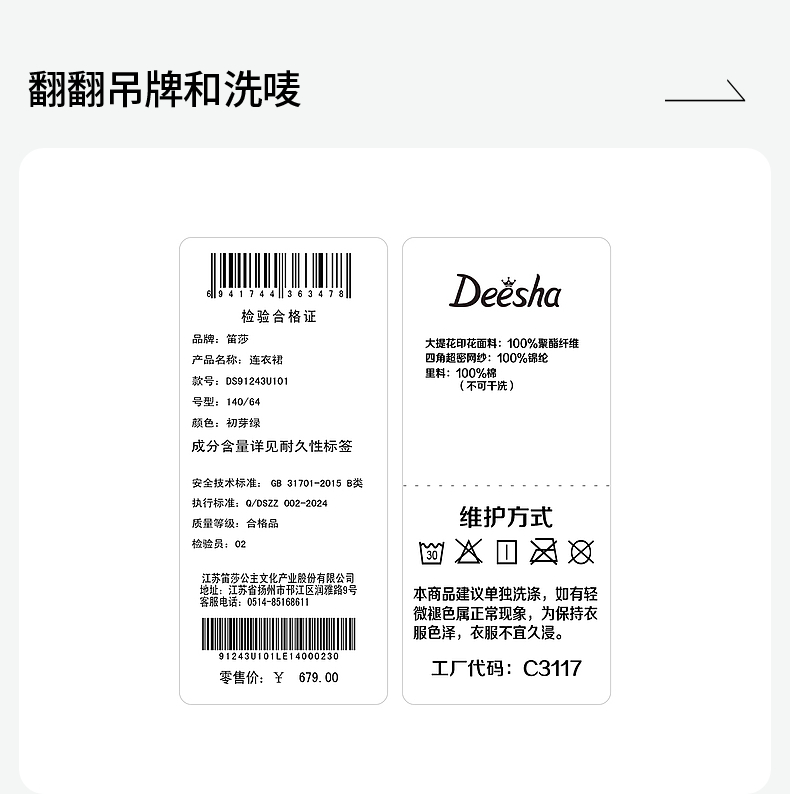 笛莎Deesha 2026年夏季新款小童女童U日常生活连衣裙连衣裙