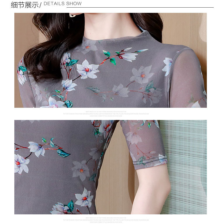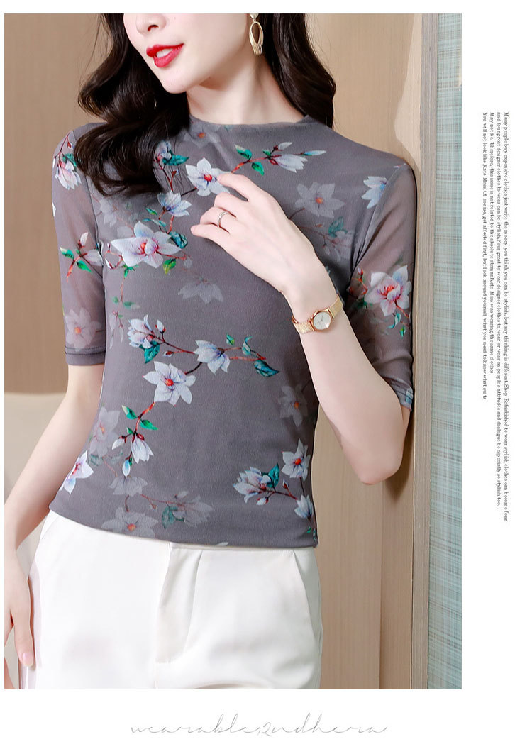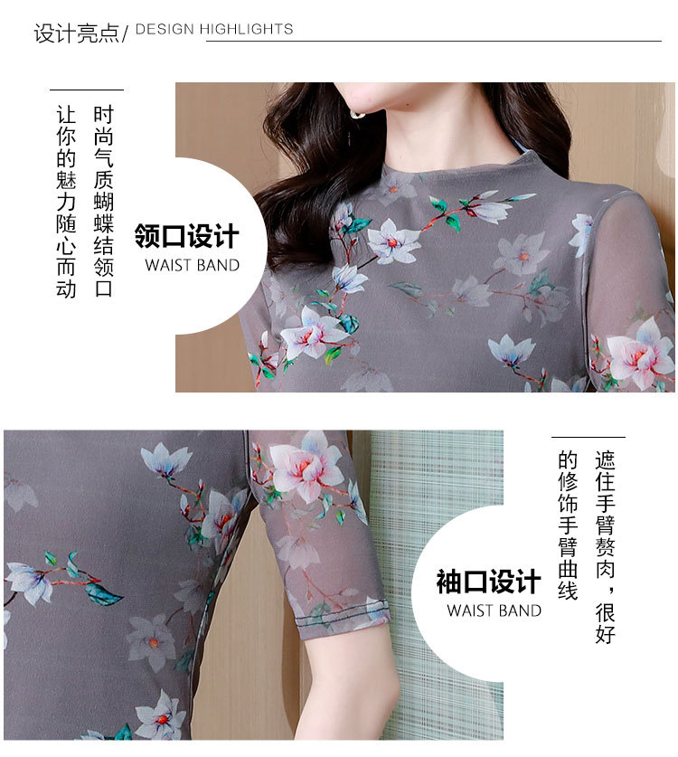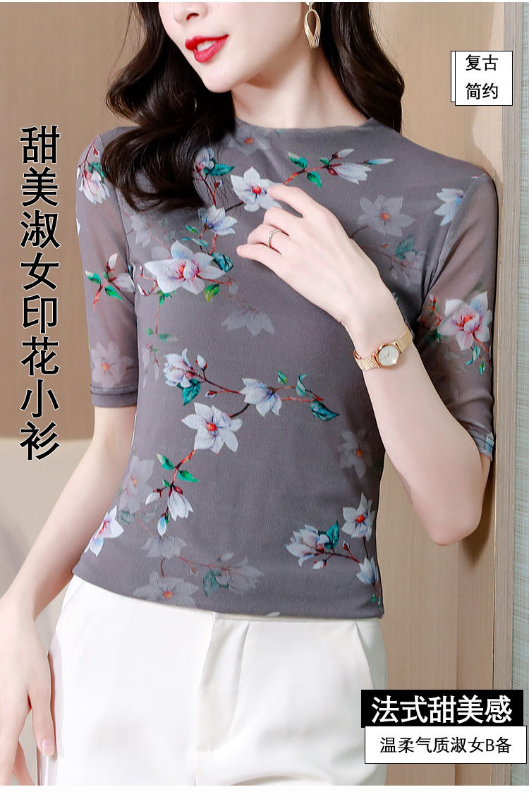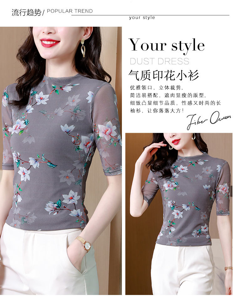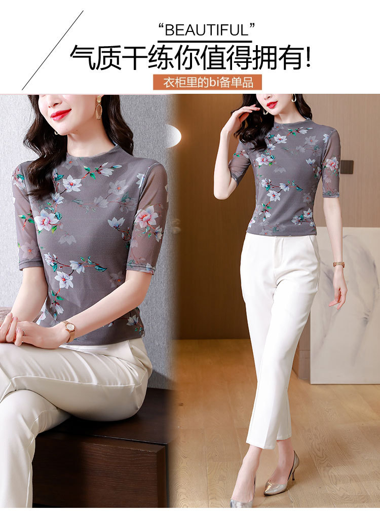 网纱双层打底衫,中袖百搭t恤女上衣KQL-N9872