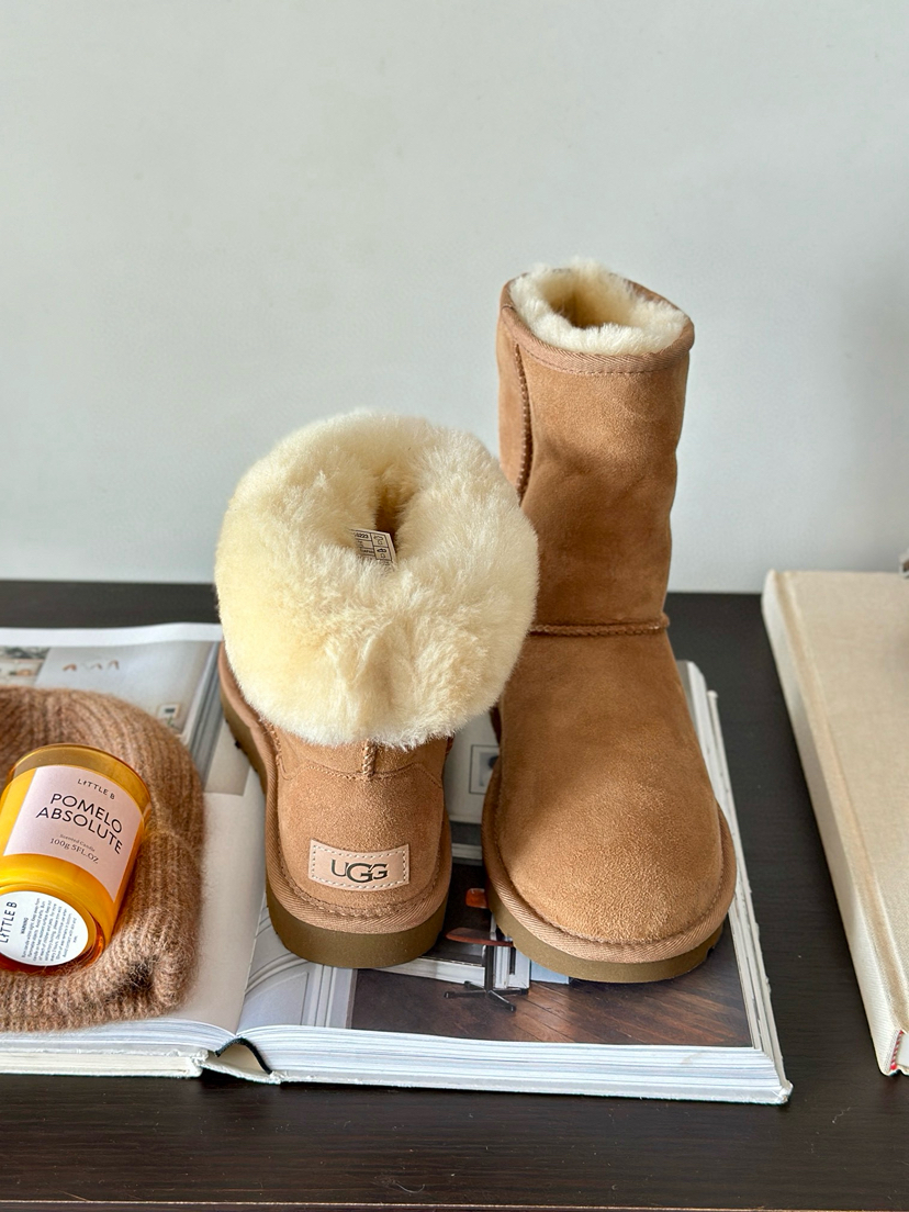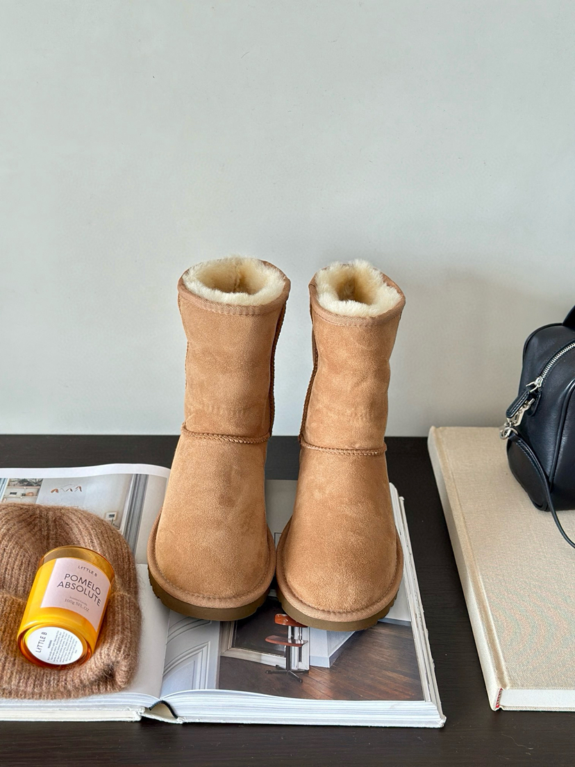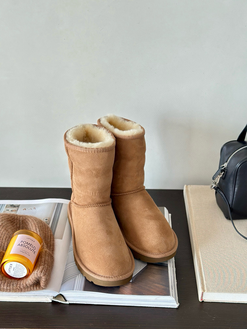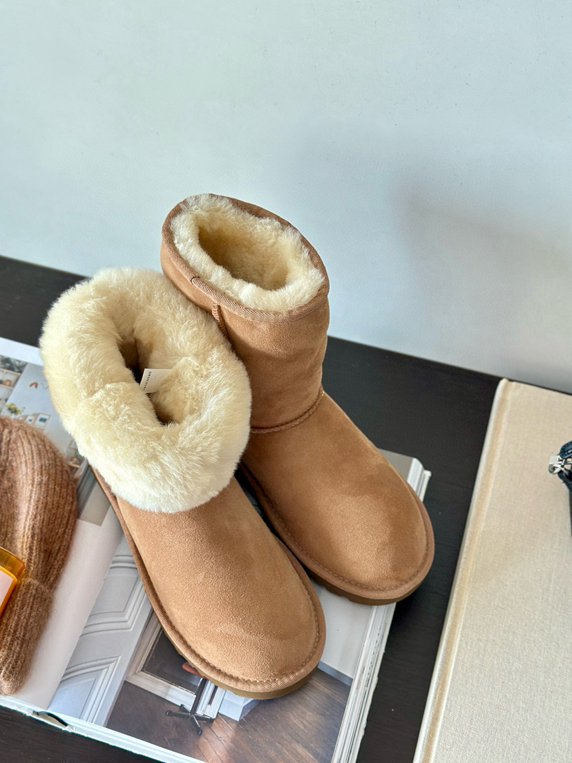1223-5 百分百圆正 得物单 GGU丰盈柔滑 羊皮毛一体 中筒靴 雪地靴 绝杀‼️