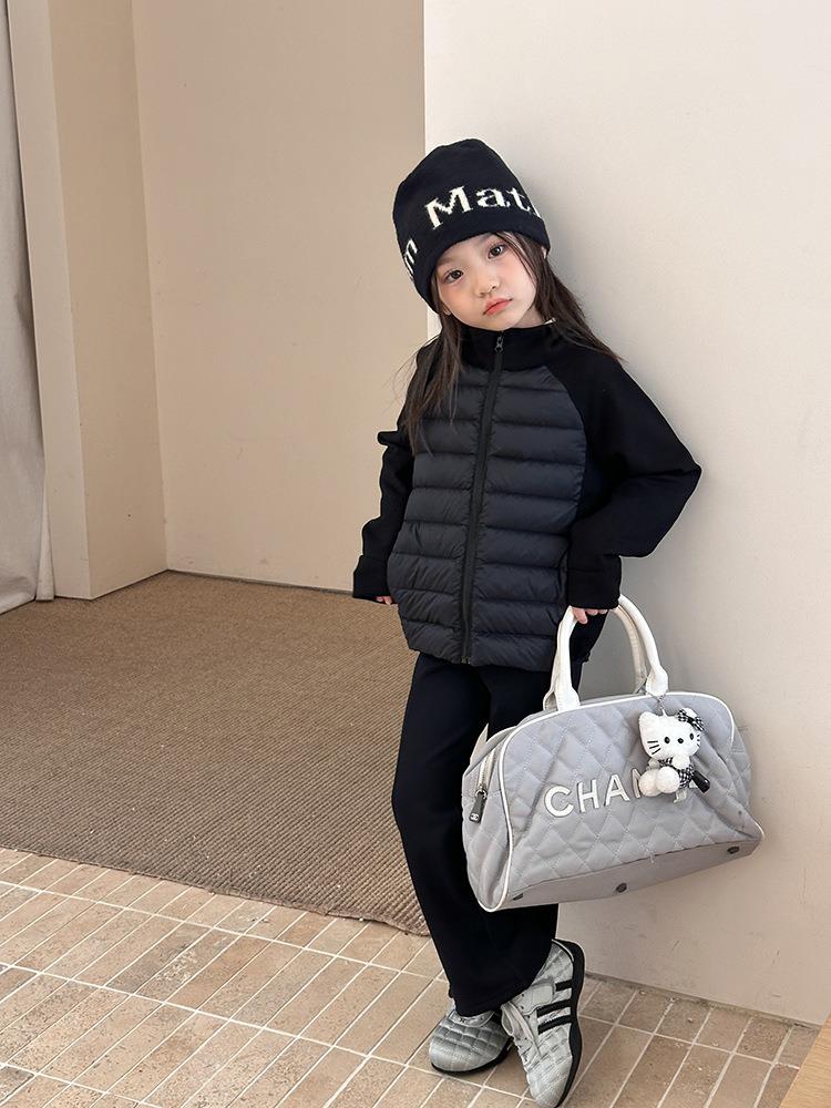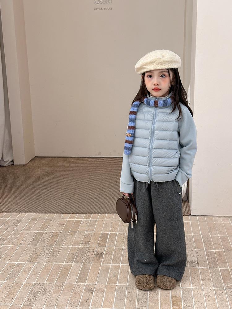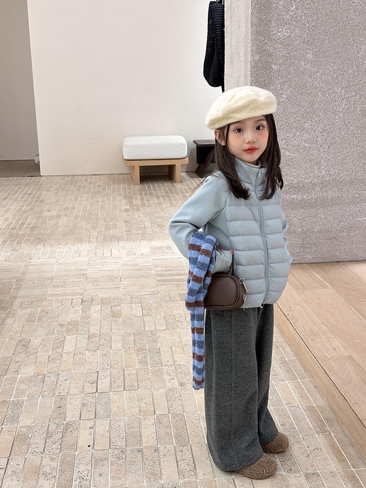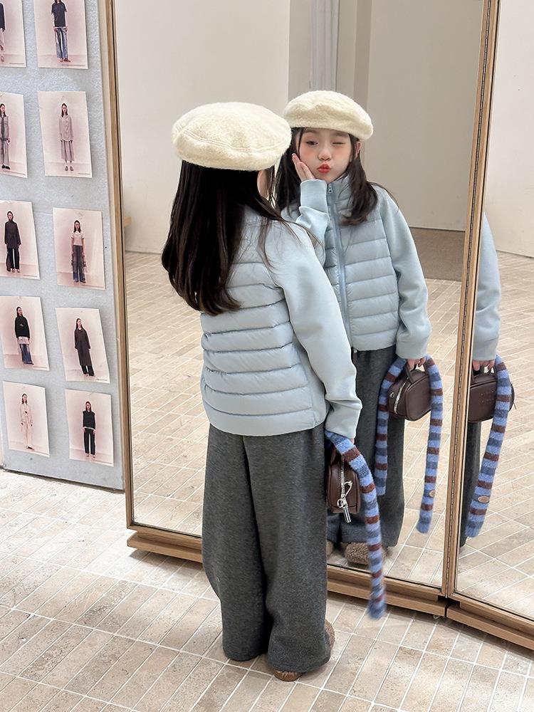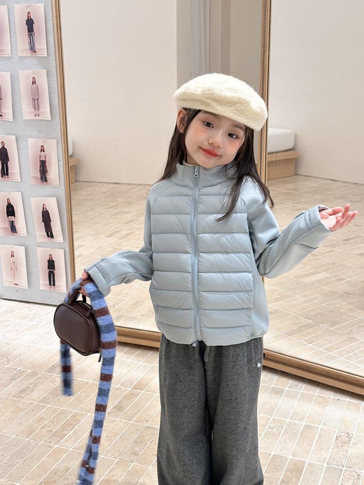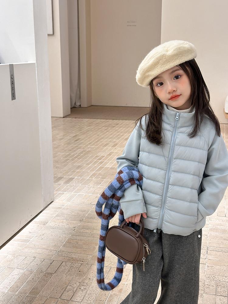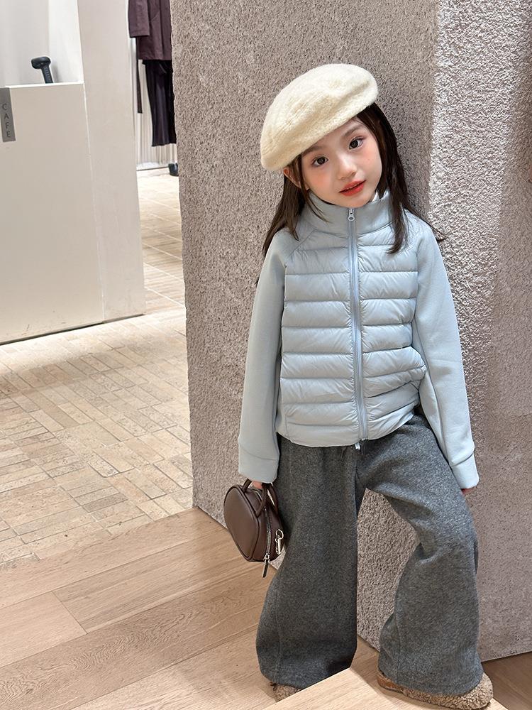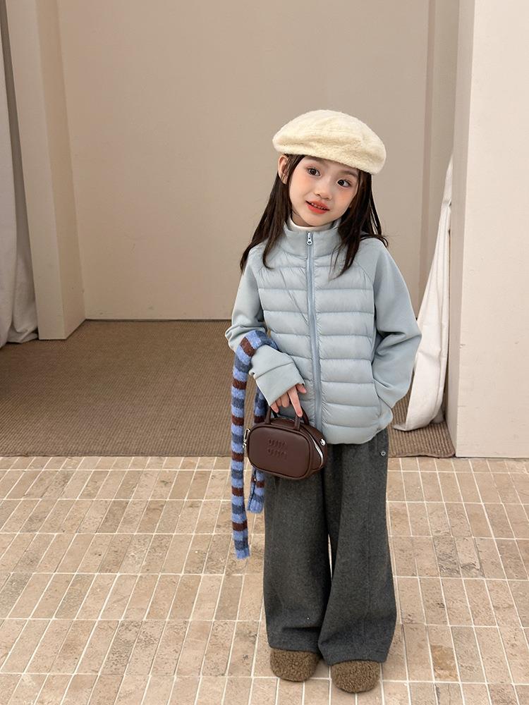 【新国标白鸭绒可溯源】冬天女童毛绒袖拼接5A抗菌发热爱丽丝绒轻薄羽绒服