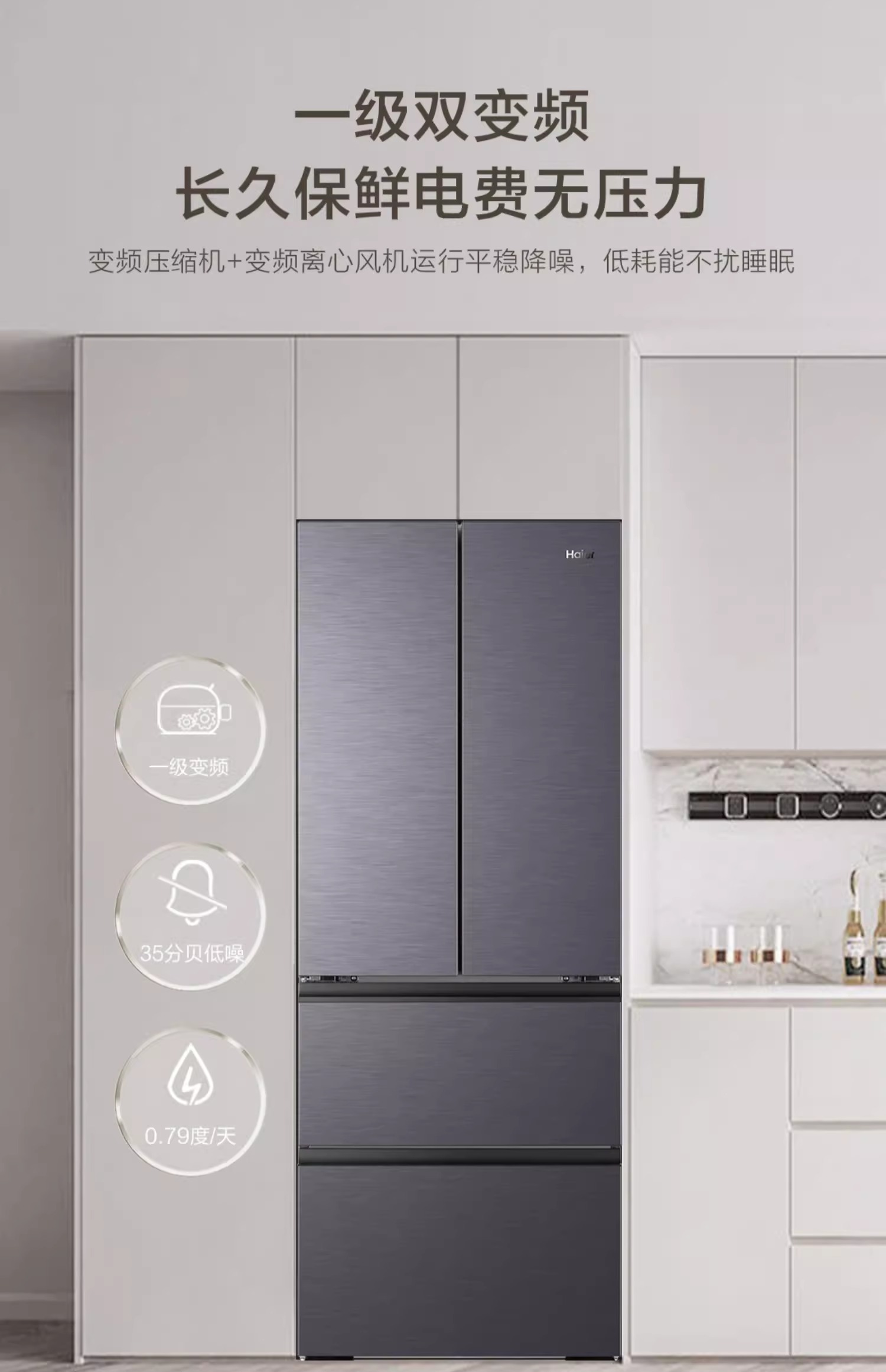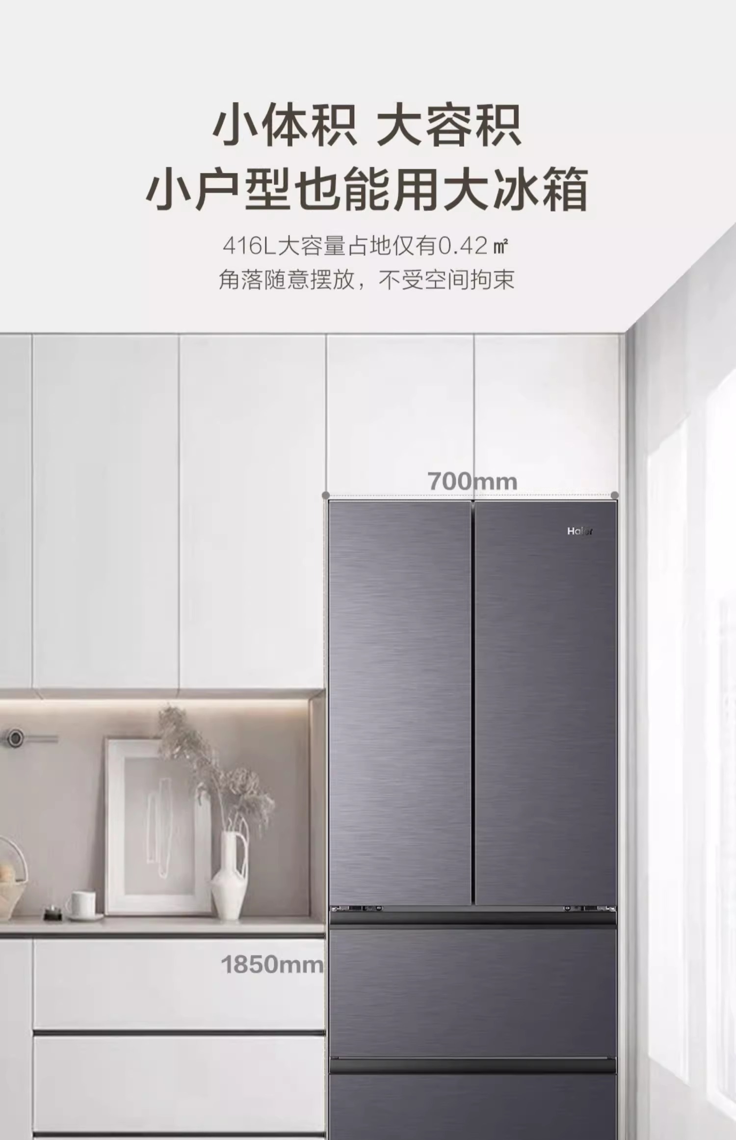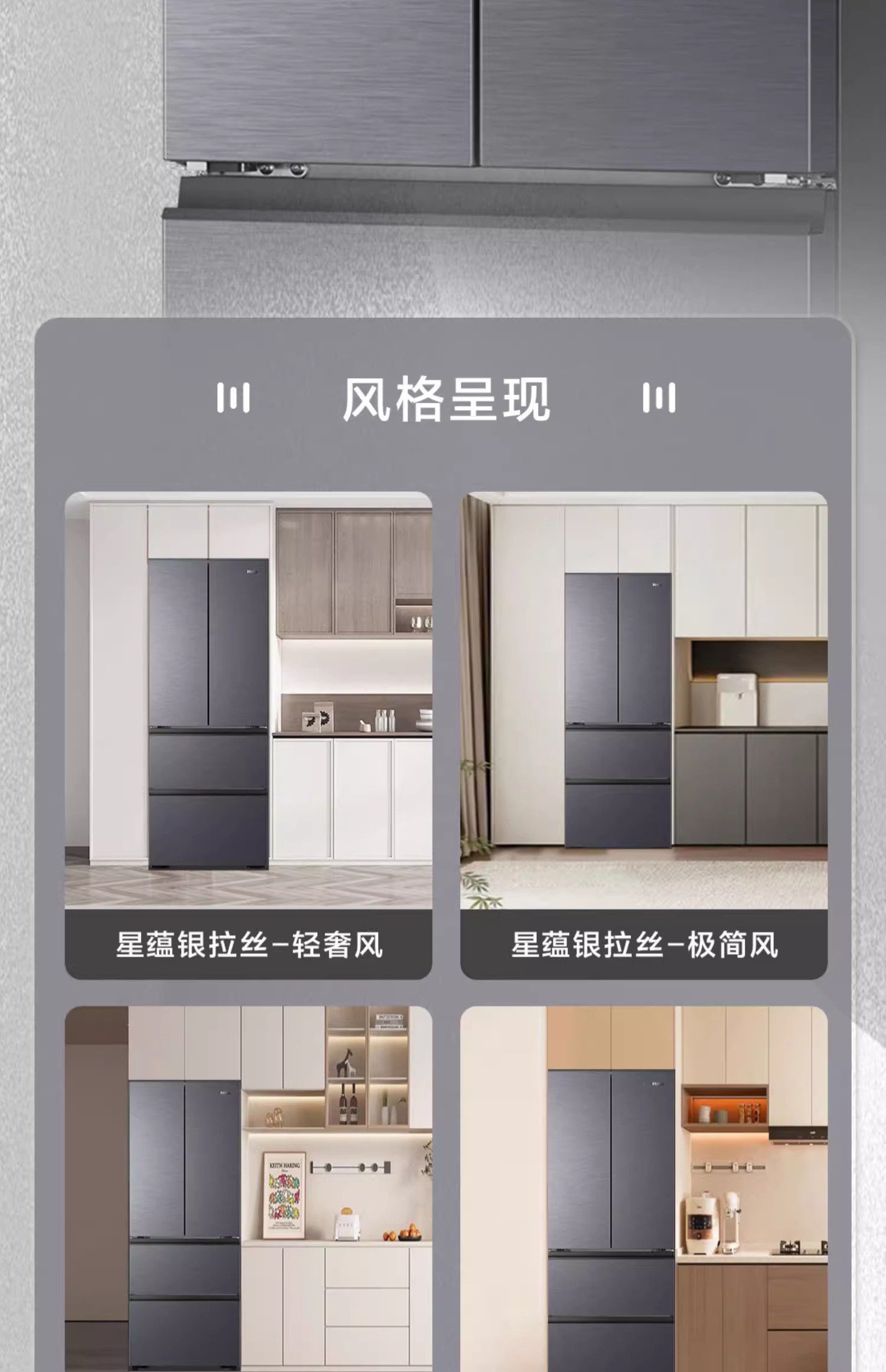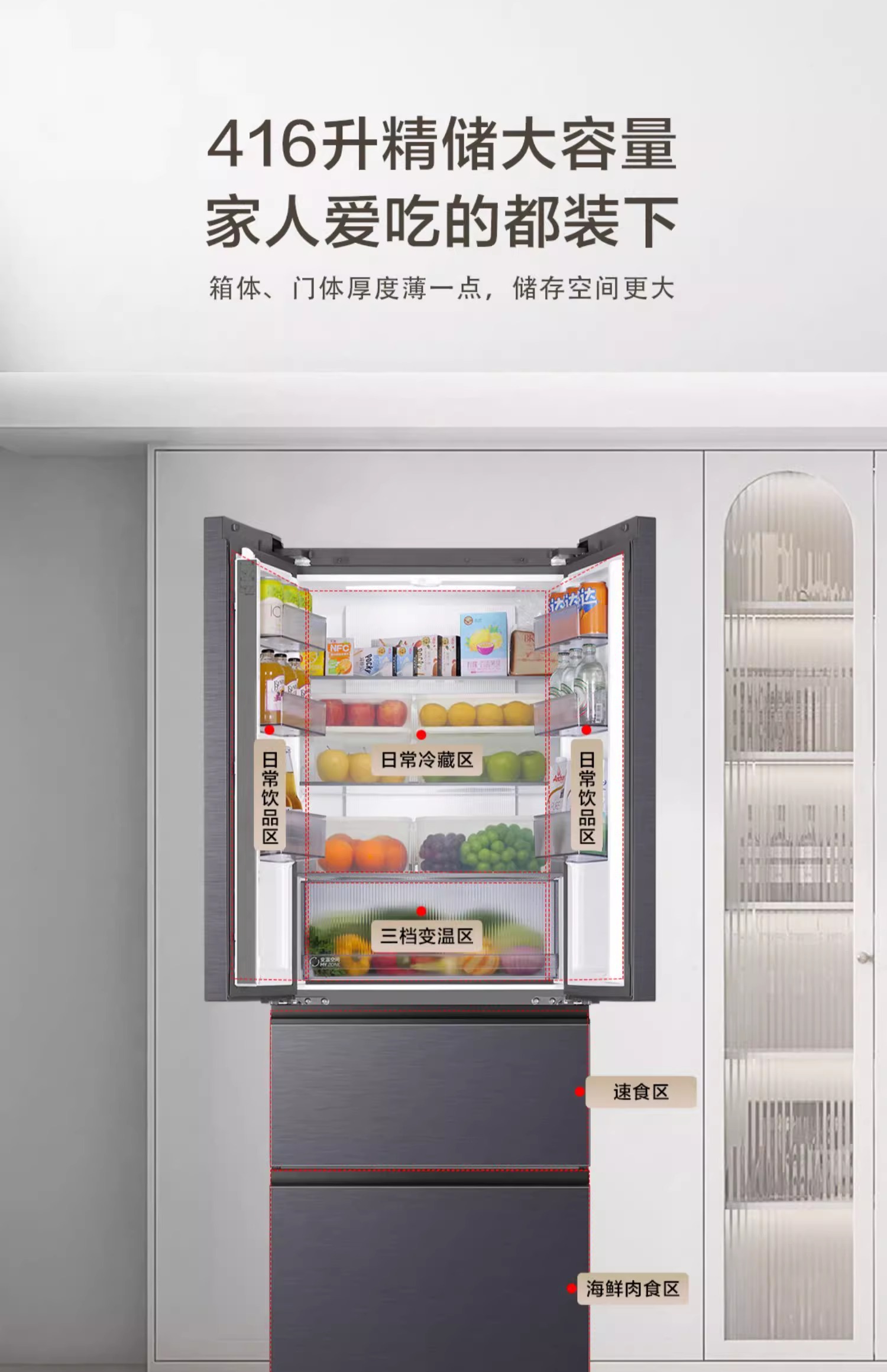海尔416L零嵌式法式多门大容量一级风冷无霜超薄家用冰箱