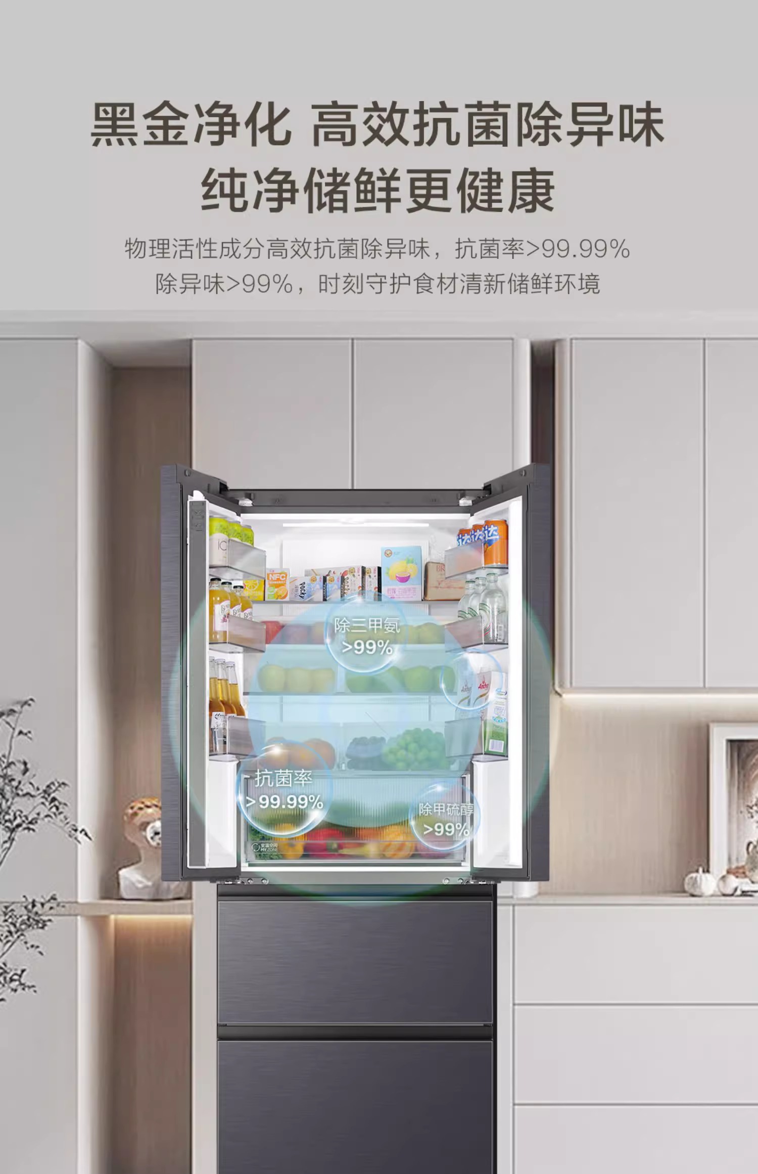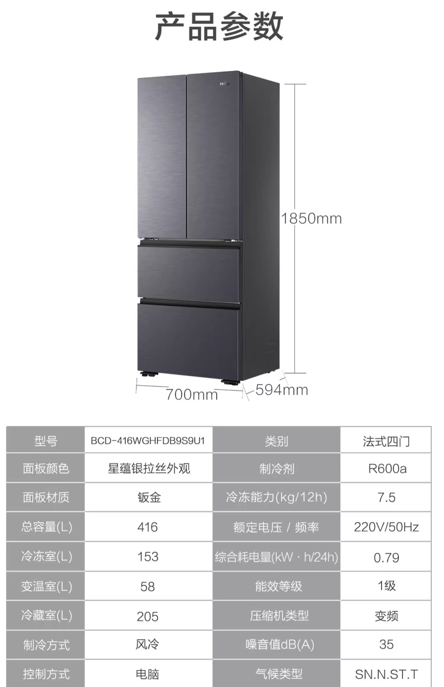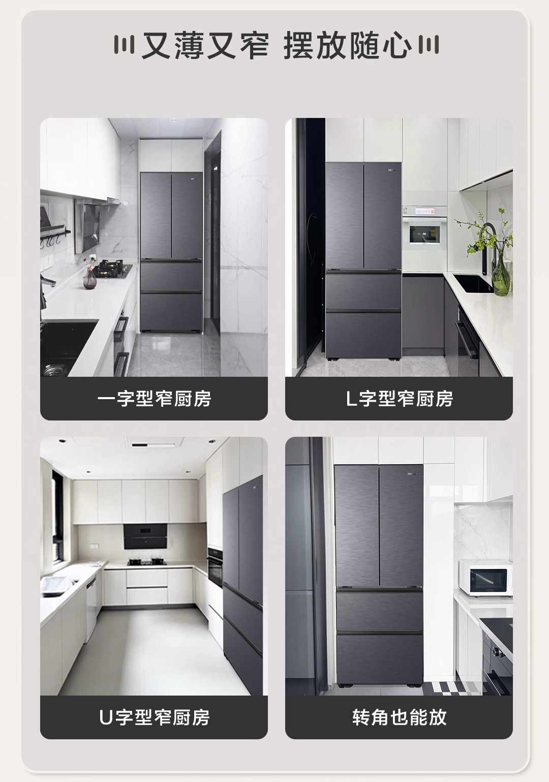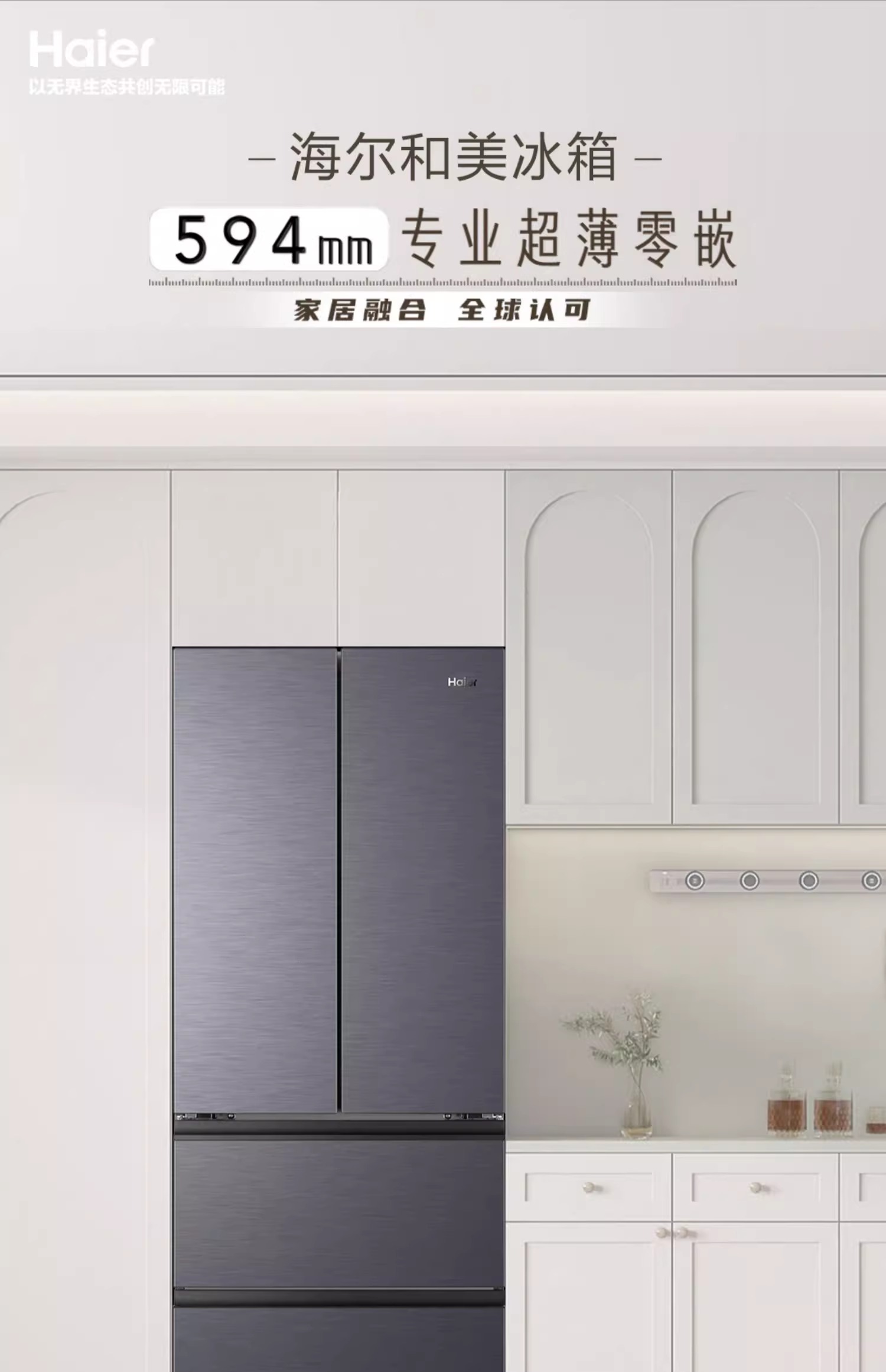 海尔416L零嵌式法式多门大容量一级风冷无霜超薄家用冰箱