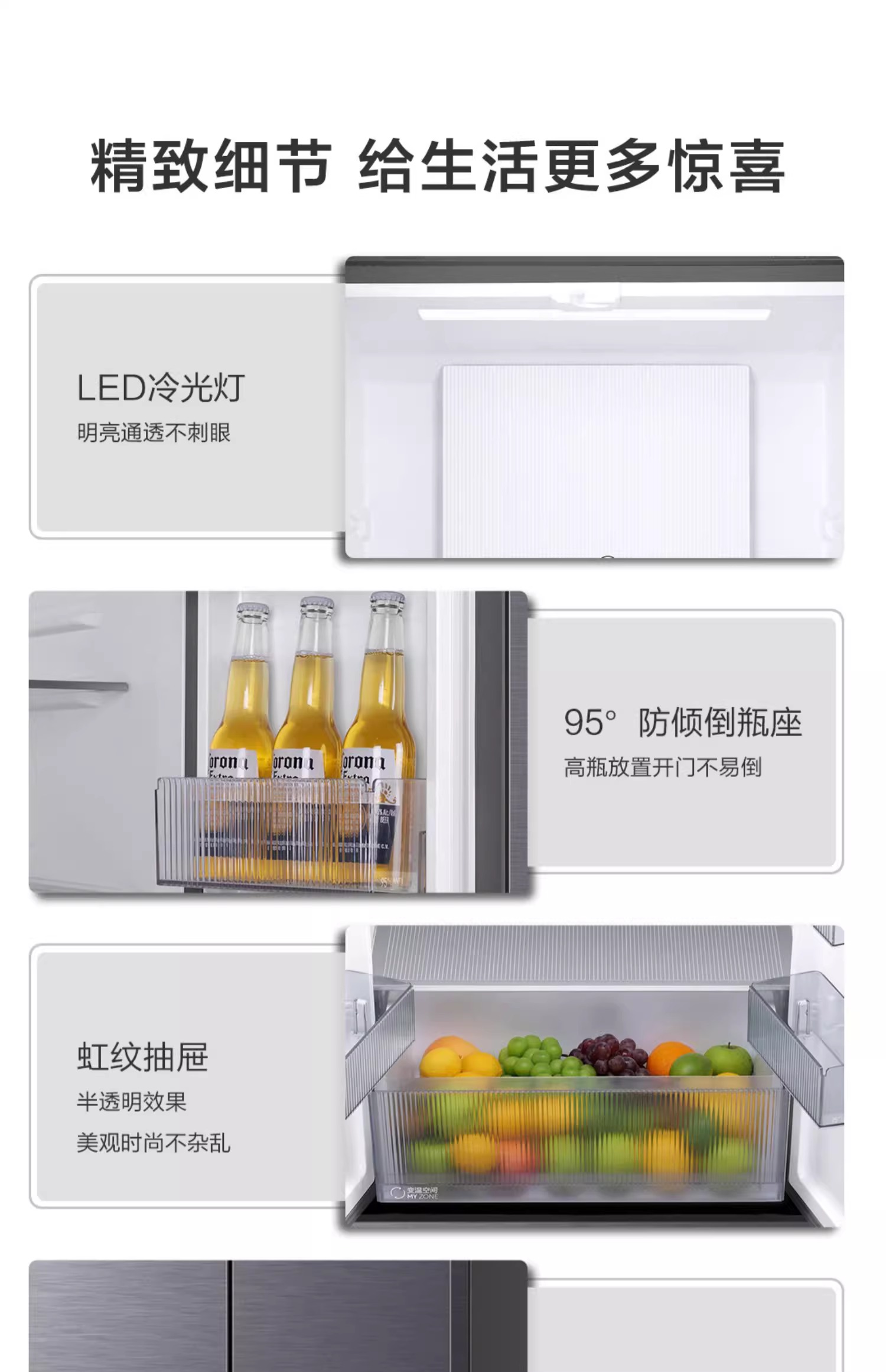 素岩-卡萨帝551L零嵌入式灰白色十字四门一级能效超薄家用冰箱