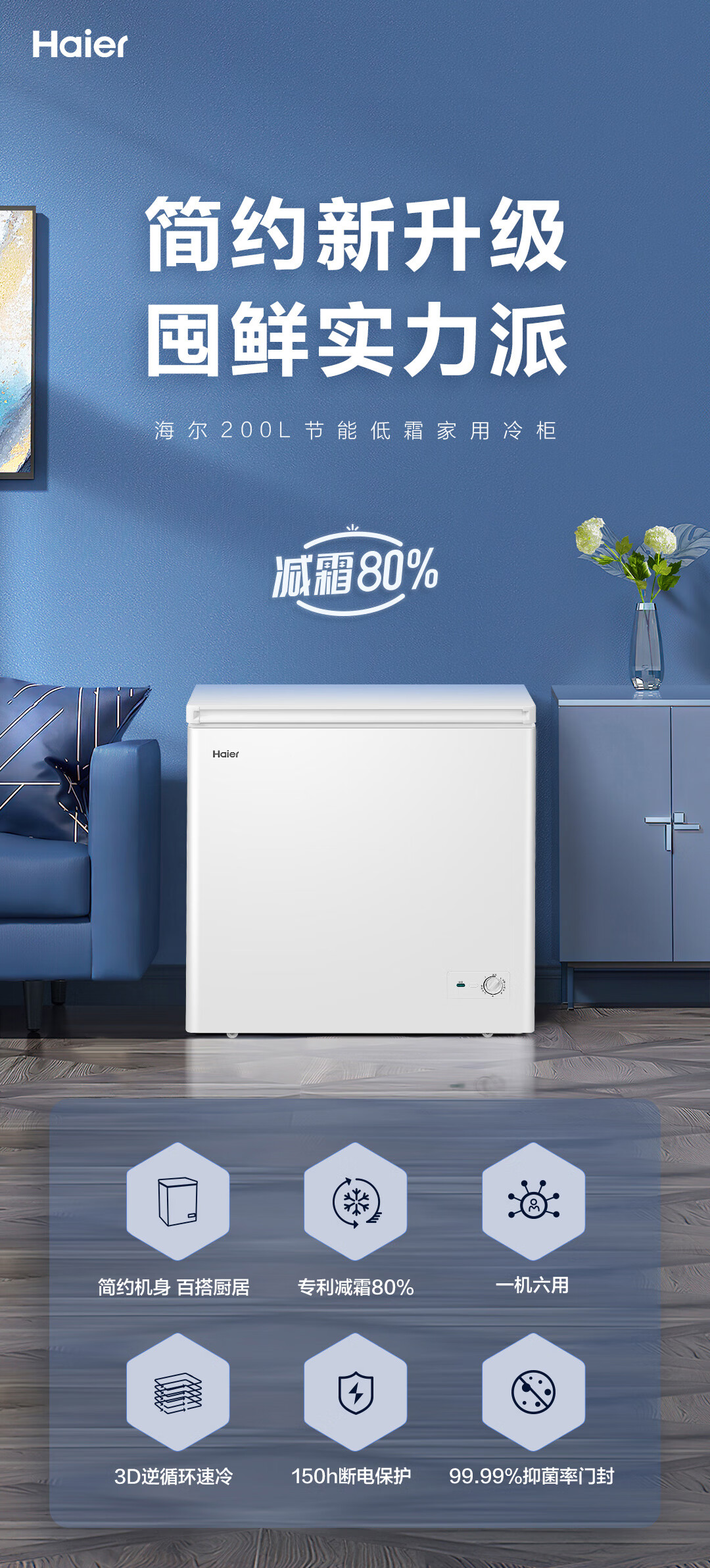 海尔(Haier)200升低霜小冰柜家用商用冷藏柜冷冻柜两用冰柜小型租房用小冰箱小型冷柜BC/BD-200GHDT