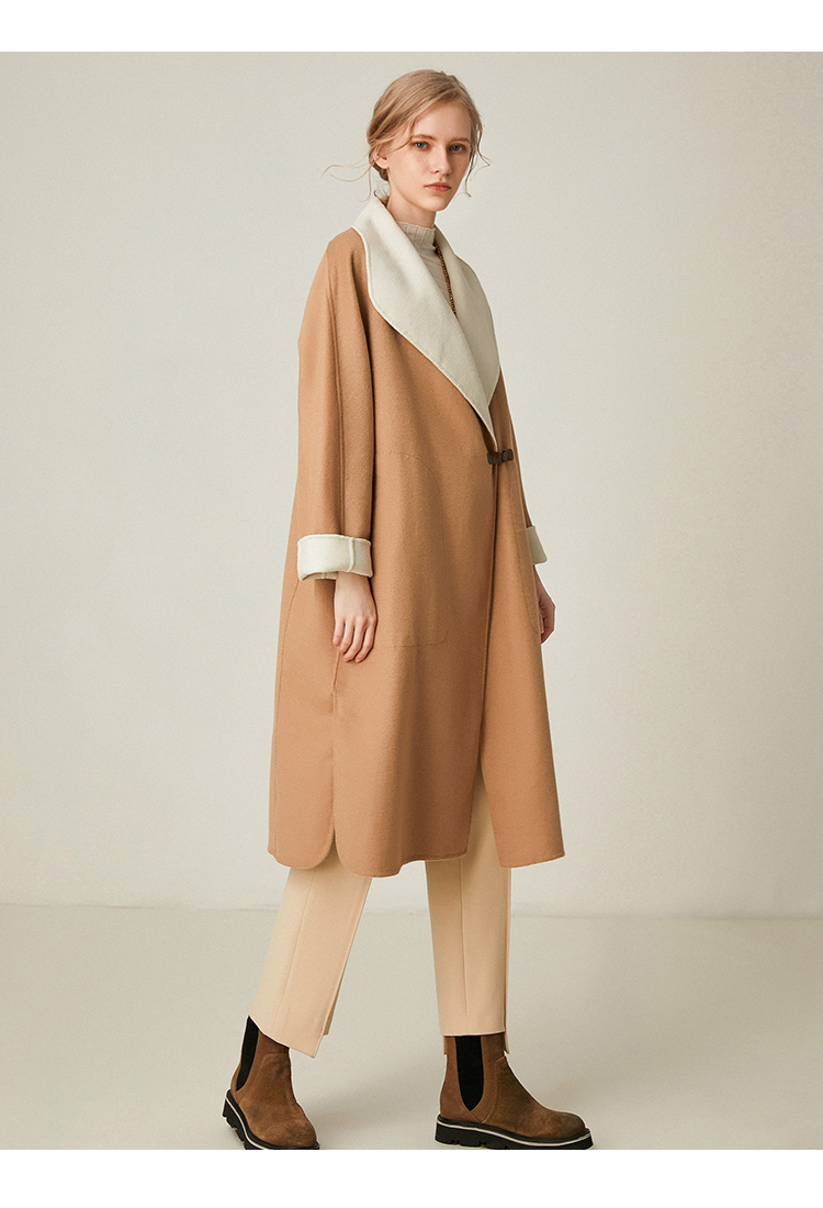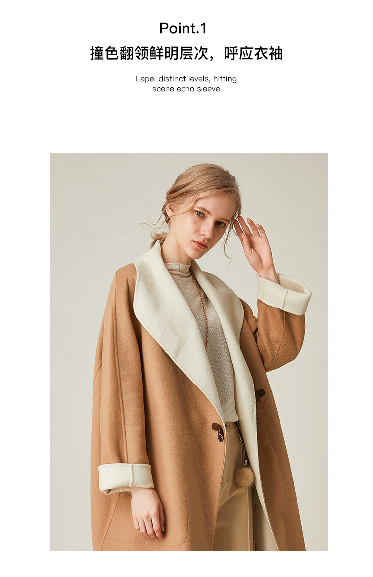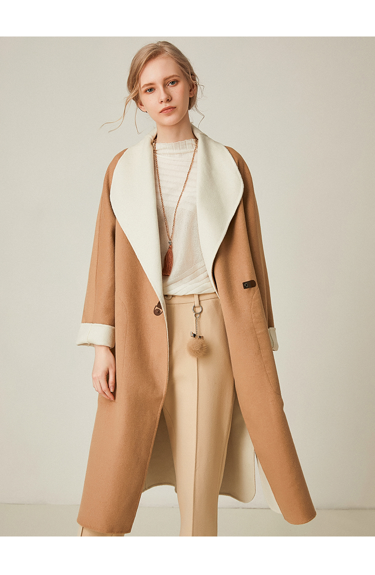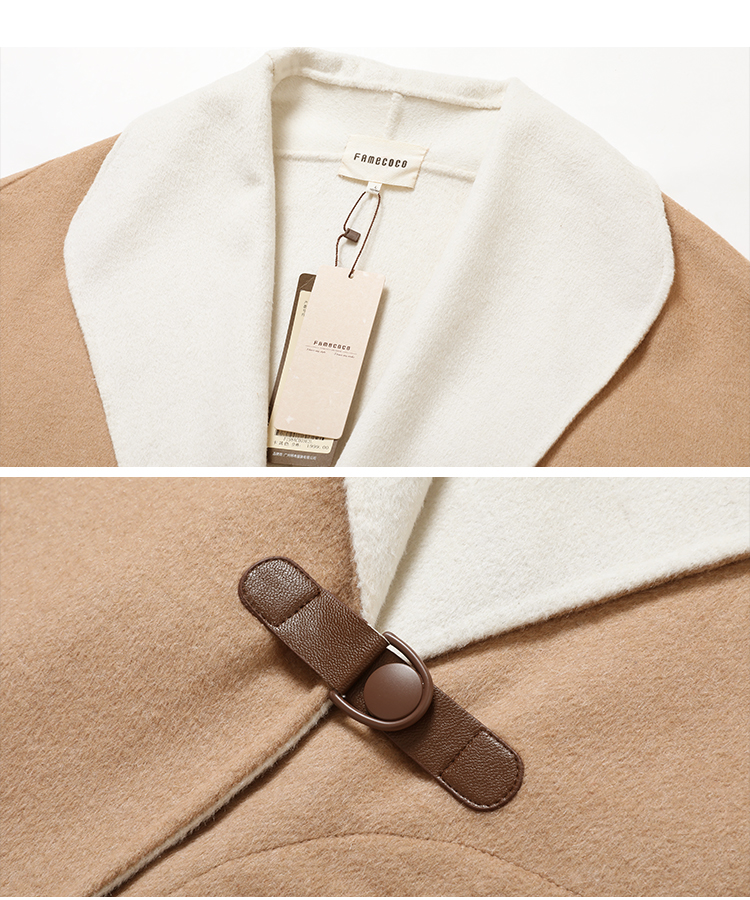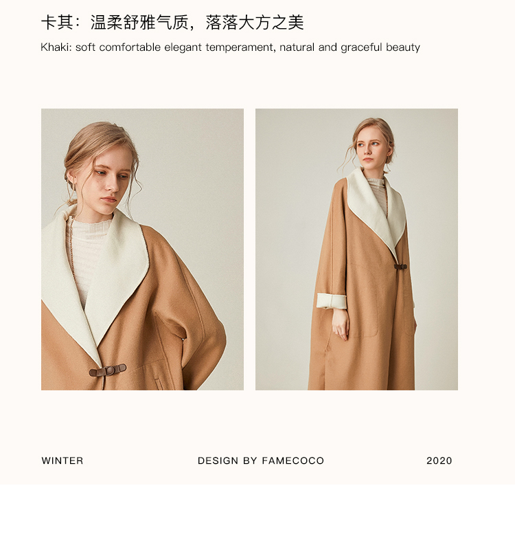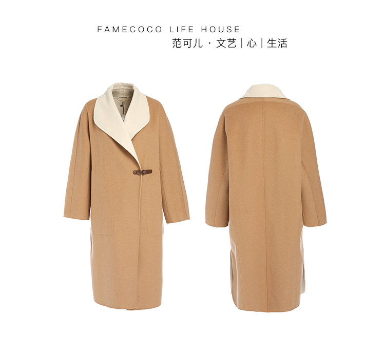 Famecoco范可儿双面呢大衣加厚中长款外套F198AC003