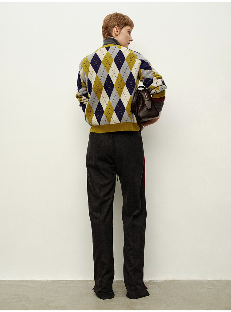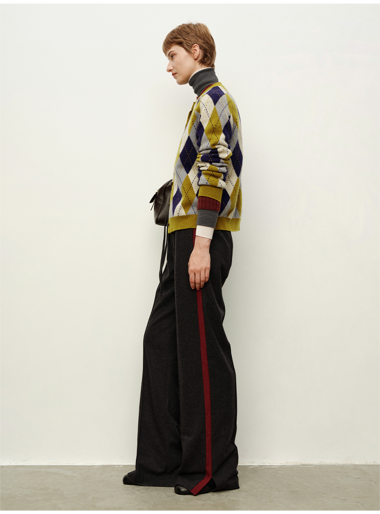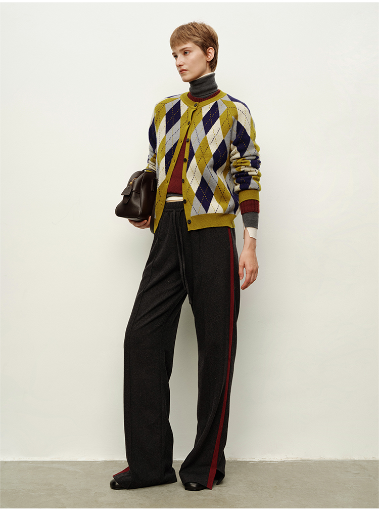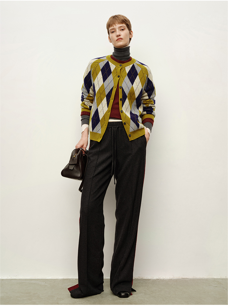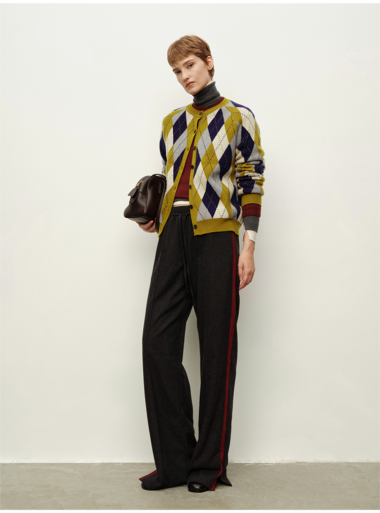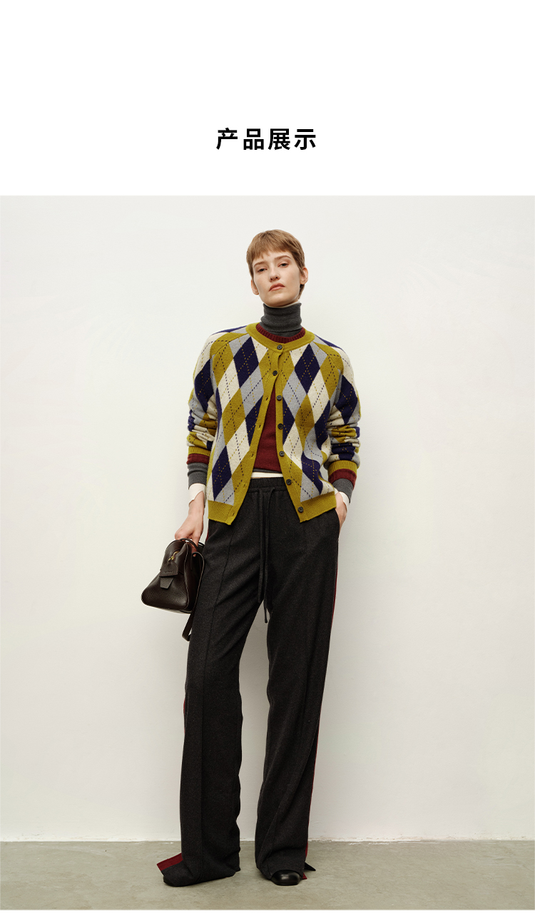 HIDEMI 进口美利奴羊毛原创复古手绘图案长袖针织中厚款开衫毛衣女