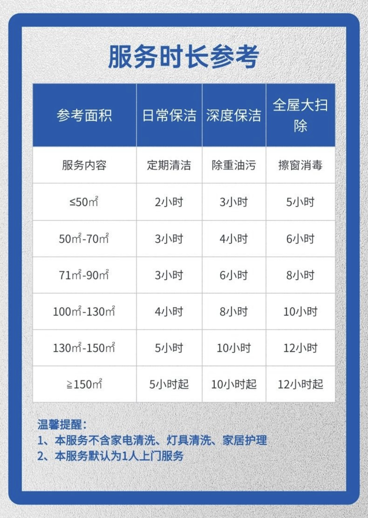 除外范围:家居清洗、家电拆洗、吊顶灯具、贵重物品、收纳。