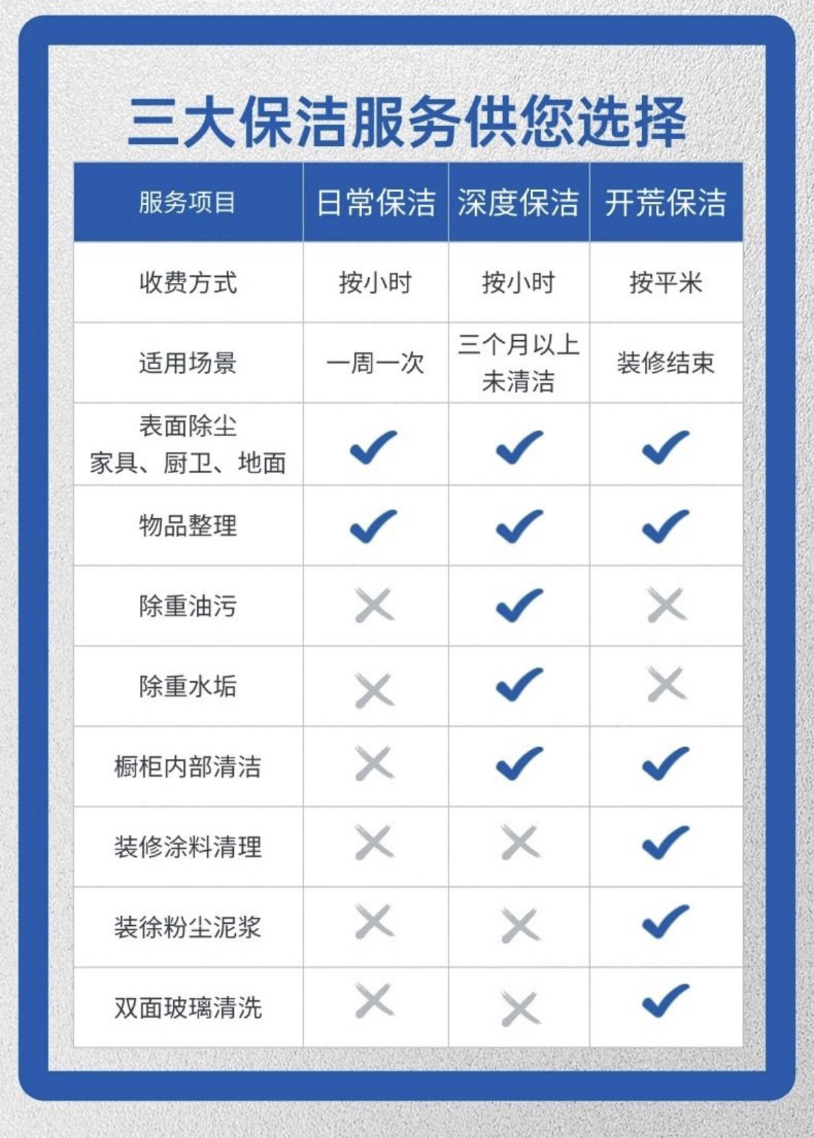 该项目:含房间内,表面除尘除灰,含柜子里面清洁,适用于新租 退租,空置,厨房卫生间重点打扫