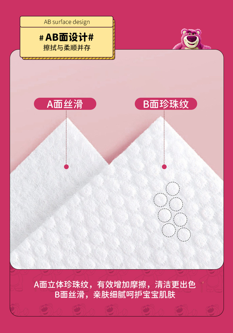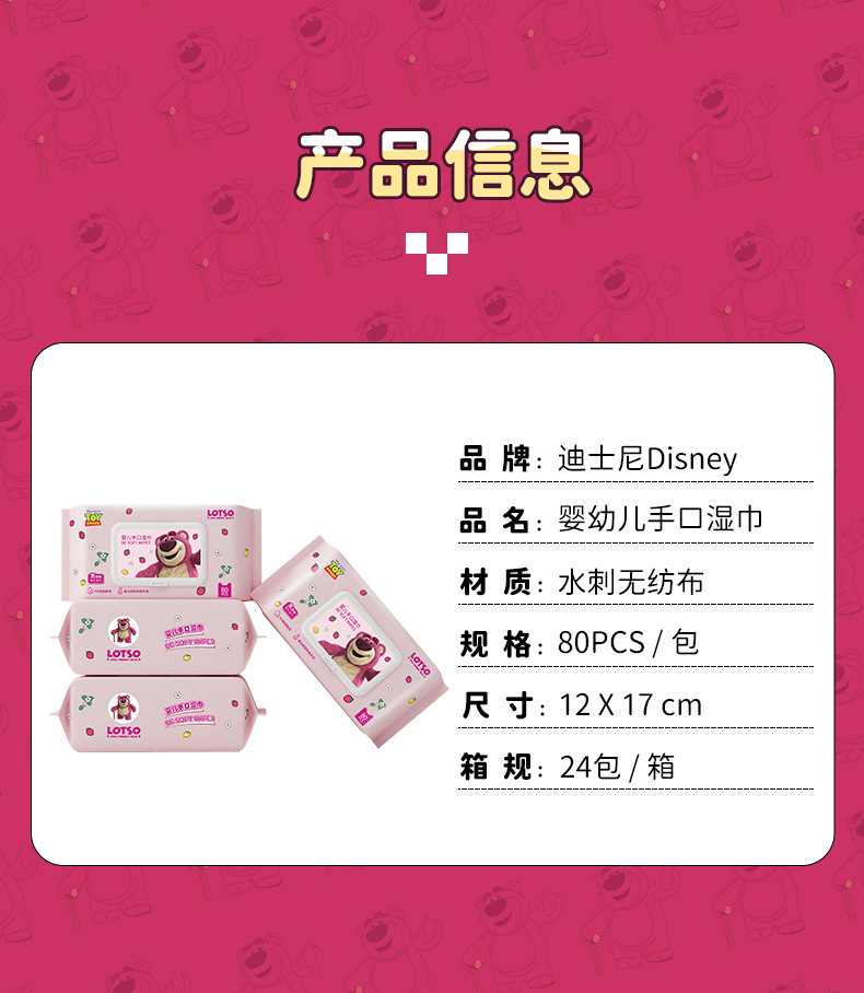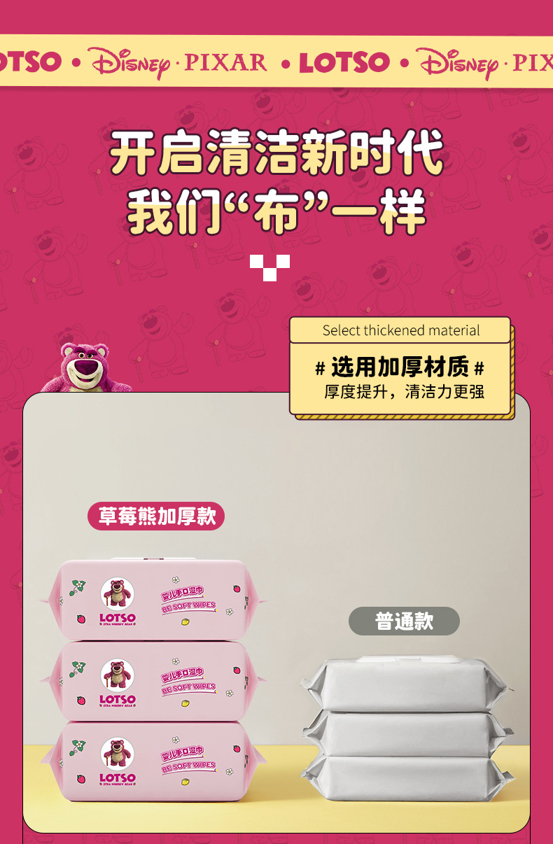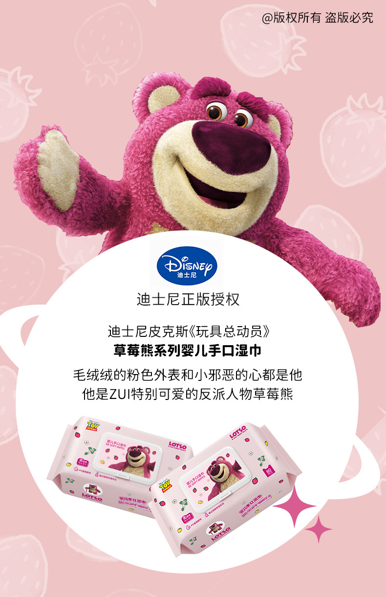 【草莓熊包装!让你一眼爱上】迪士尼一次性婴儿手口湿巾80抽大包加大加厚纯水湿纸巾,外盖+内层贴纸包装,持久锁水保湿 每一抽都是“新拆包”。ry