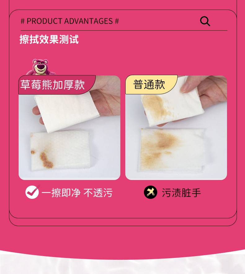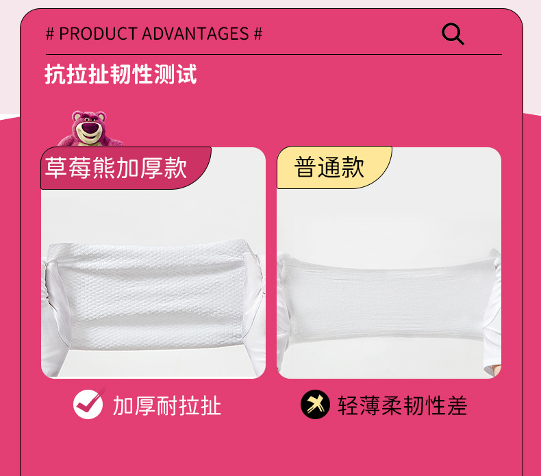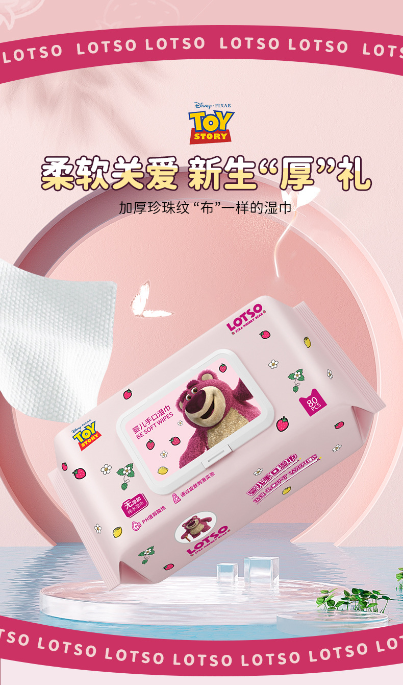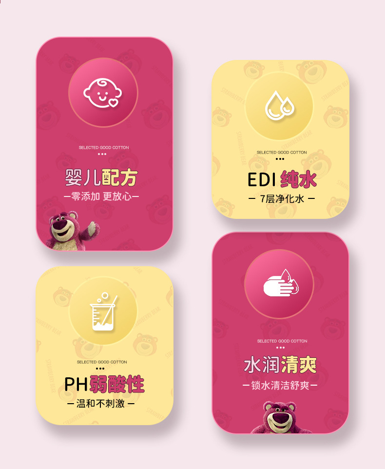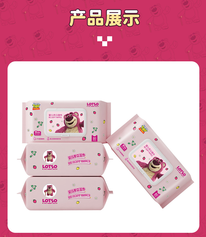 【草莓熊包装!让你一眼爱上】迪士尼一次性婴儿手口湿巾80抽大包加大加厚纯水湿纸巾,外盖+内层贴纸包装,持久锁水保湿 每一抽都是“新拆包”。ry
