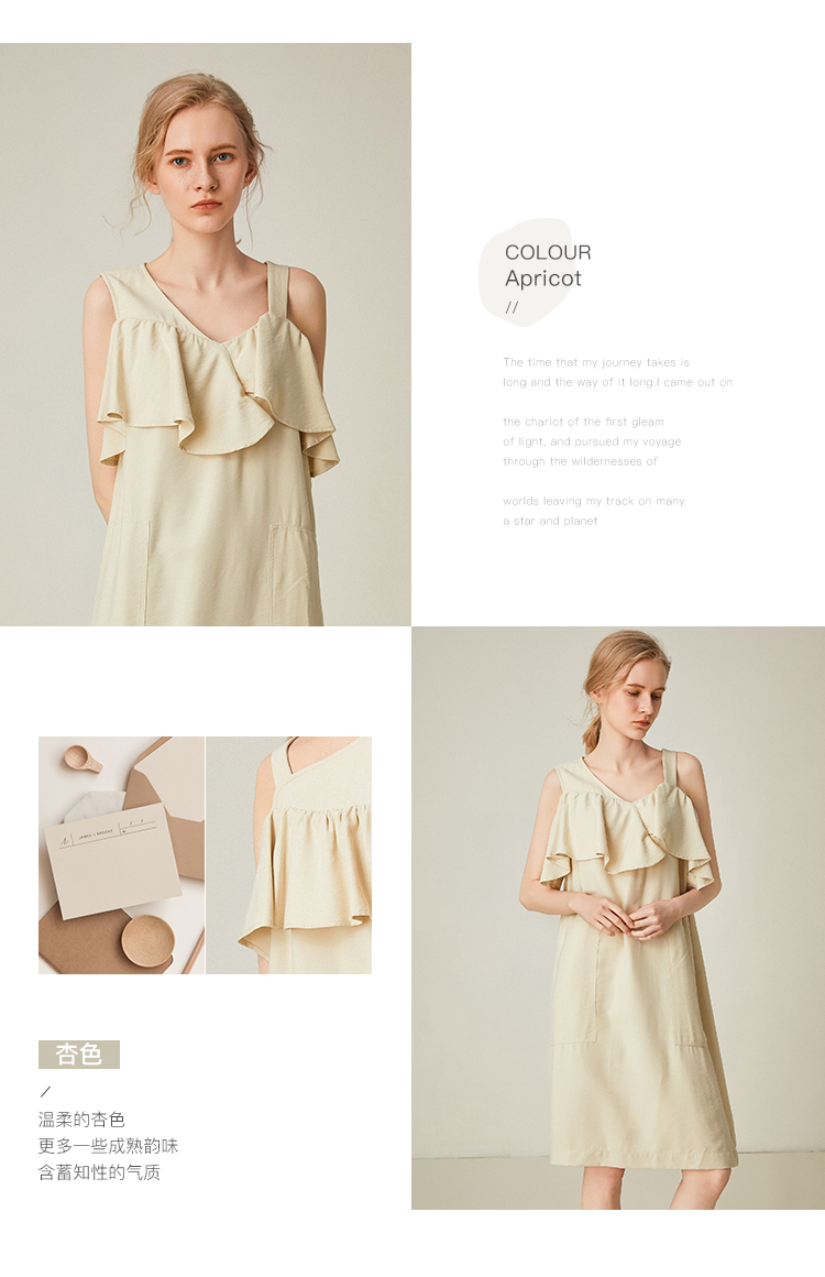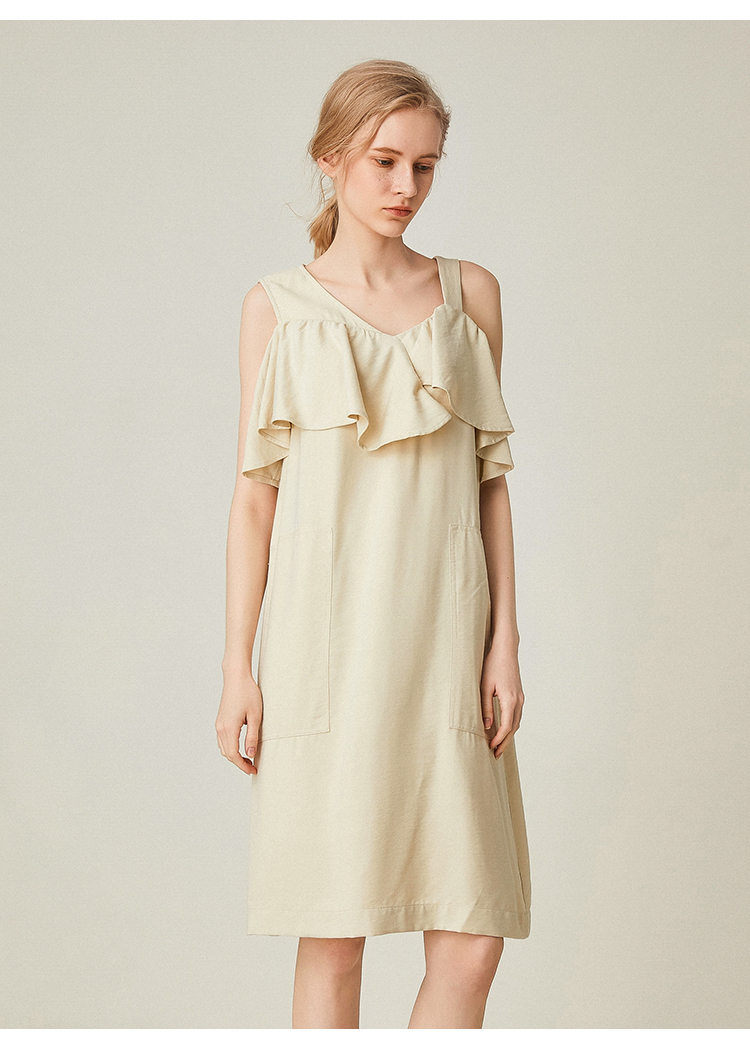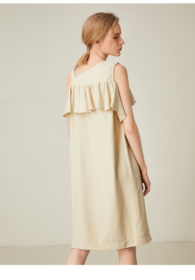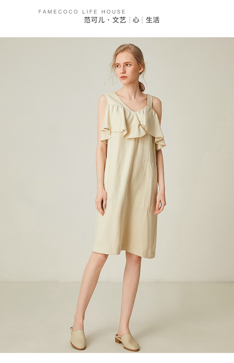 famecoco范可儿无袖连衣裙女夏显瘦荷叶边气质中长裙F193FA007