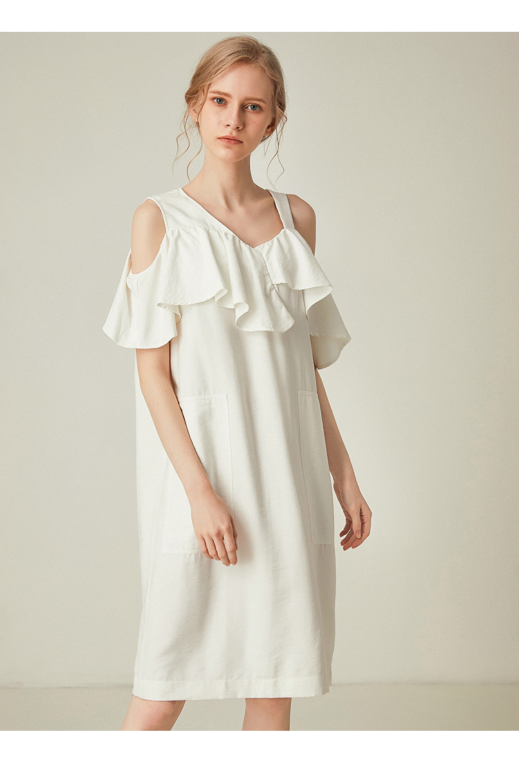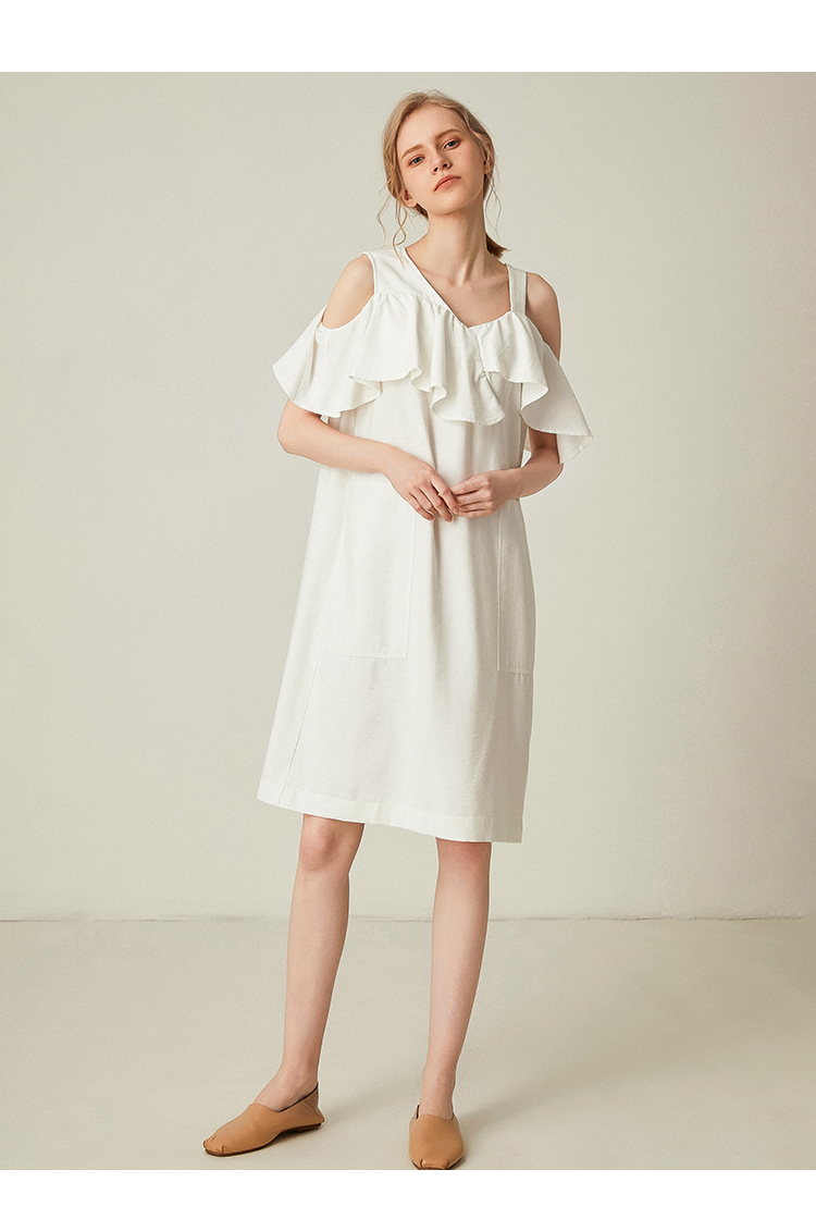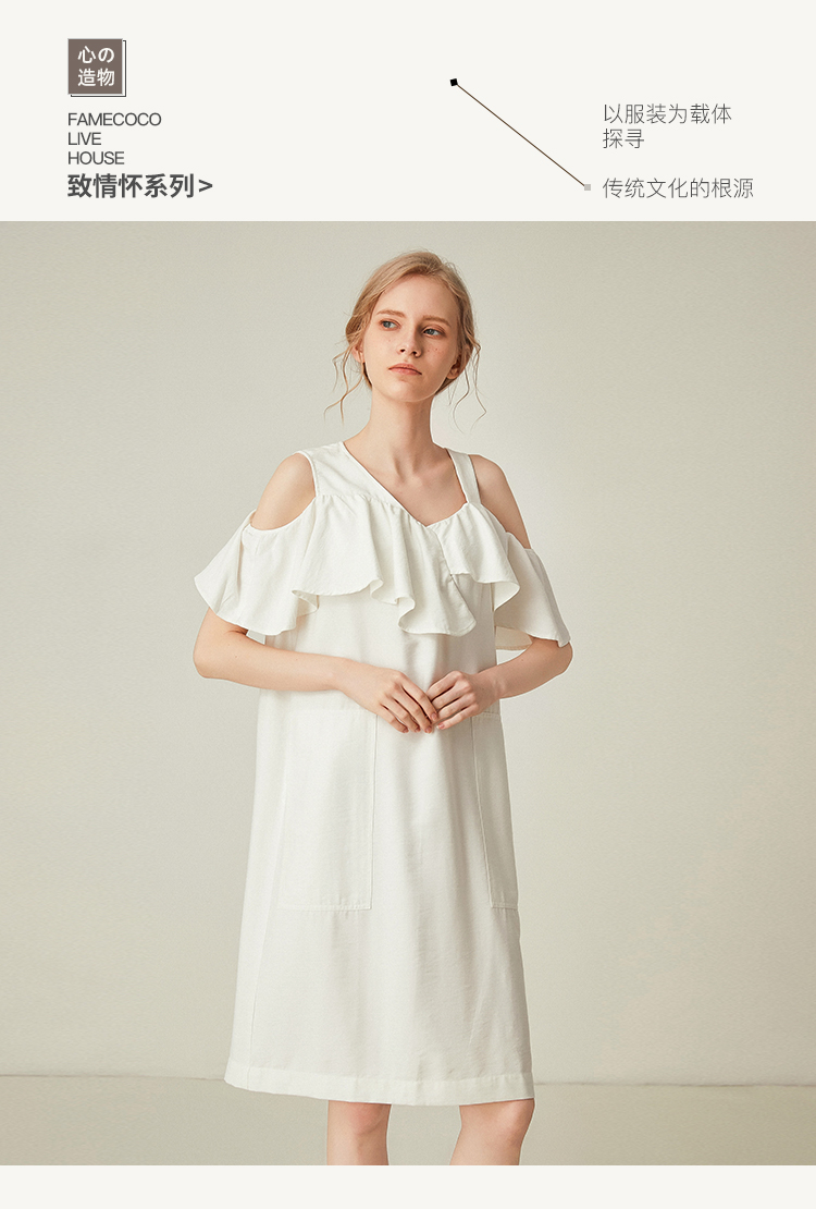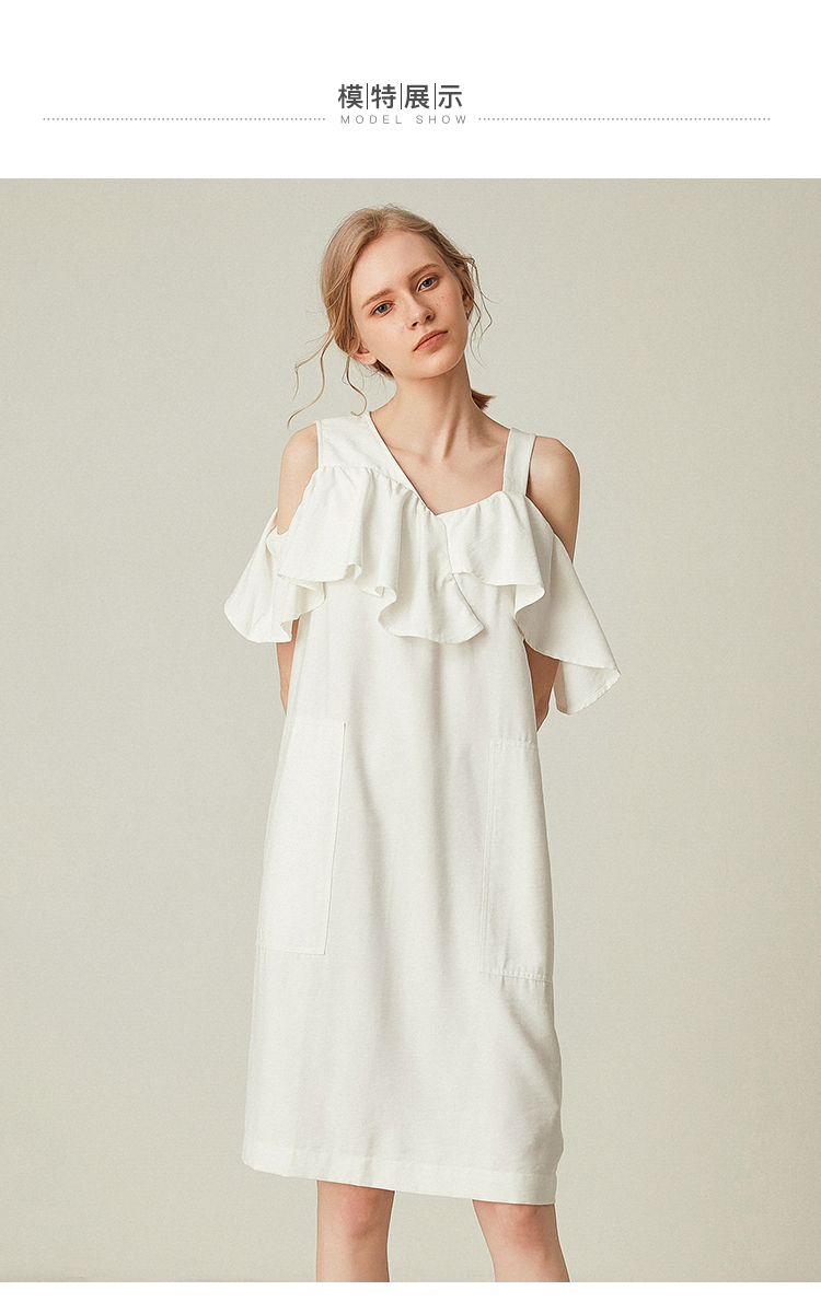 famecoco范可儿无袖连衣裙女夏显瘦荷叶边气质中长裙F193FA007