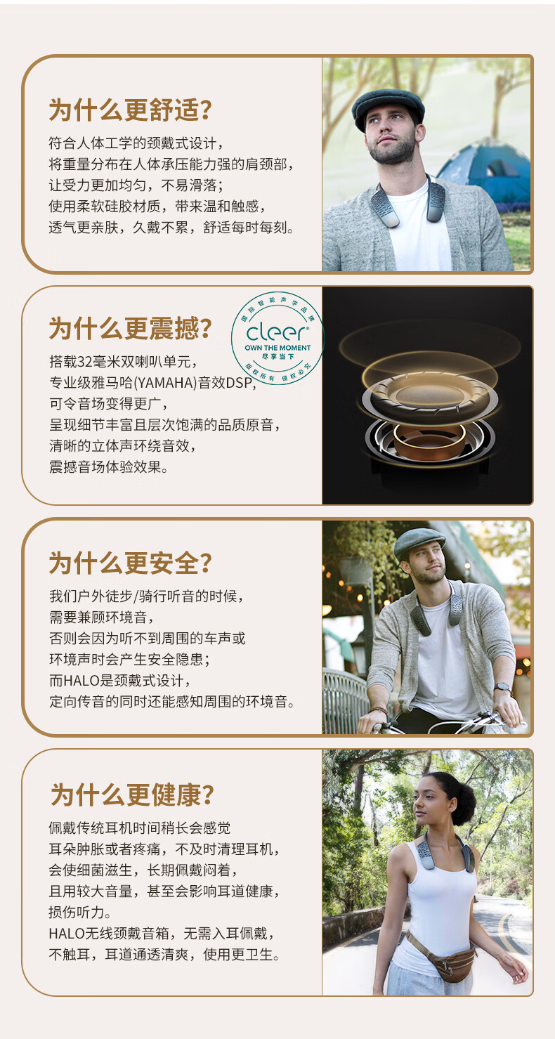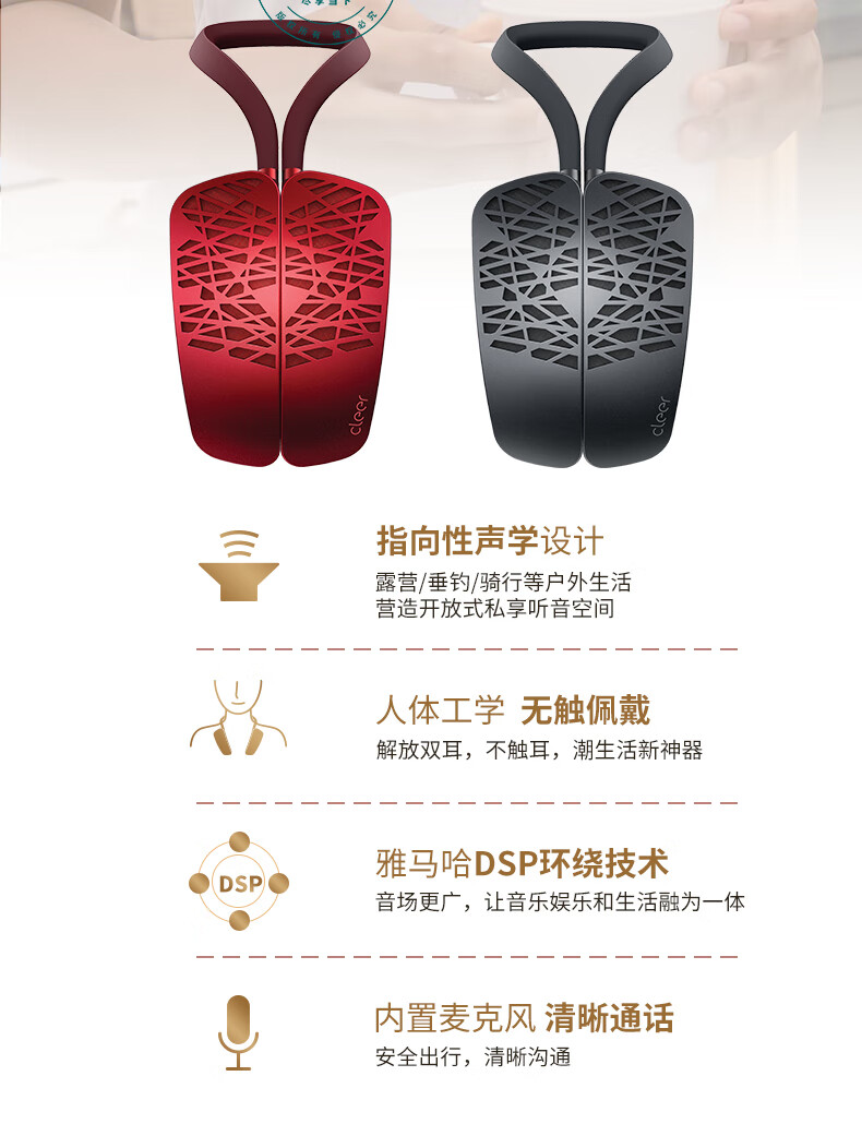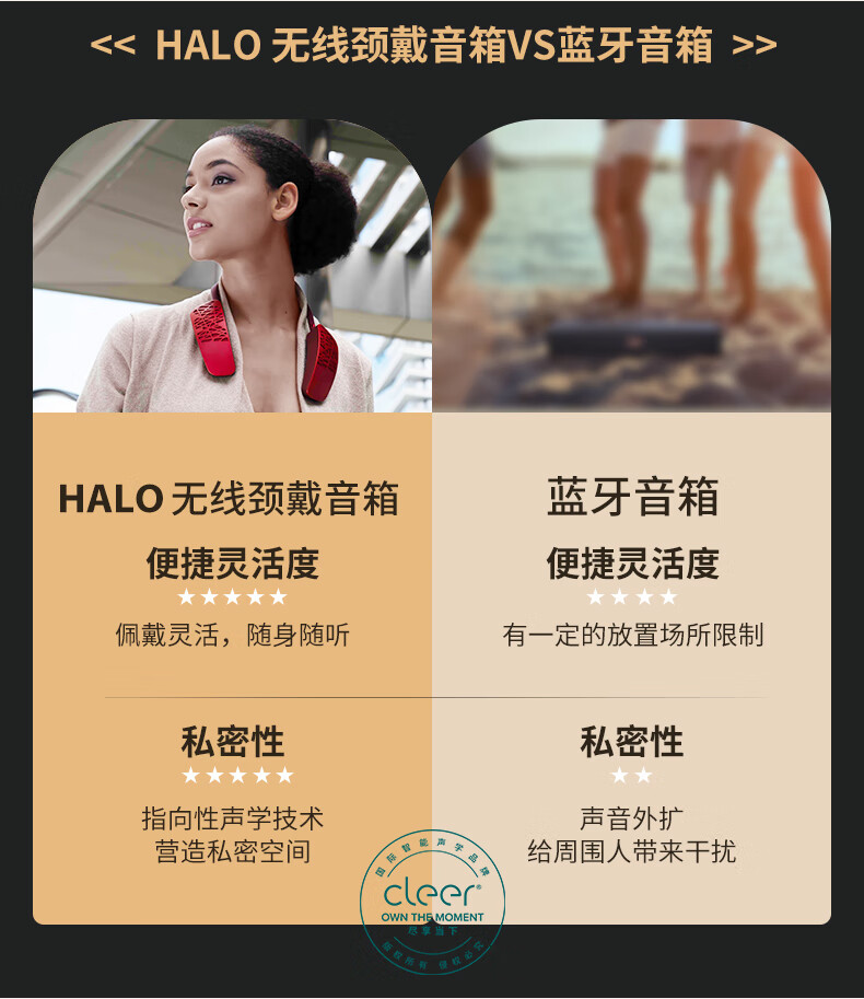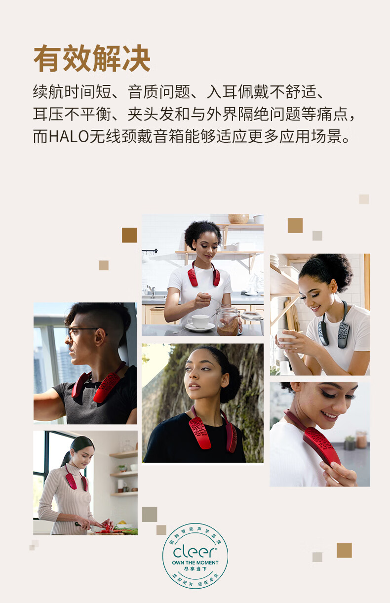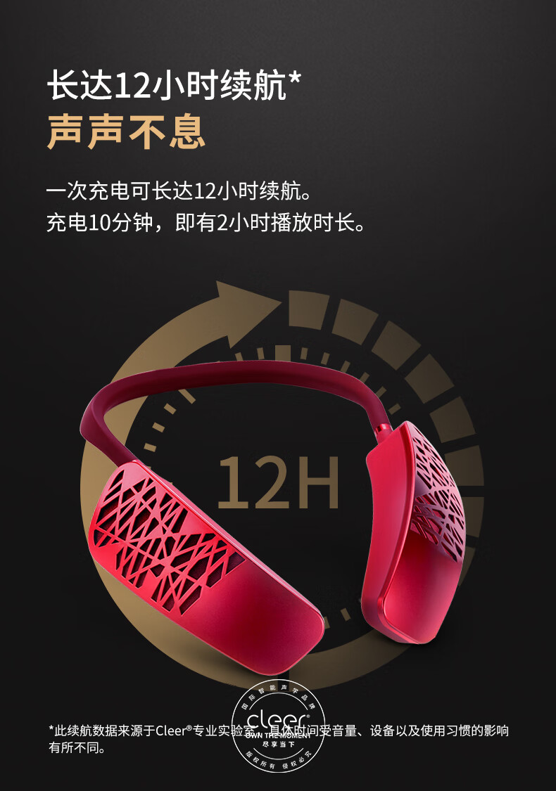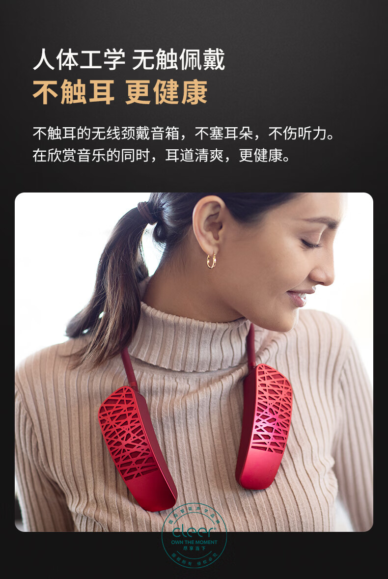 cleer HALO 蓝牙电脑音响颈挂式定向传音户外骑行防水挂脖智能音箱 【12H续航+震撼音效】波尔多红/钛金灰