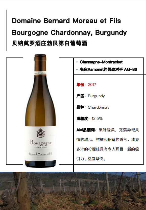 Domaine Bernard Moreau夏山蒙哈榭白葡萄酒2017