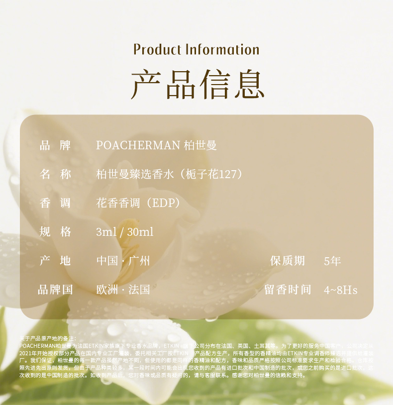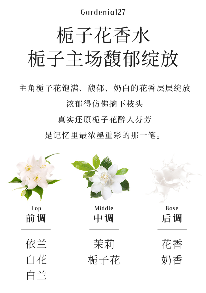 柏世曼127栀子花香水 白花香温润奶感持久留香女士小众EDP淡香氛