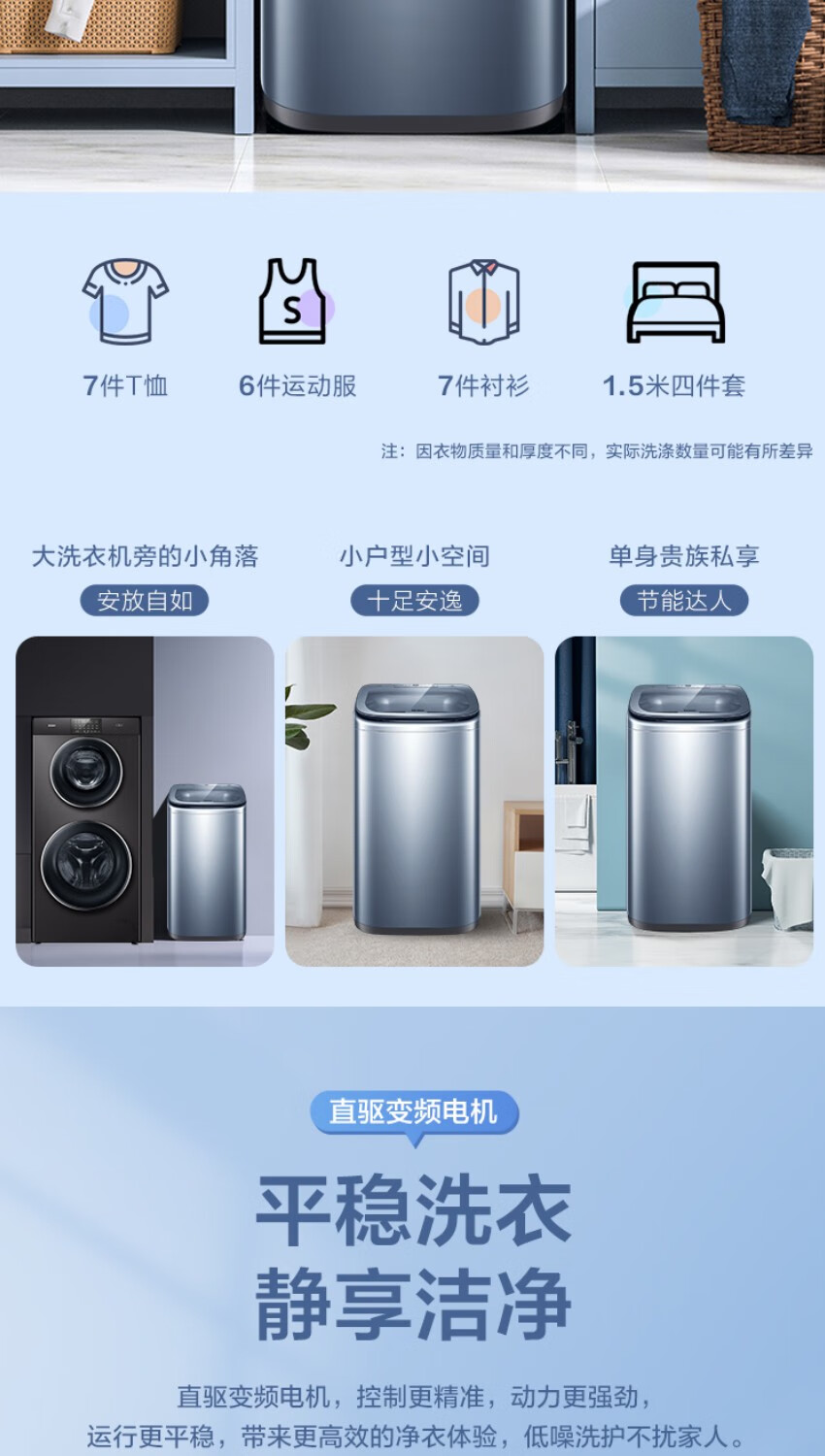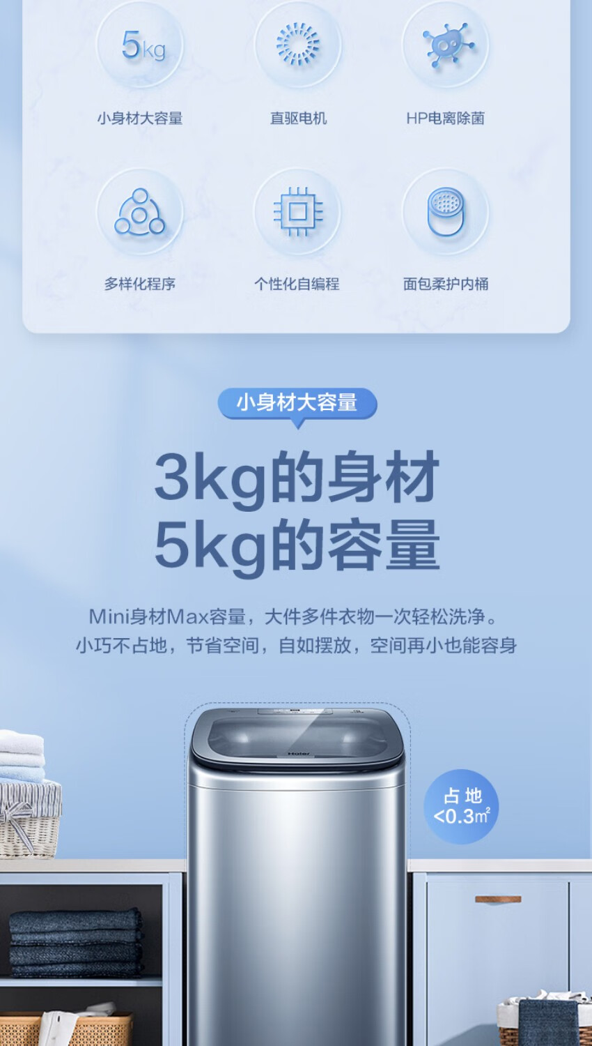 海尔(Haier)5公斤5kg迷你波轮洗衣机一级直驱变频HP电离除菌自编程小户型宝宝童锁 直驱+除菌+mini