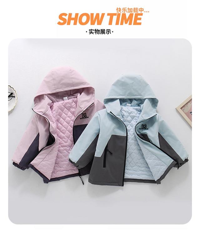 女童外套春秋款洋气儿童冲锋衣新款帅气宝宝秋冬连帽加绒加厚夹克