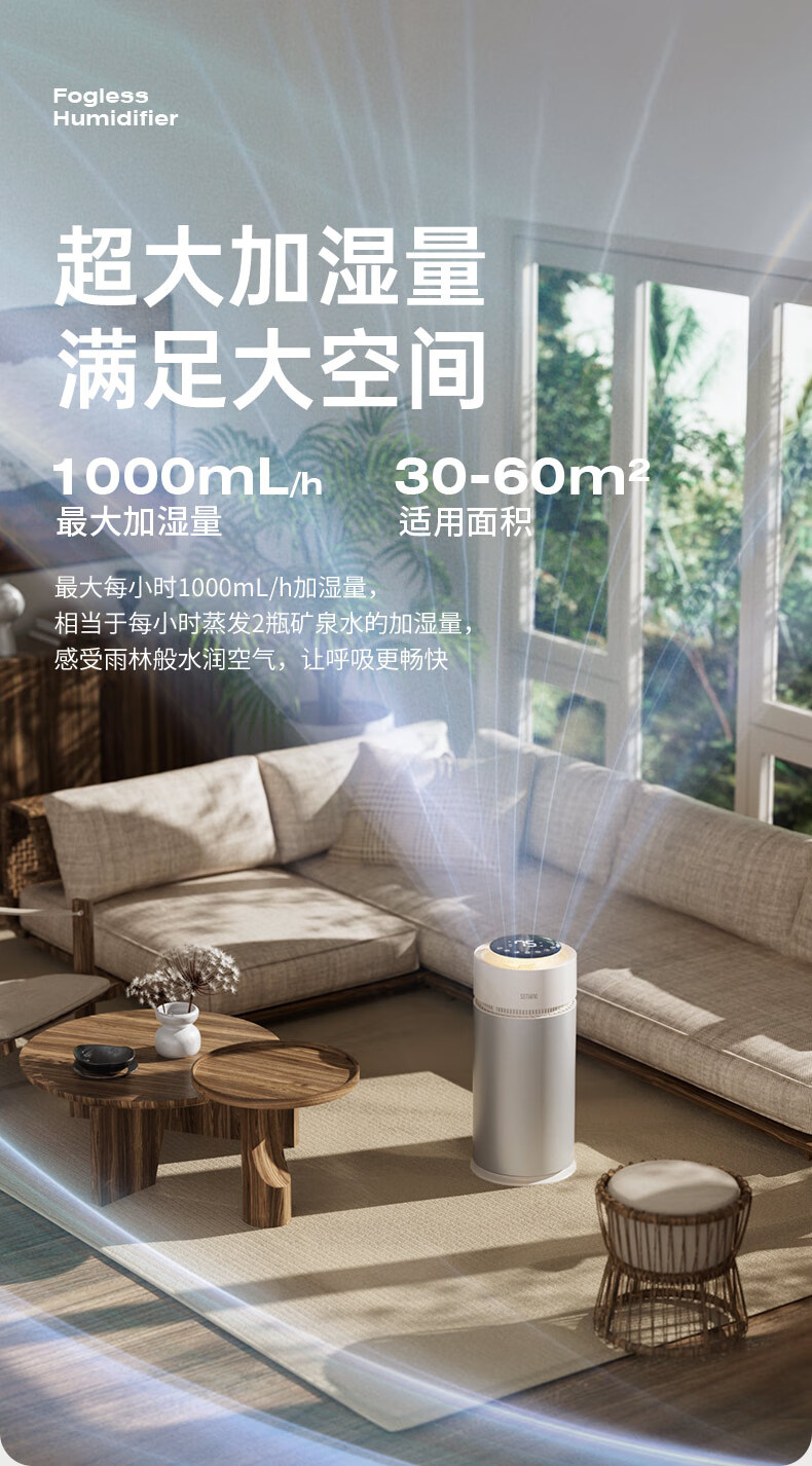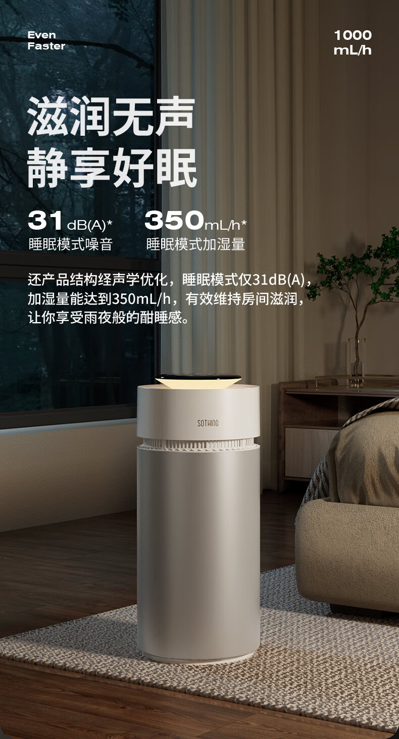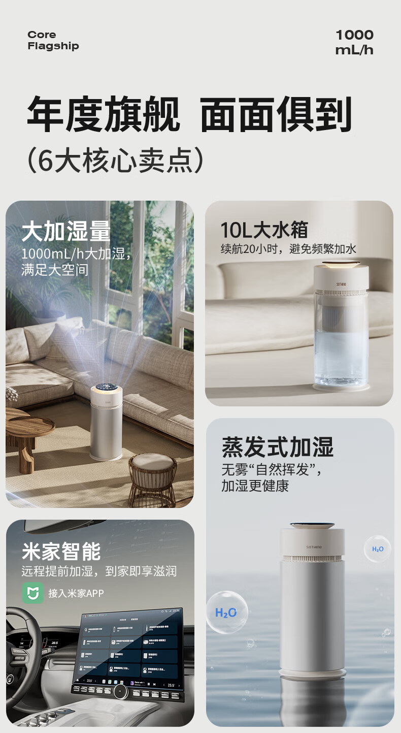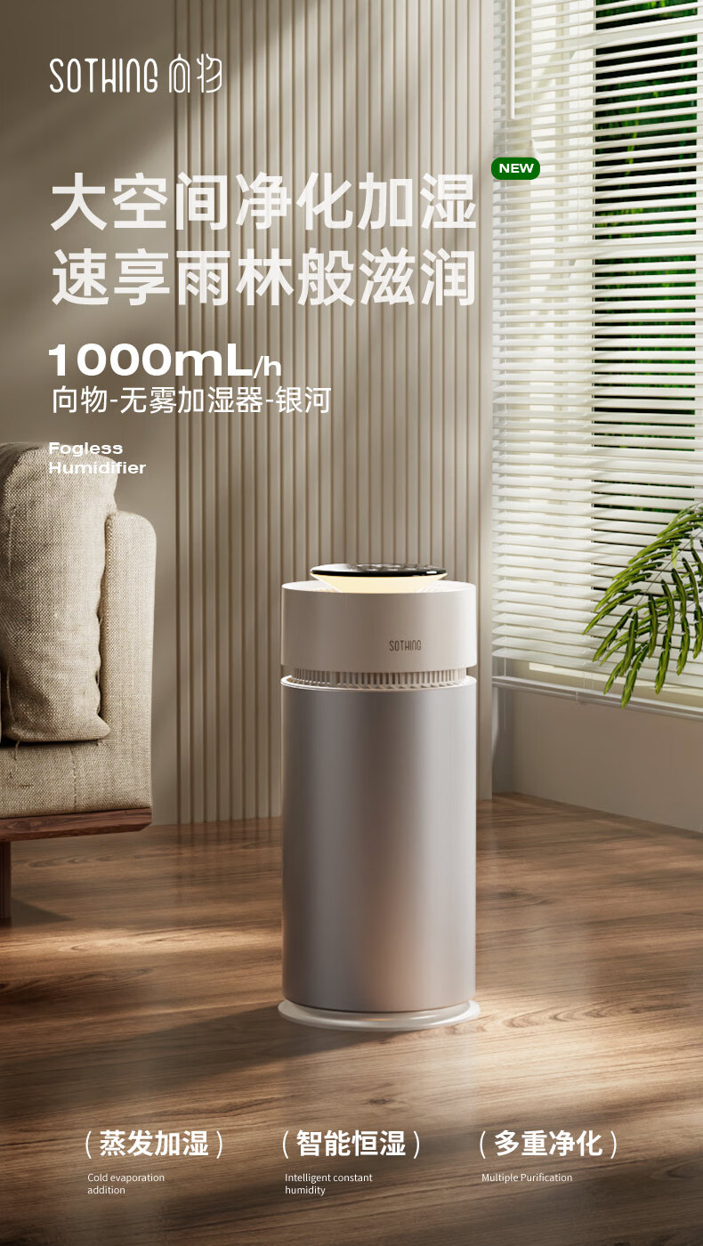 向物(SOTHING)无雾加湿器卧室静音 空气净化加湿一体机 婴儿孕妇蒸发式10L大容量客厅大面积落地式家用空气加湿 【米家版】1000mL大加湿 / 净化加湿一体机