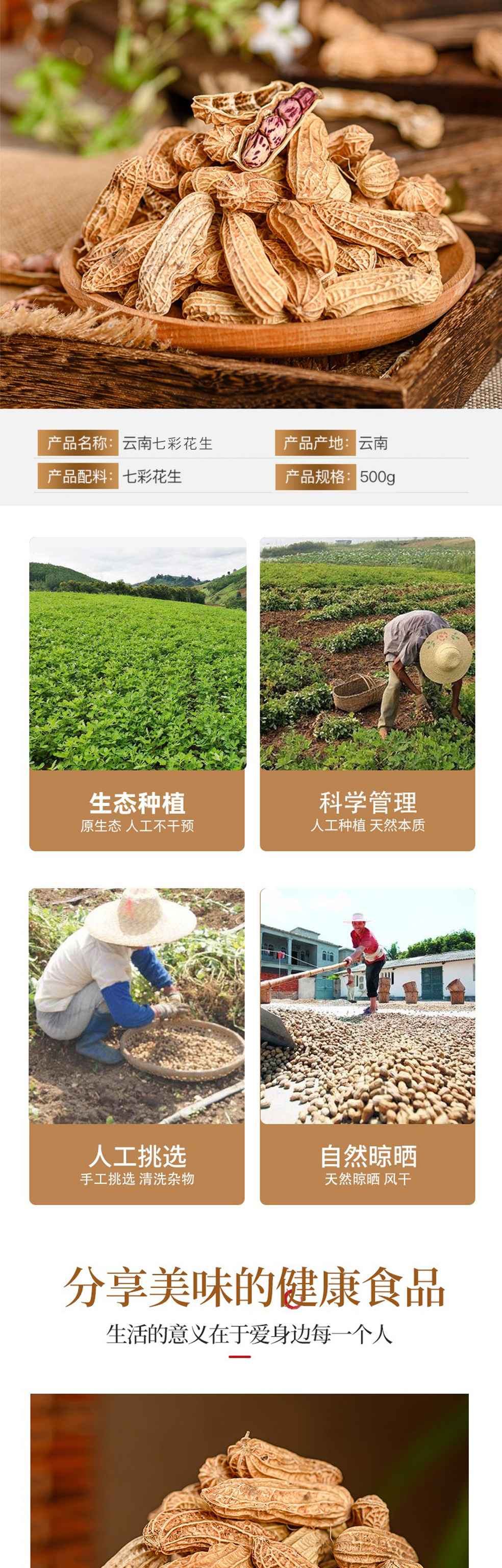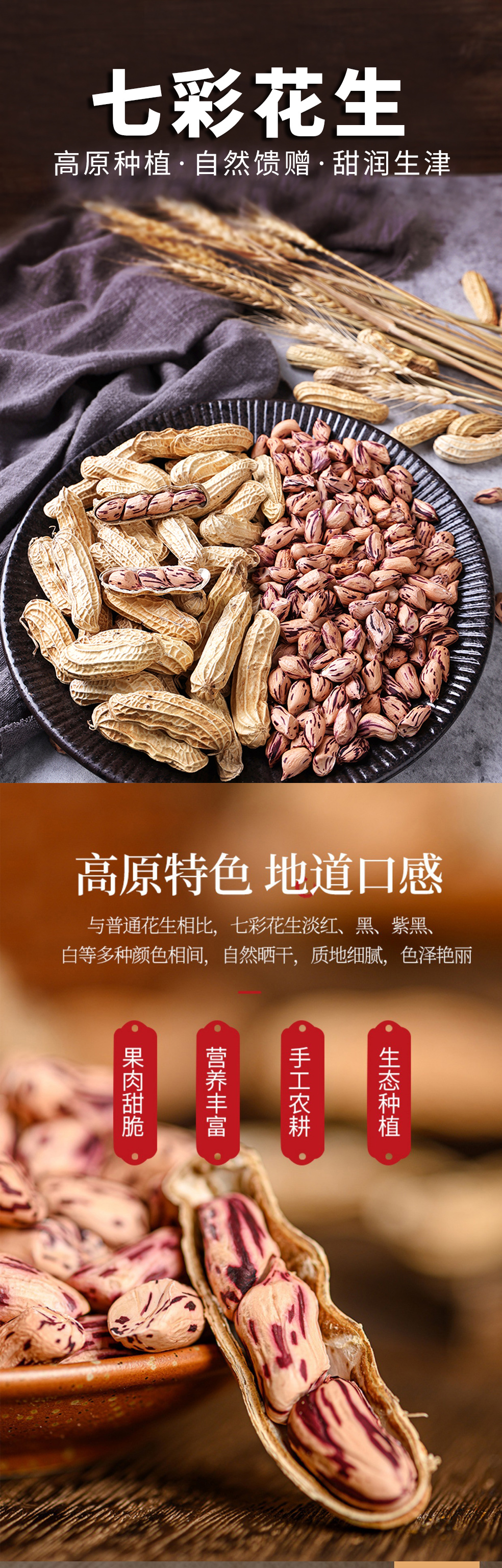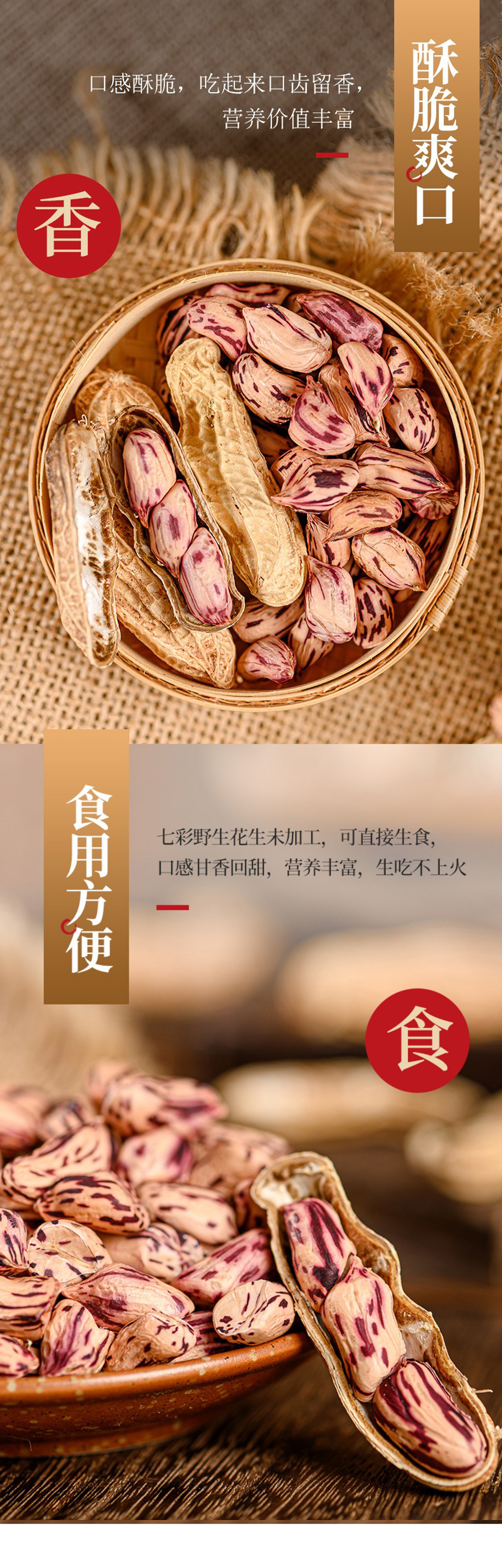 云南野地七彩花生 果肉脆而不硬 果形细长 甘香回甜 花生籽粒白底带紫色 色彩鲜明 包邮发出