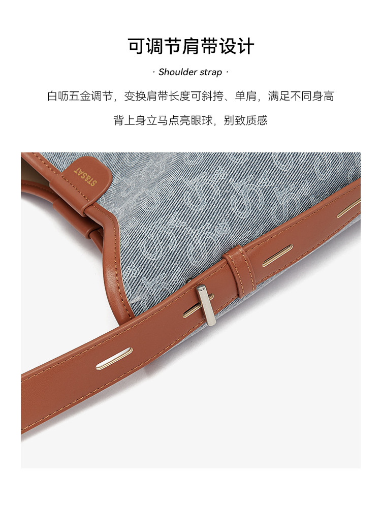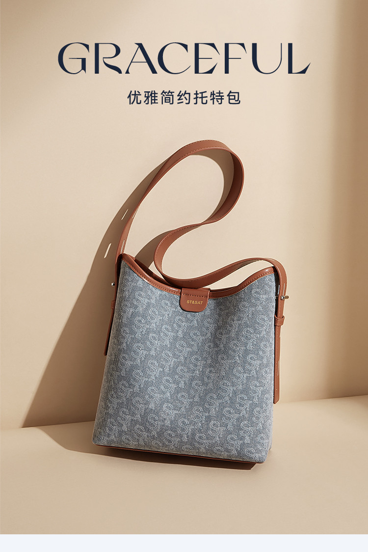星期六丹宁老花时髦大容量通勤托特包SSD521A0BH