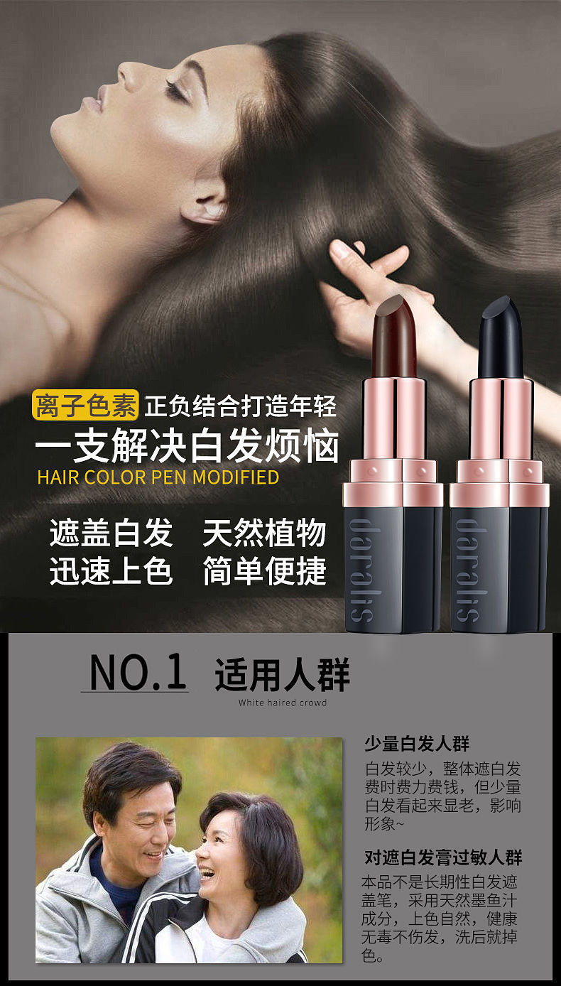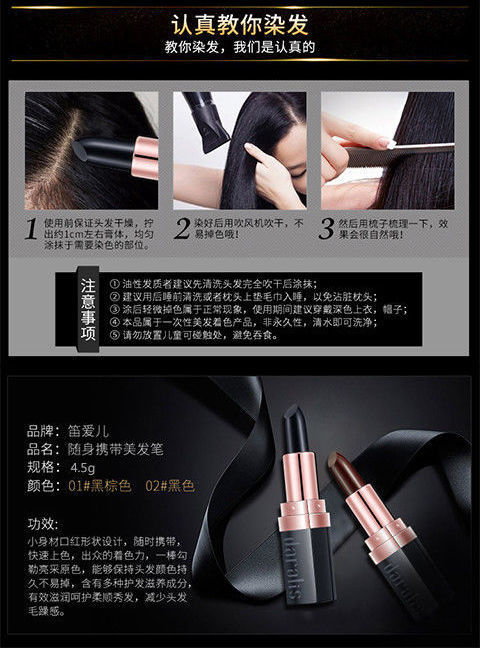 【3秒上色】植物染发膏男女一次性染发遮盖鬓角发根染发补色蜡笔