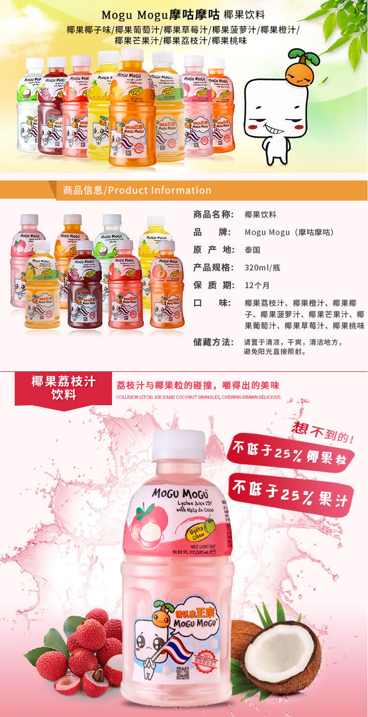 磨谷椰肉桃味饮料 瓶装进口休闲饮料品