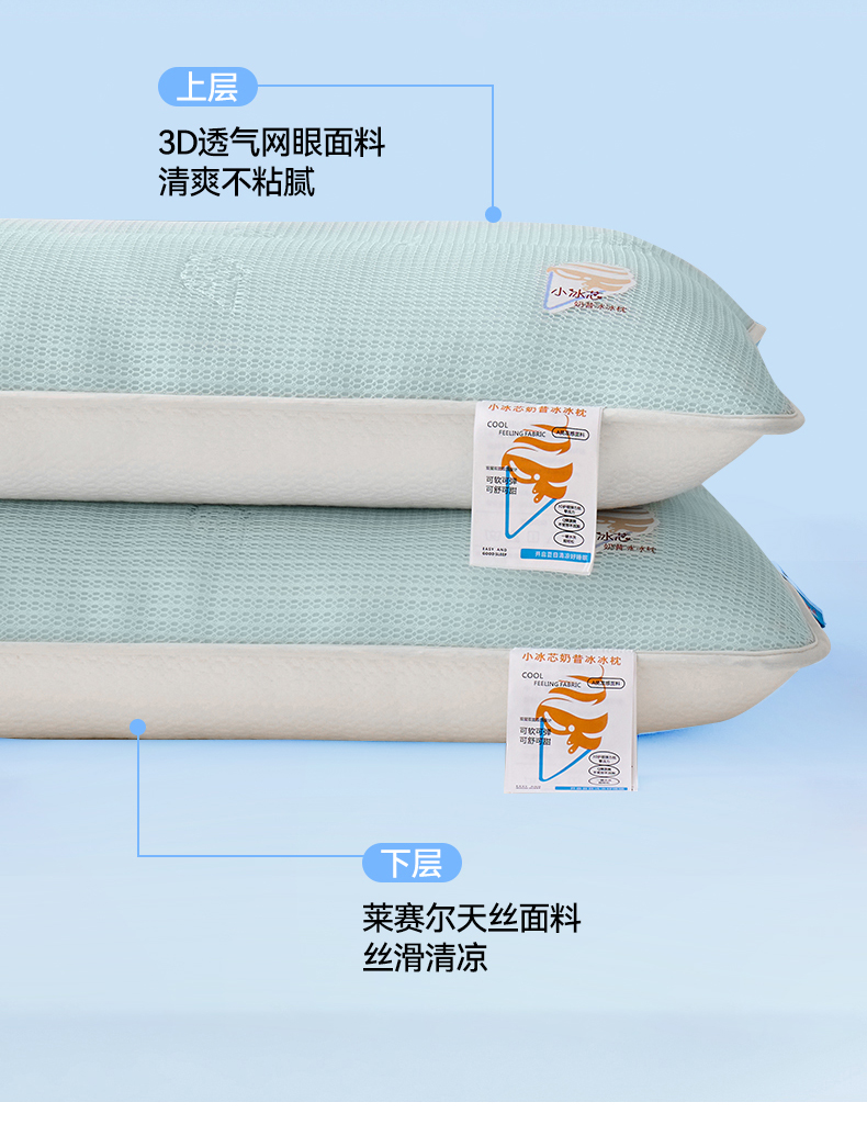 【品牌直发】加倍生活 小冰芯奶昔冰冰枕 儿童枕头 学生枕芯 成人款 可水洗