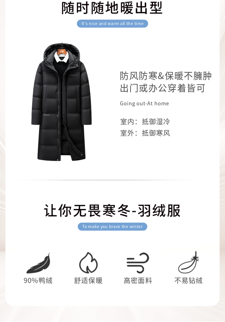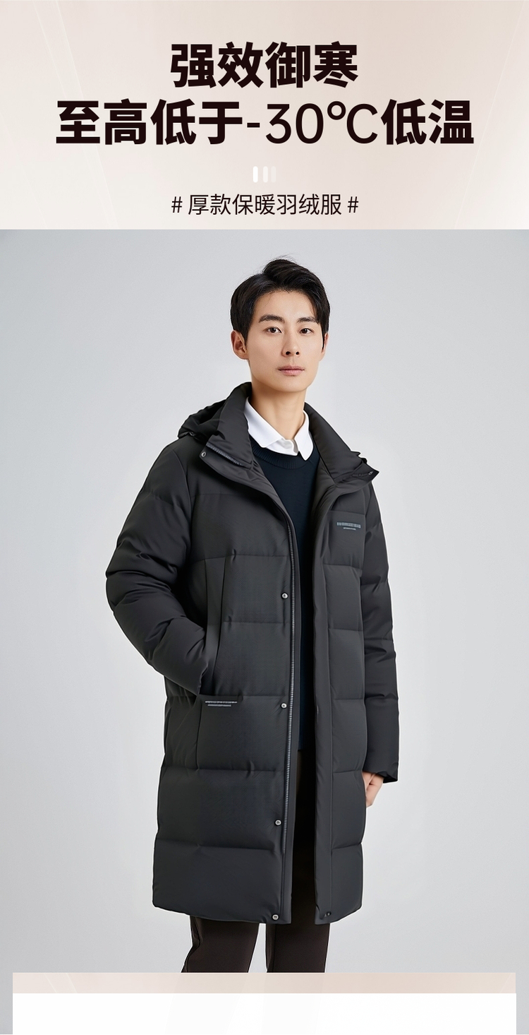 【90%鸭绒】圣得西冬季羽绒服男中长款加厚防寒保暖连帽外套2462942185