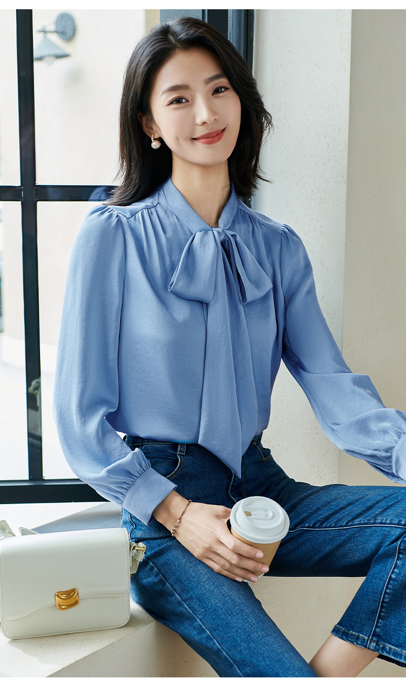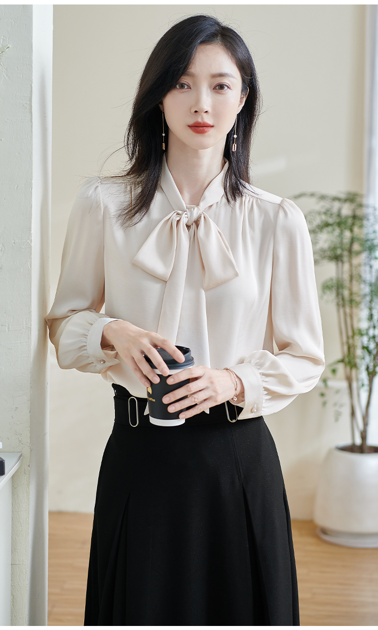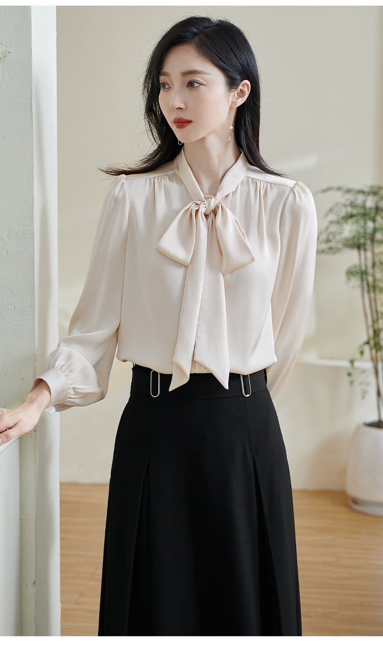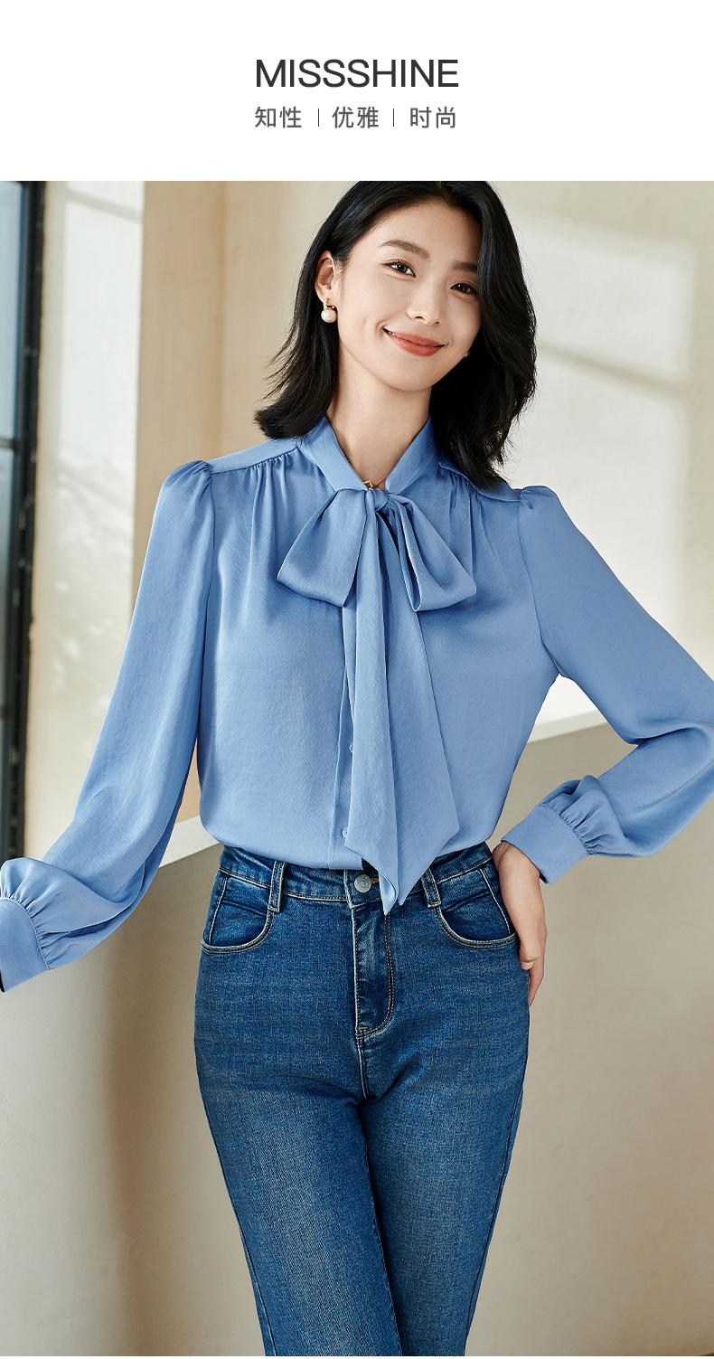 「通勤温柔感天花板」柔光缎面自带高级哑光感 藏肉显瘦不挑身形 米思阳2026春季新款法式气质蝴蝶结衬衫通勤飘带搭配宽松上衣0017