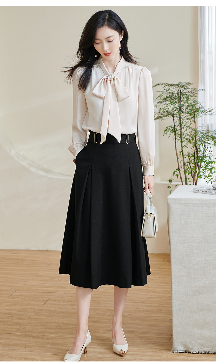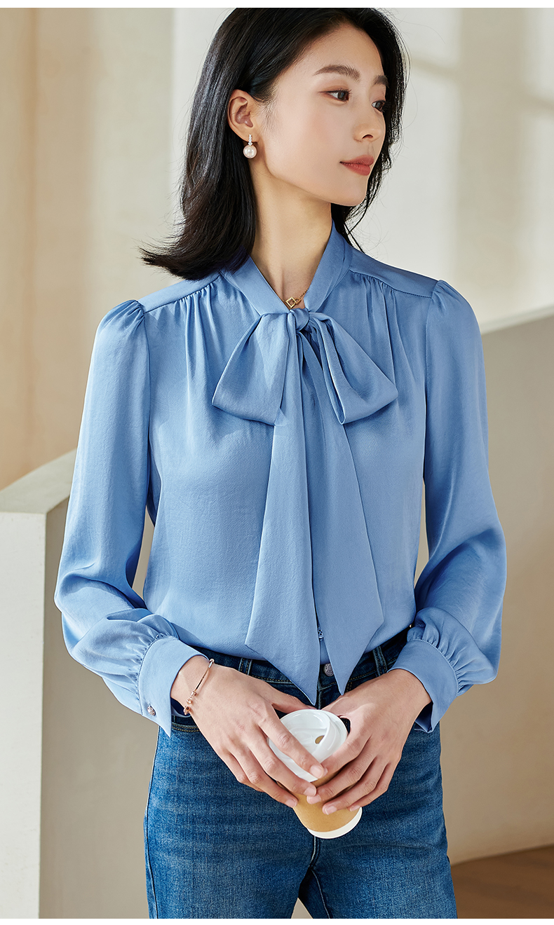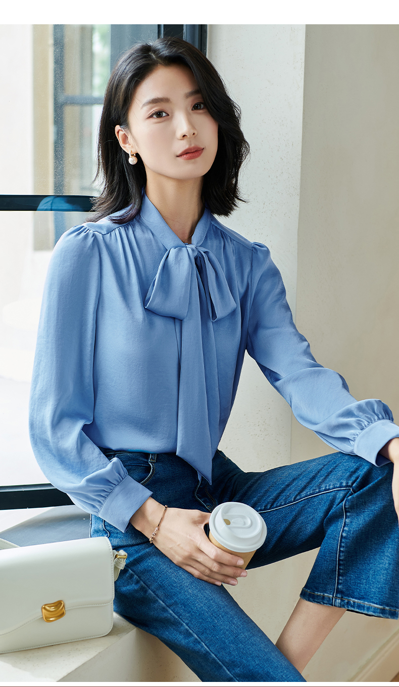 「通勤温柔感天花板」柔光缎面自带高级哑光感 藏肉显瘦不挑身形 米思阳2026春季新款法式气质蝴蝶结衬衫通勤飘带搭配宽松上衣0017
