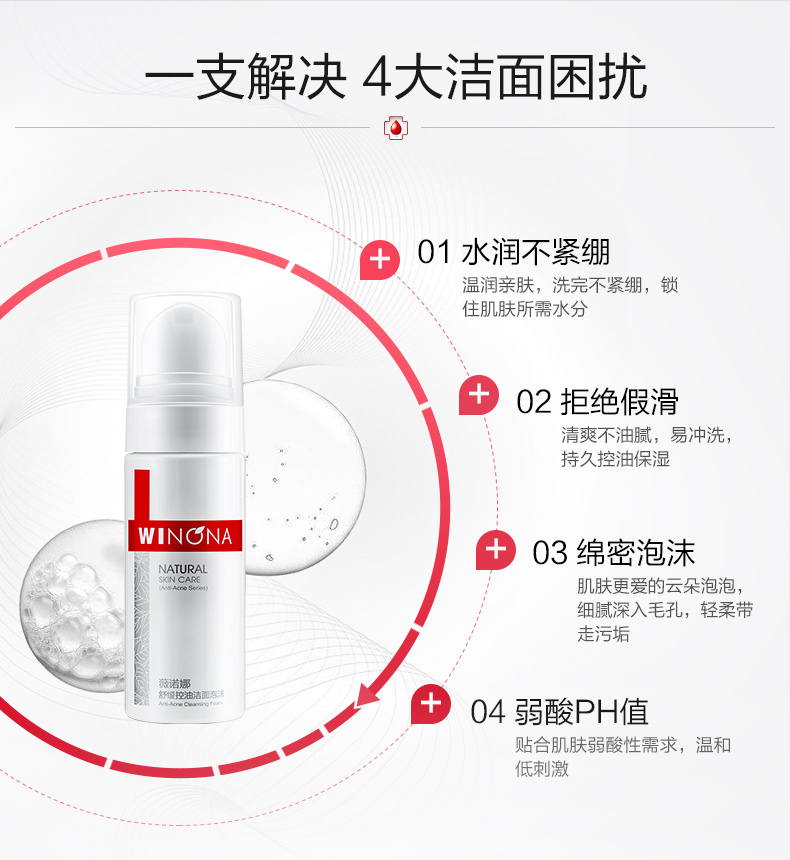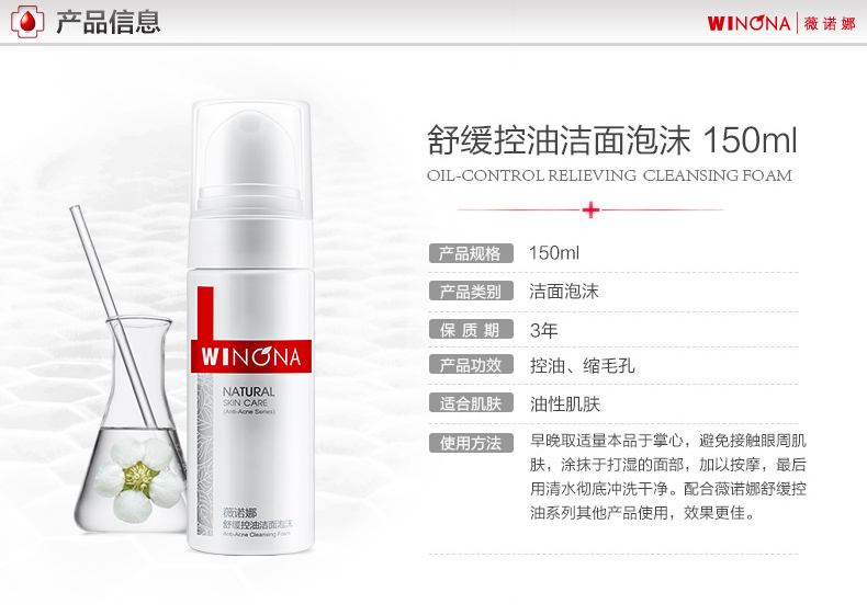 薇诺娜 | 舒缓控油洁面泡沫 150ml | 温和清洁 控油修护 不紧绷 敏感肌油痘肌专用