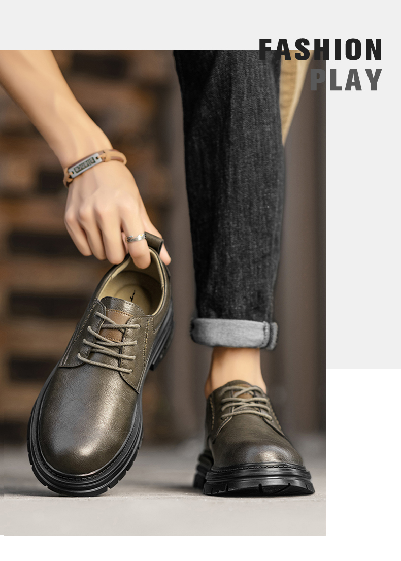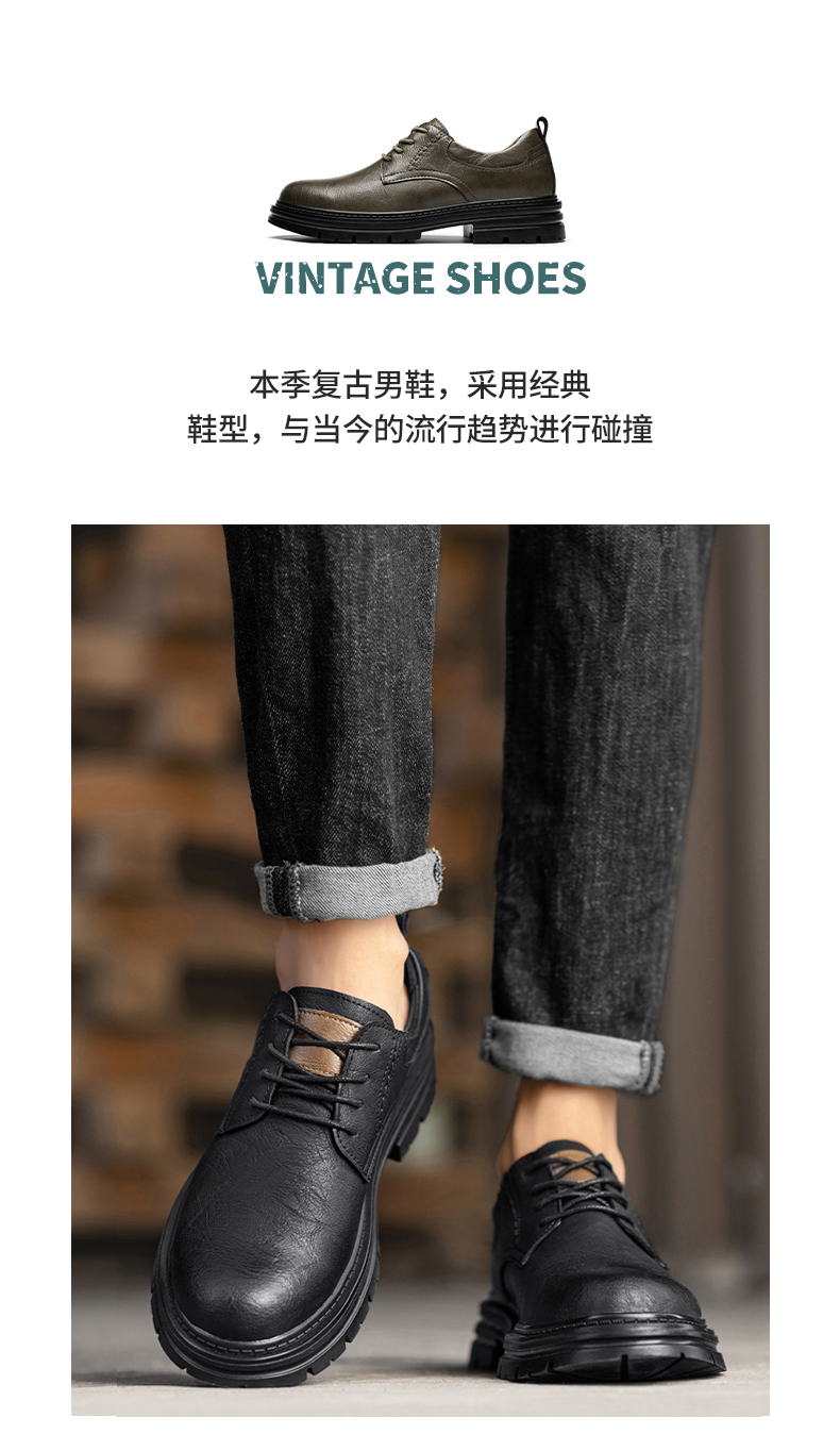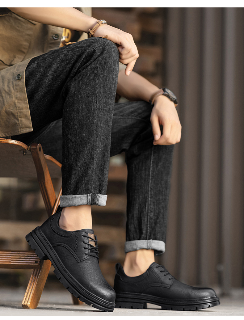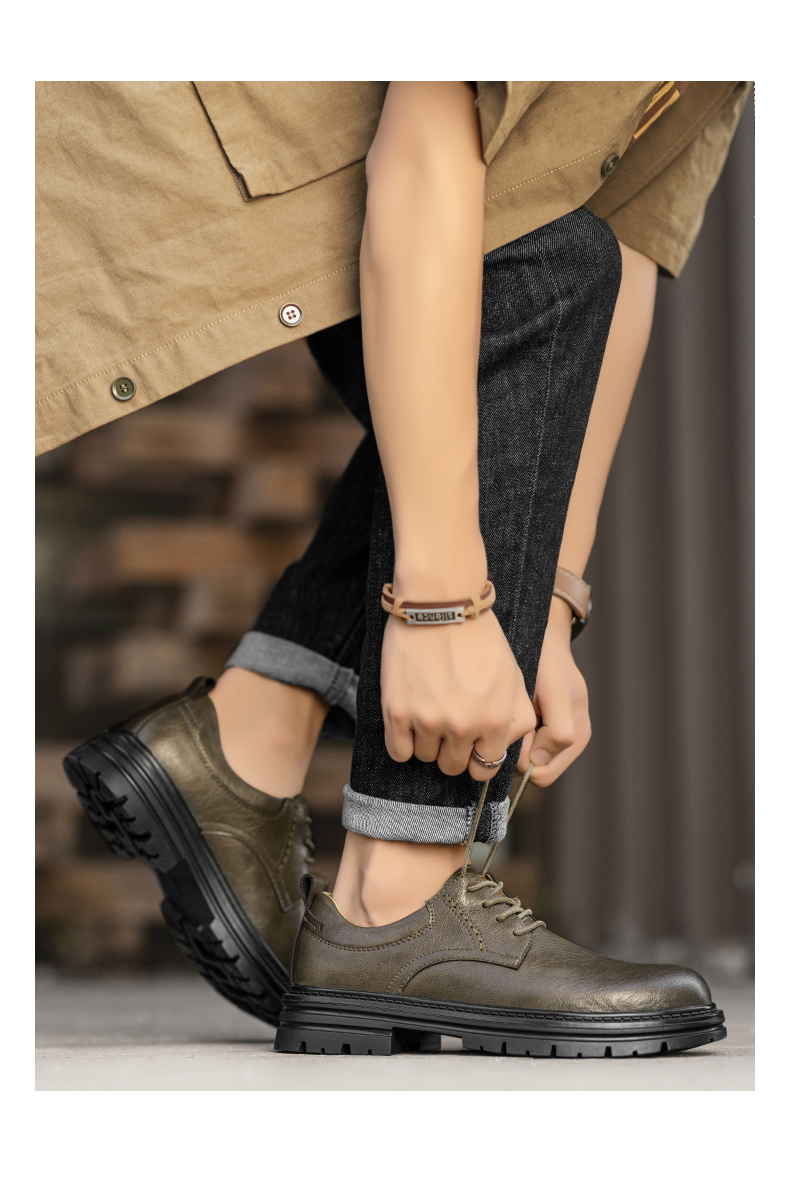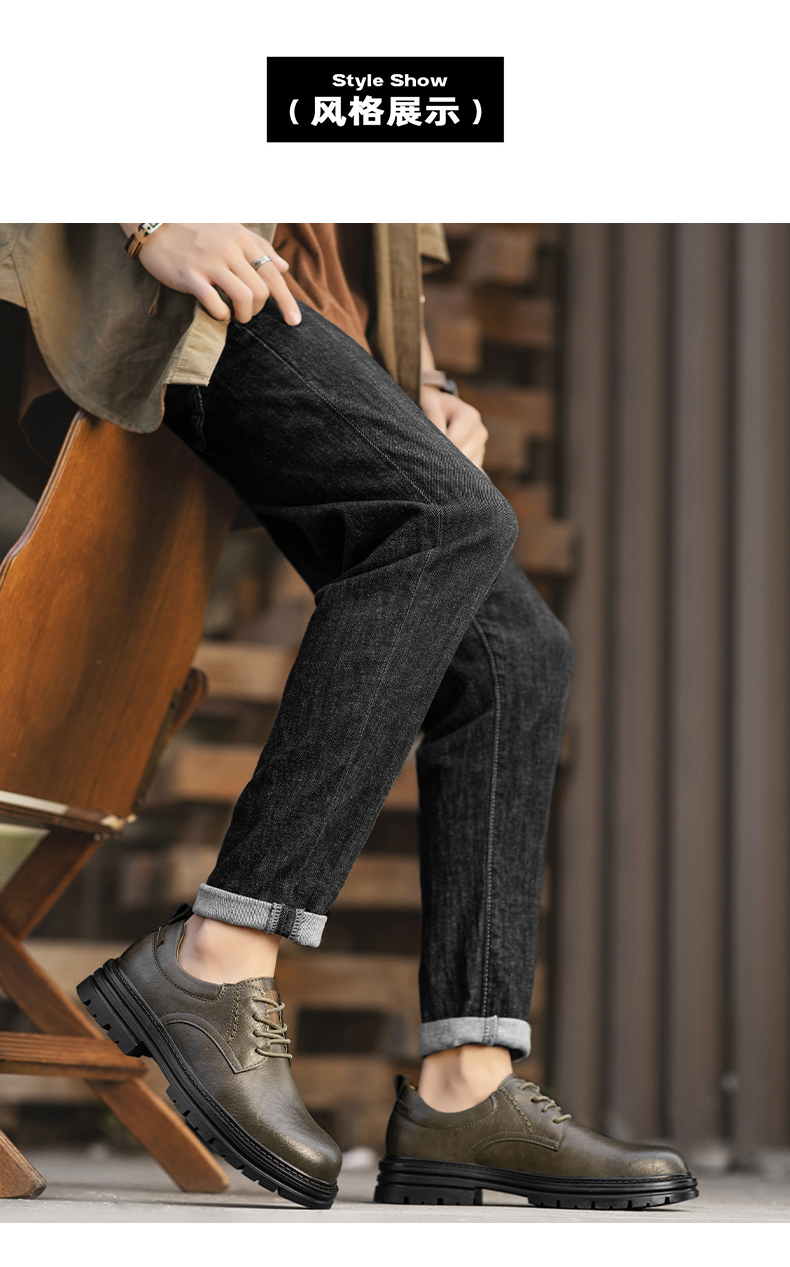 圣得西圆头系带防滑耐穿复古商务质感休闲皮鞋男2452963059